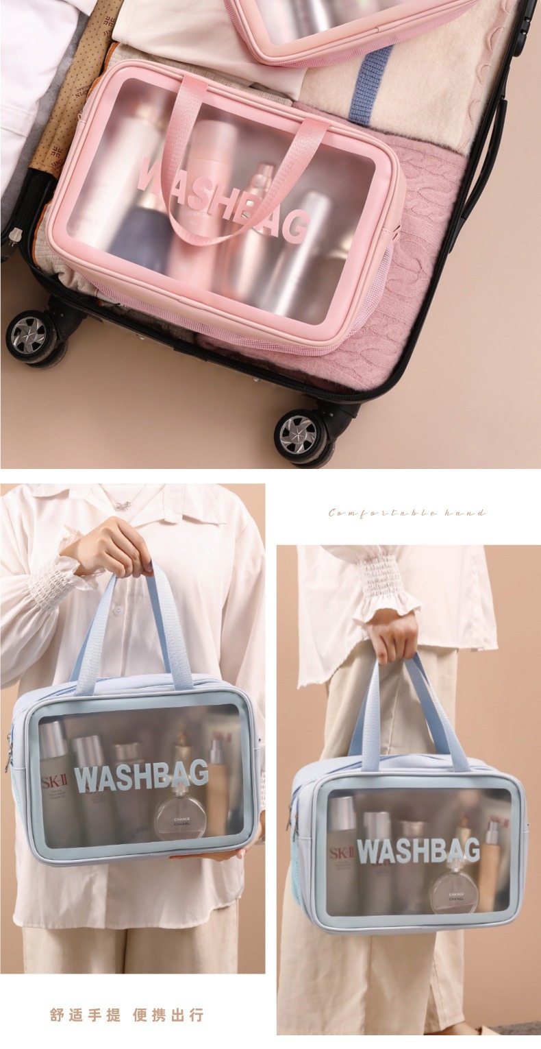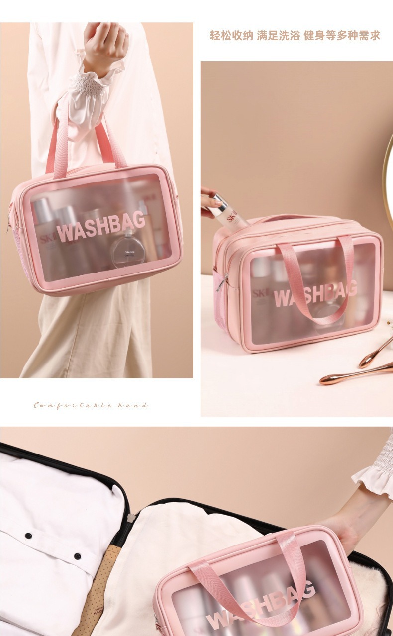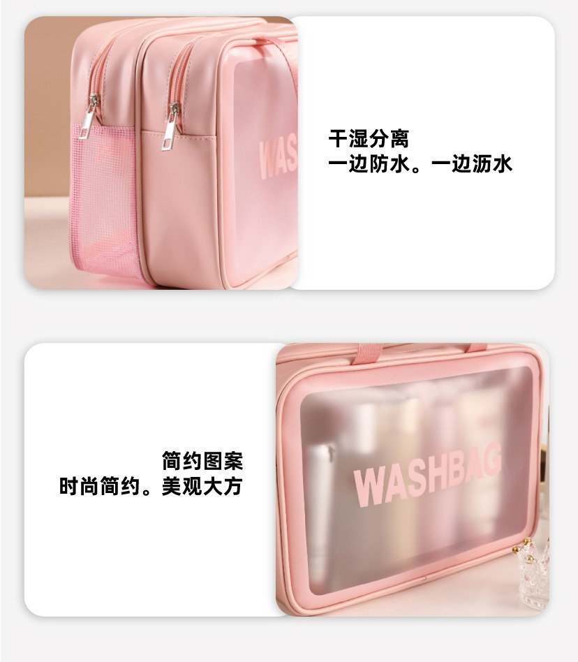 2024 bolsa de almacenamiento de gran capacidad bolsa de cosméticos de PVC esmerilado cepillo de maquillaje portátil doble separación seca y húmeda ins lavado