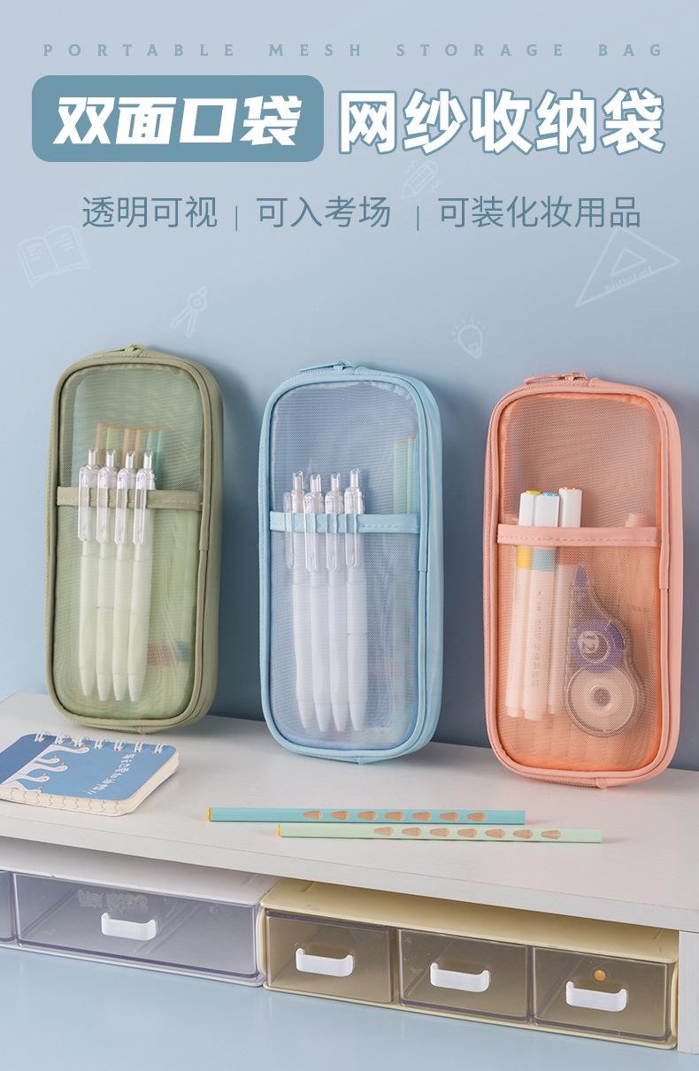 Nueva bolsa de lavado simple y transparente, bolsa de almacenamiento de cosméticos de hilo de red, bolsa de cosméticos de viaje portátil, bolsa de lápices para estudiantes