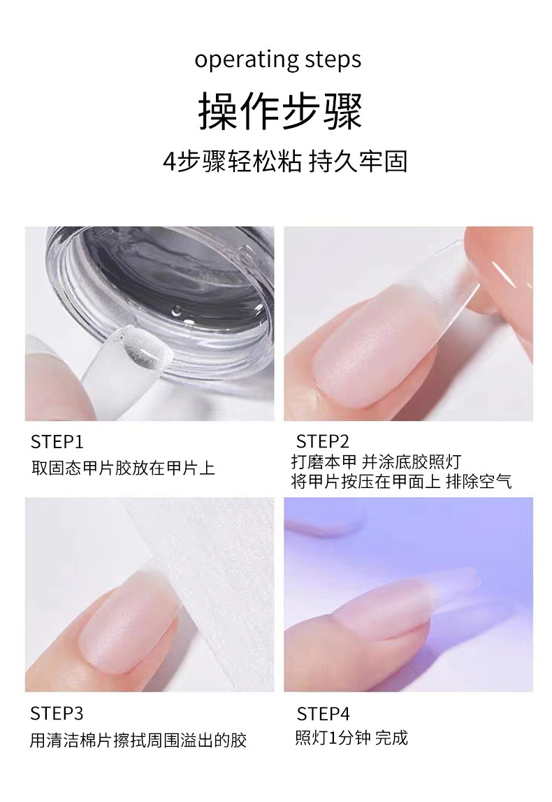 Pegamento de estado sólido para uñas para usar, pegamento para parches de uñas, función de fototerapia, adhesivo de uñas extendidas, taladro firme duradero