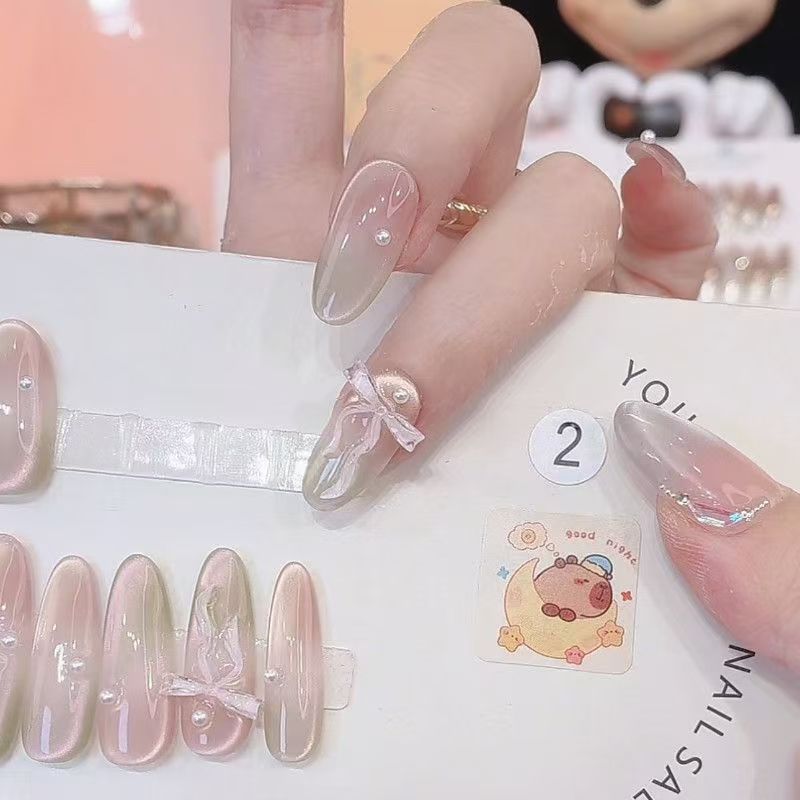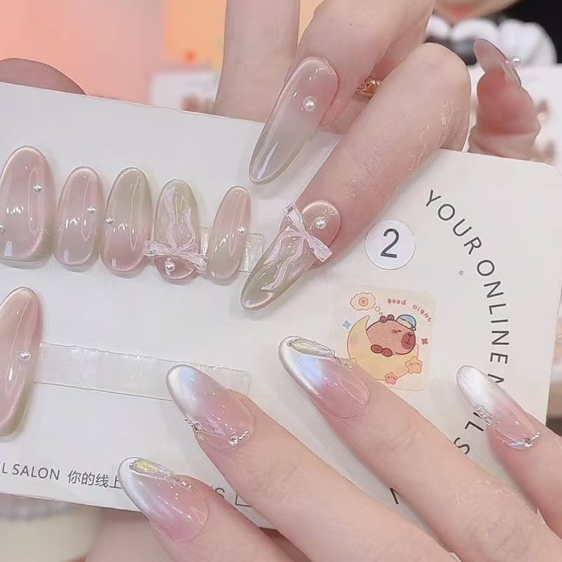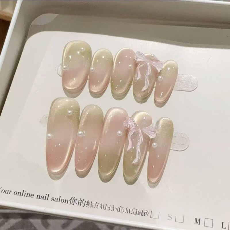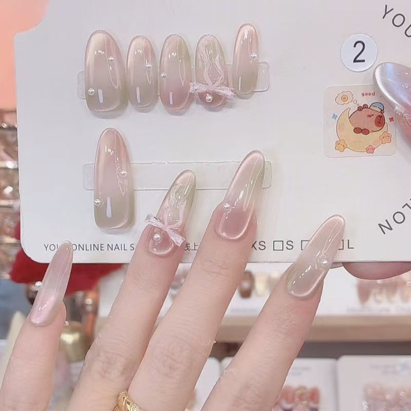 Melocotón Limina Pura hecha a mano con armadura intermitente ojo de gato degradado mariposa temperamento ligero lujo uñas de uñas removibles