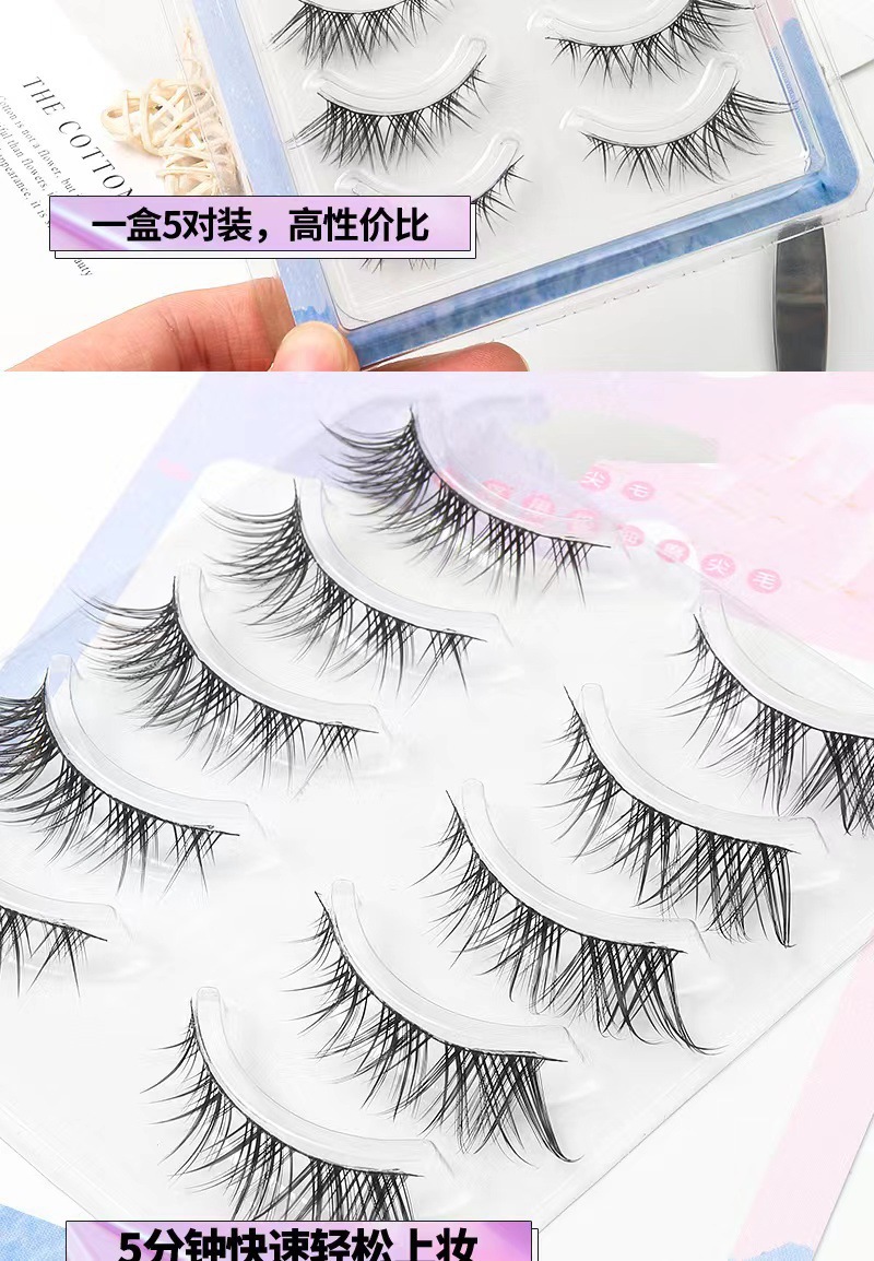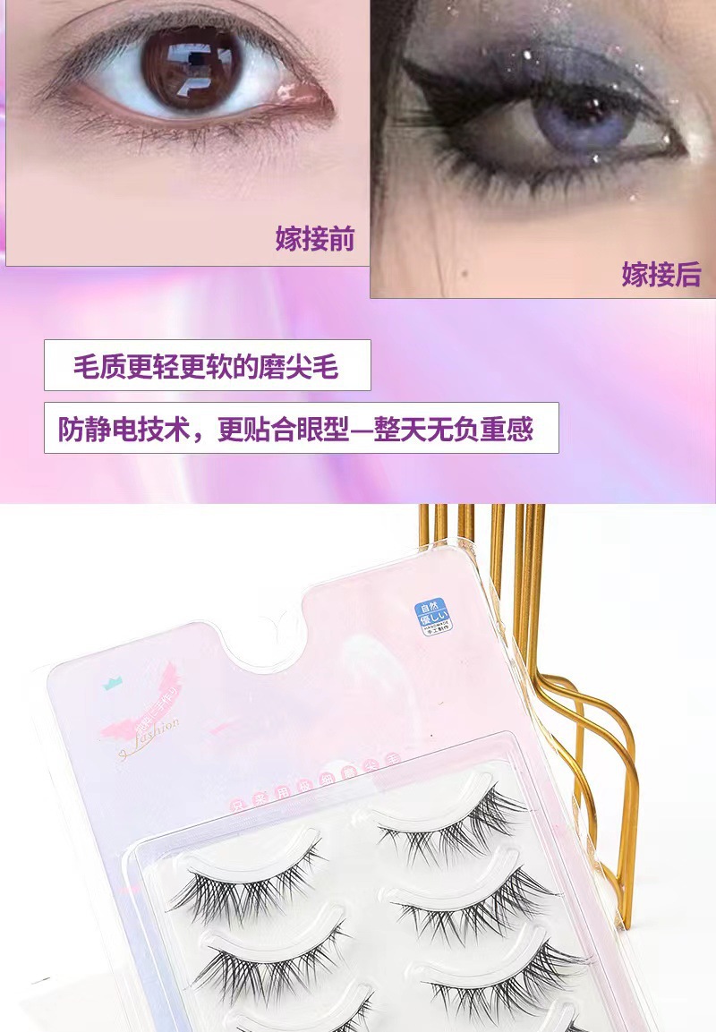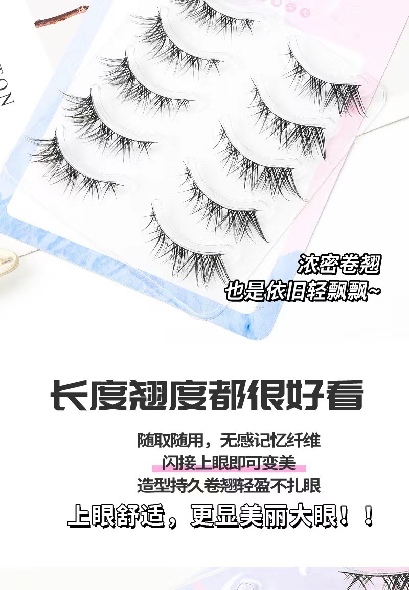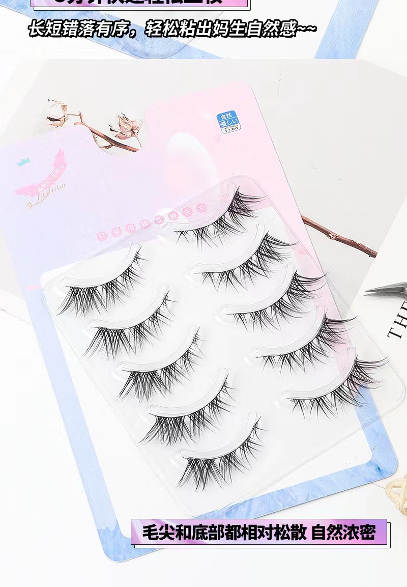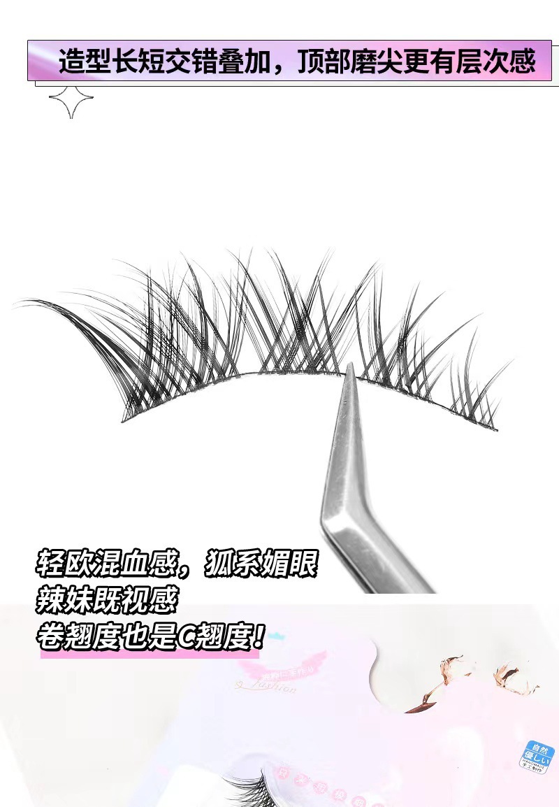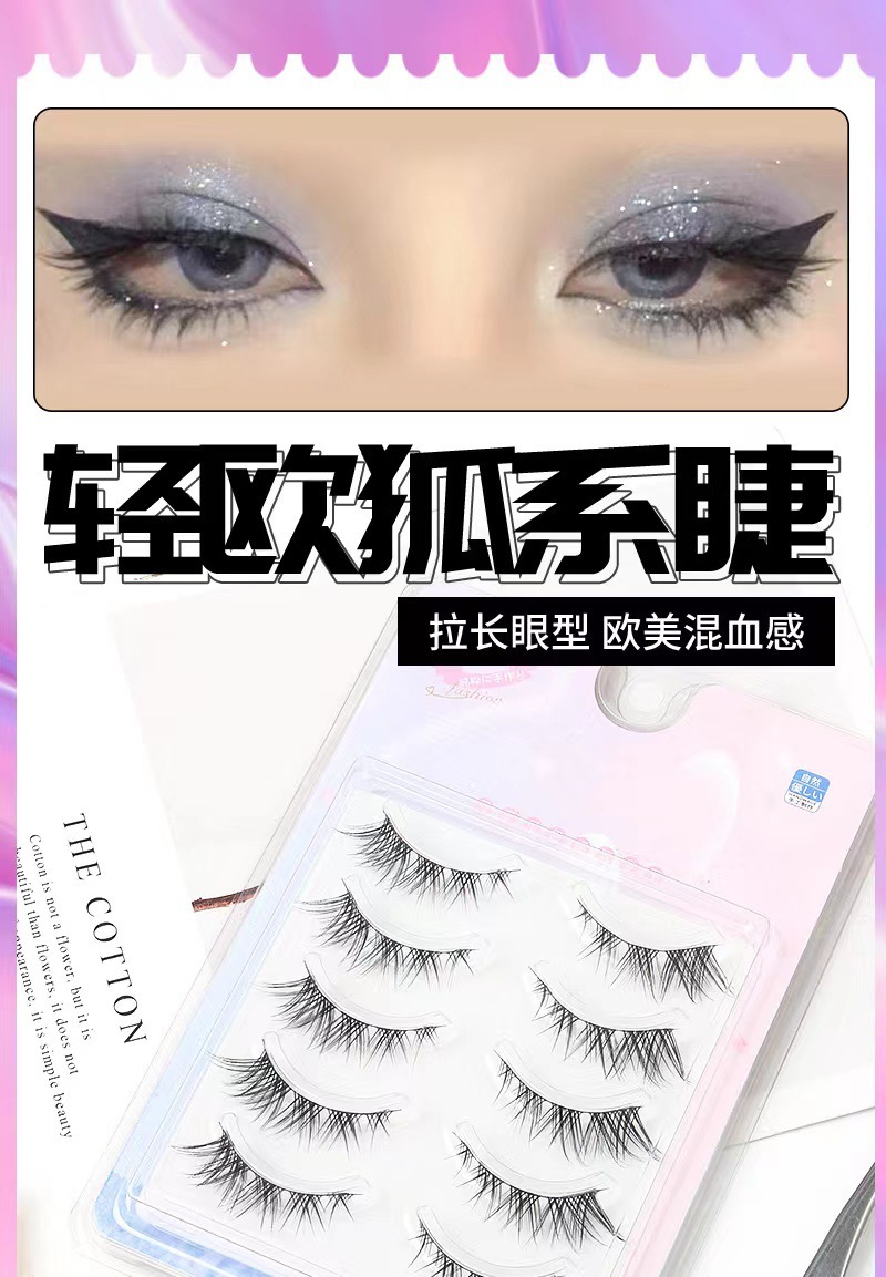 Fox oblicuamente, pestañas postizas HX07, simulación natural femenina, pestañas de tallo duro de demonio europeo ligero de sangre mixta de una pieza