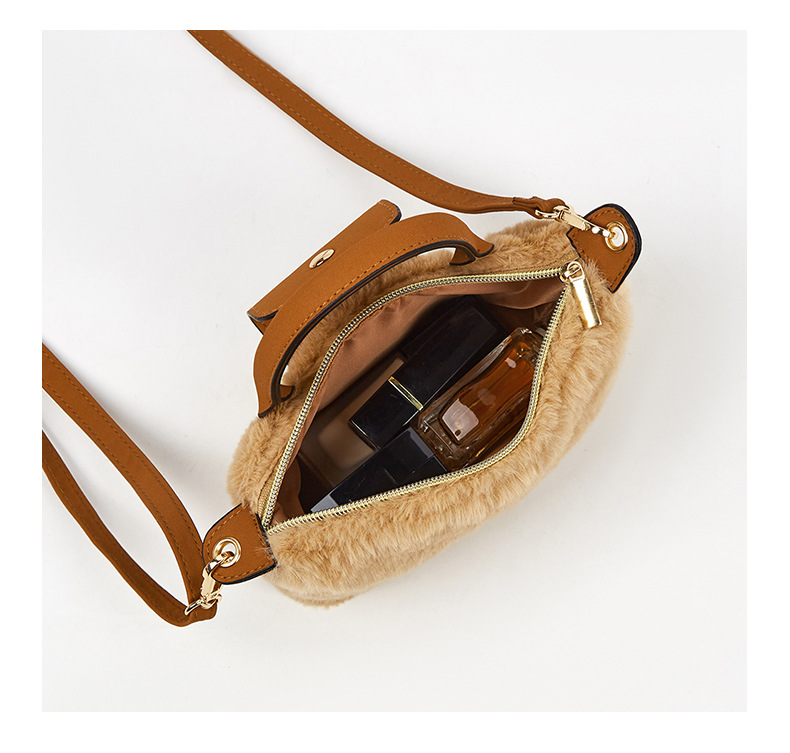 Bolso de cordero de otoño e invierno mini bolso de piel portátil nuevo bolso de bola de masa de mensajero de un solo hombro para mujer