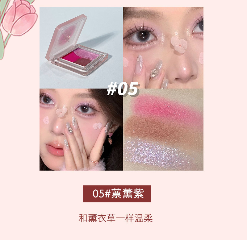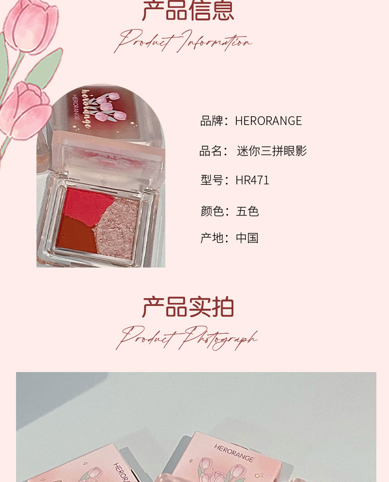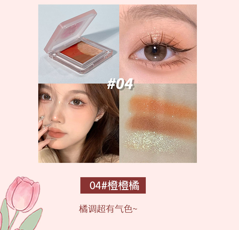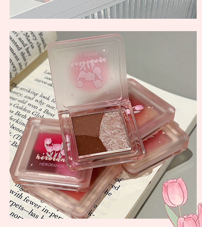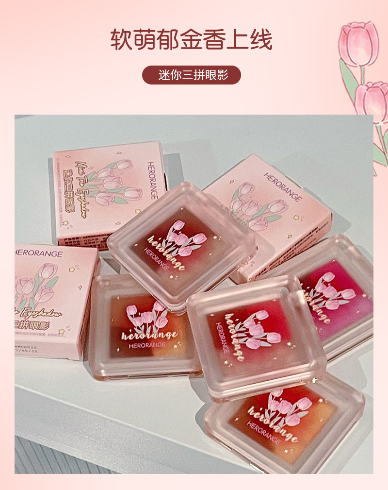 HERORANGE ~ Mini Sombra de ojos de tres piezas, brillo nacarado mate, tierno, no es fácil de volar, paleta de sombra de ojos blanca