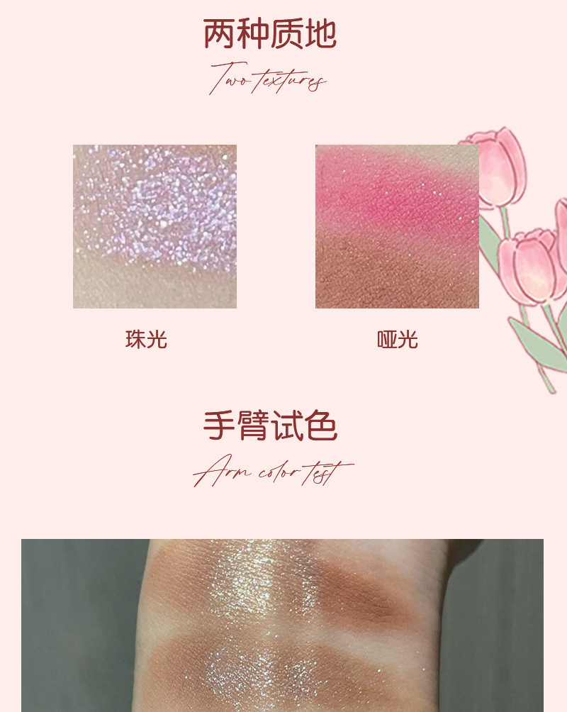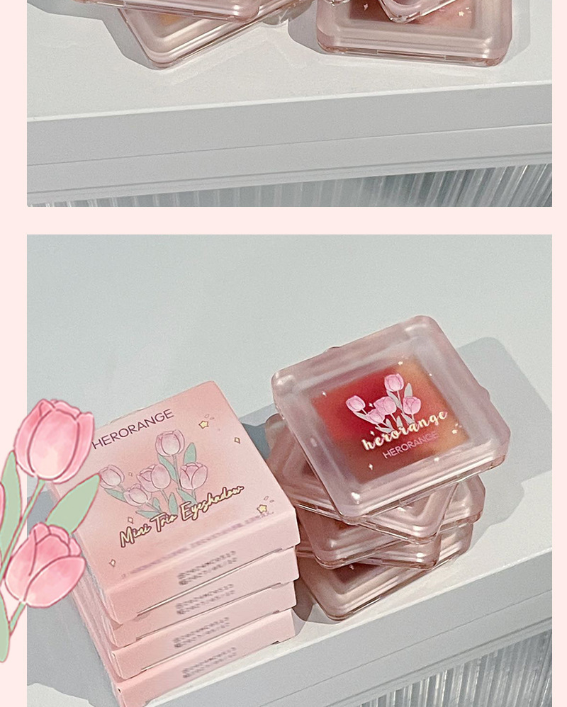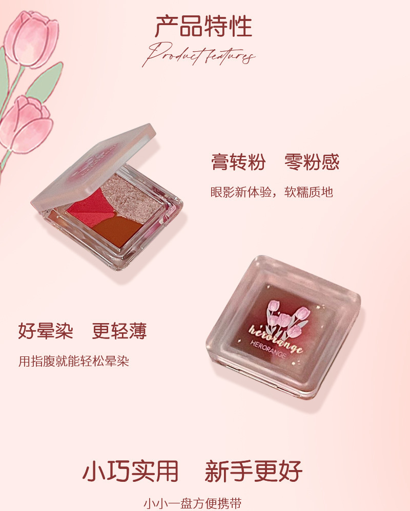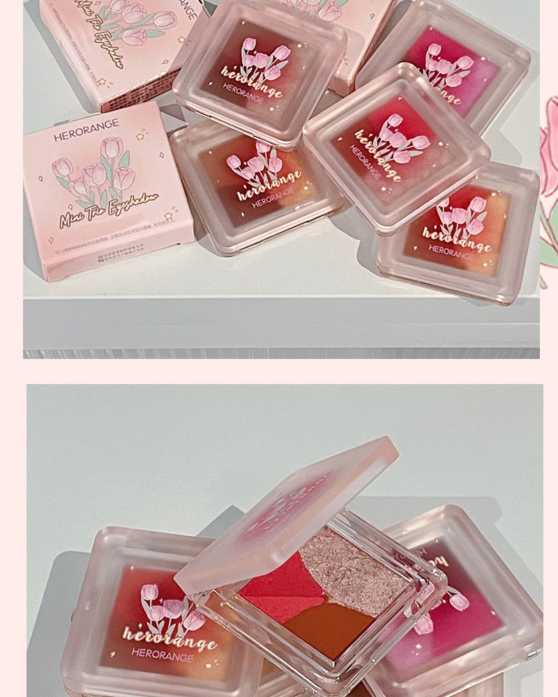 HERORANGE ~ Mini Sombra de ojos de tres piezas, brillo nacarado mate, tierno, no es fácil de volar, paleta de sombra de ojos blanca