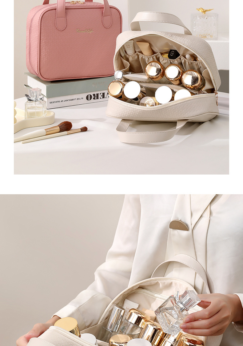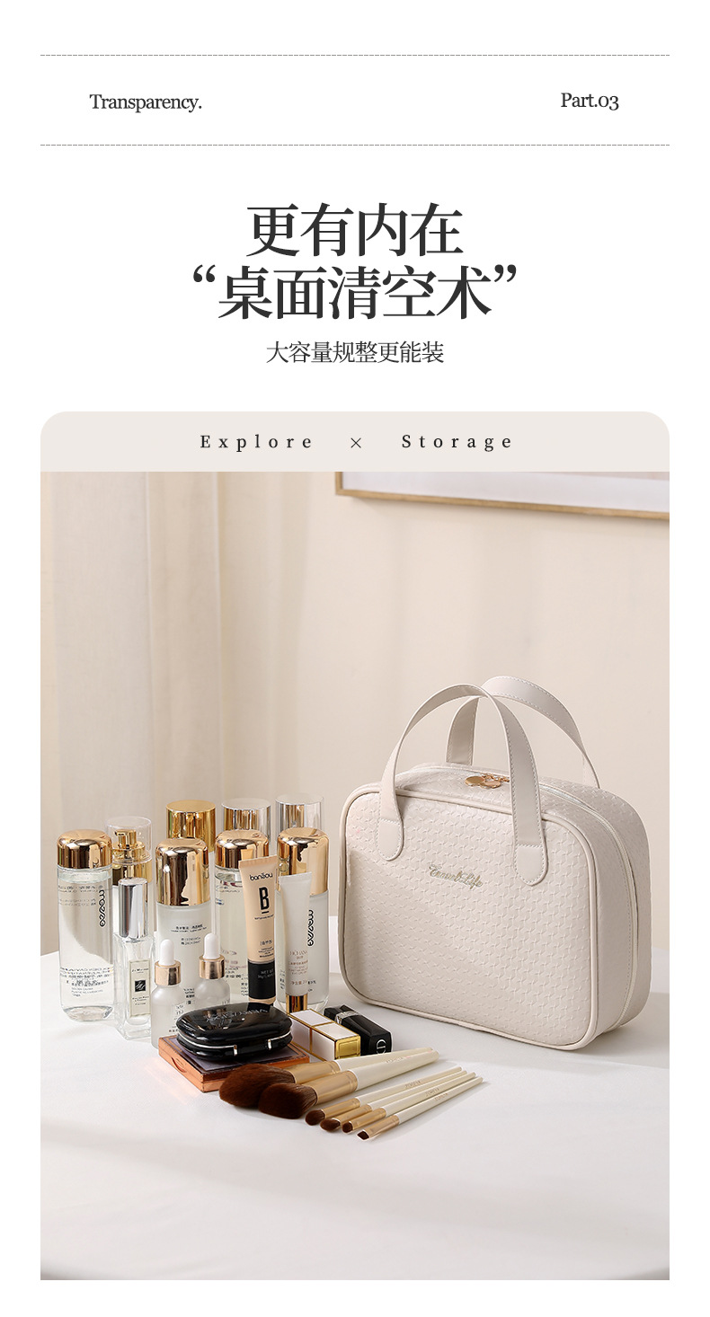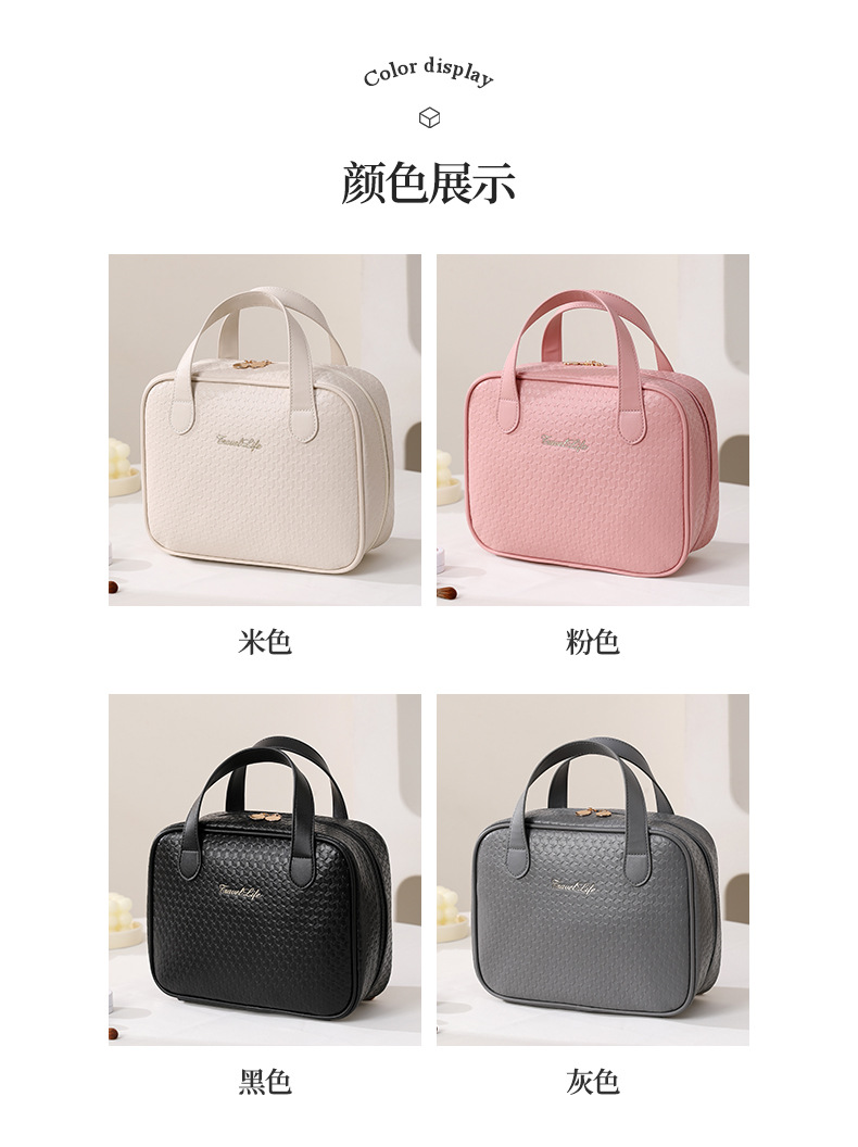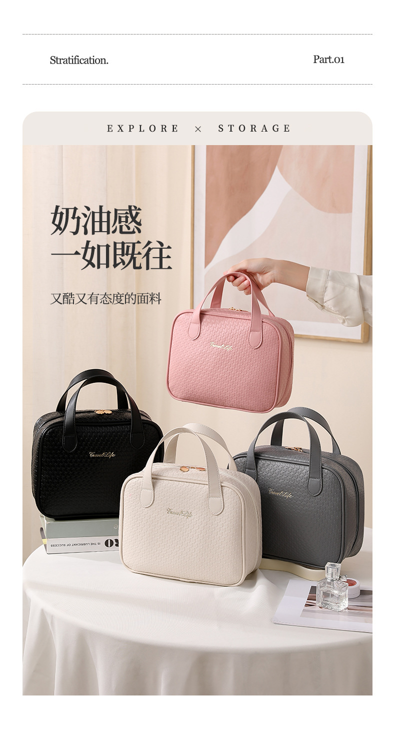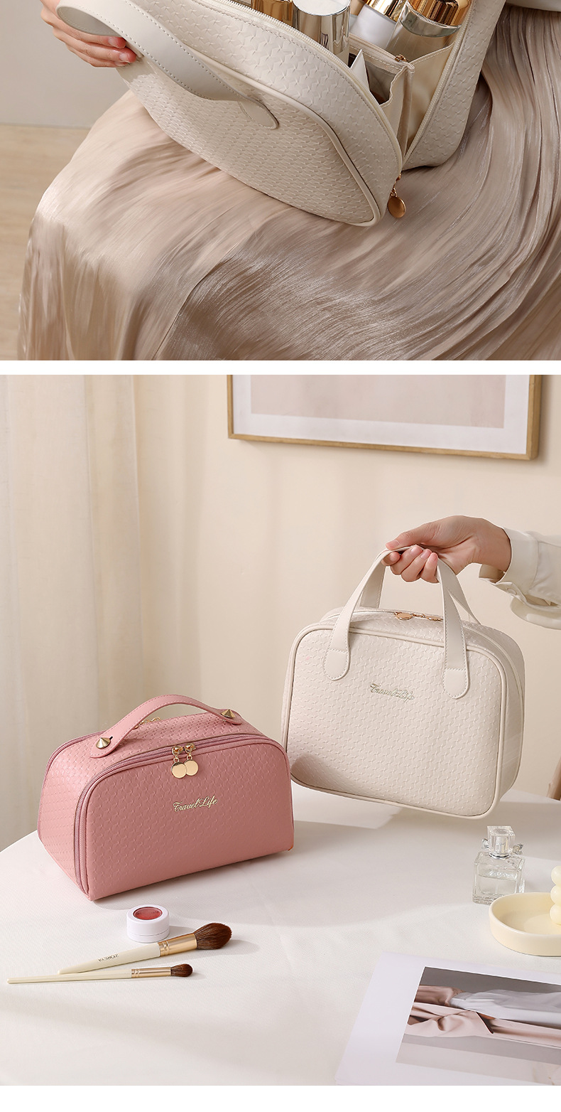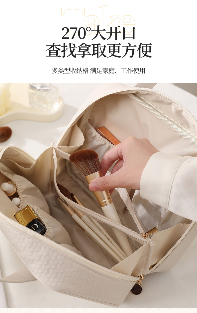 Bolso cosmético portátil doble PU grueso, bolsa de almacenamiento impermeable de gran capacidad y alto valor, conveniente para viajar, bolsa de lavado de gran apertura