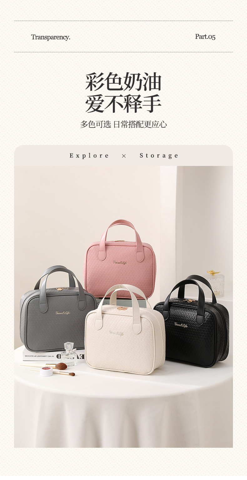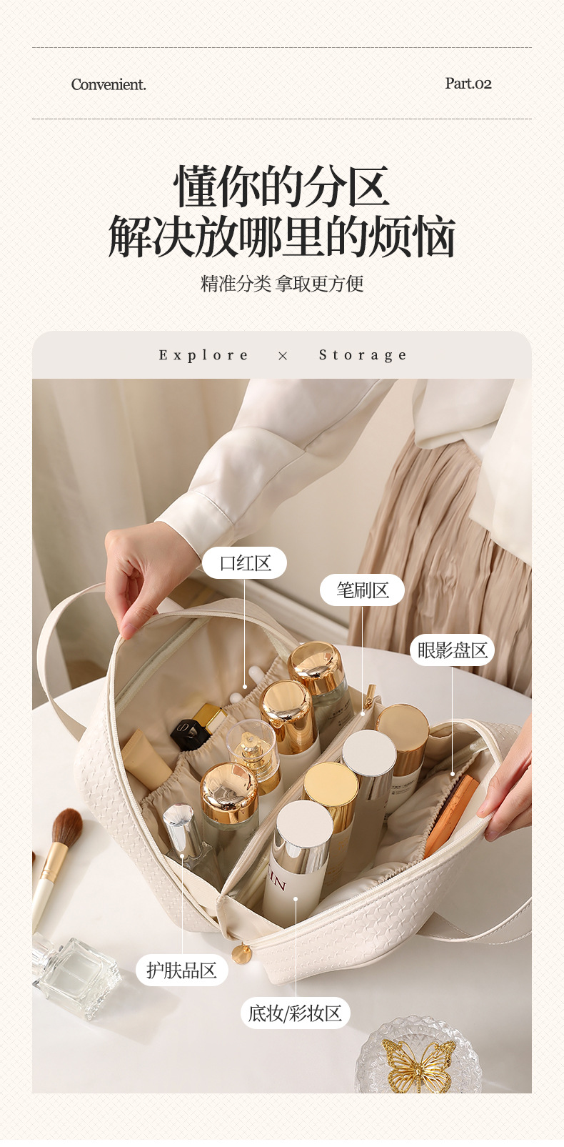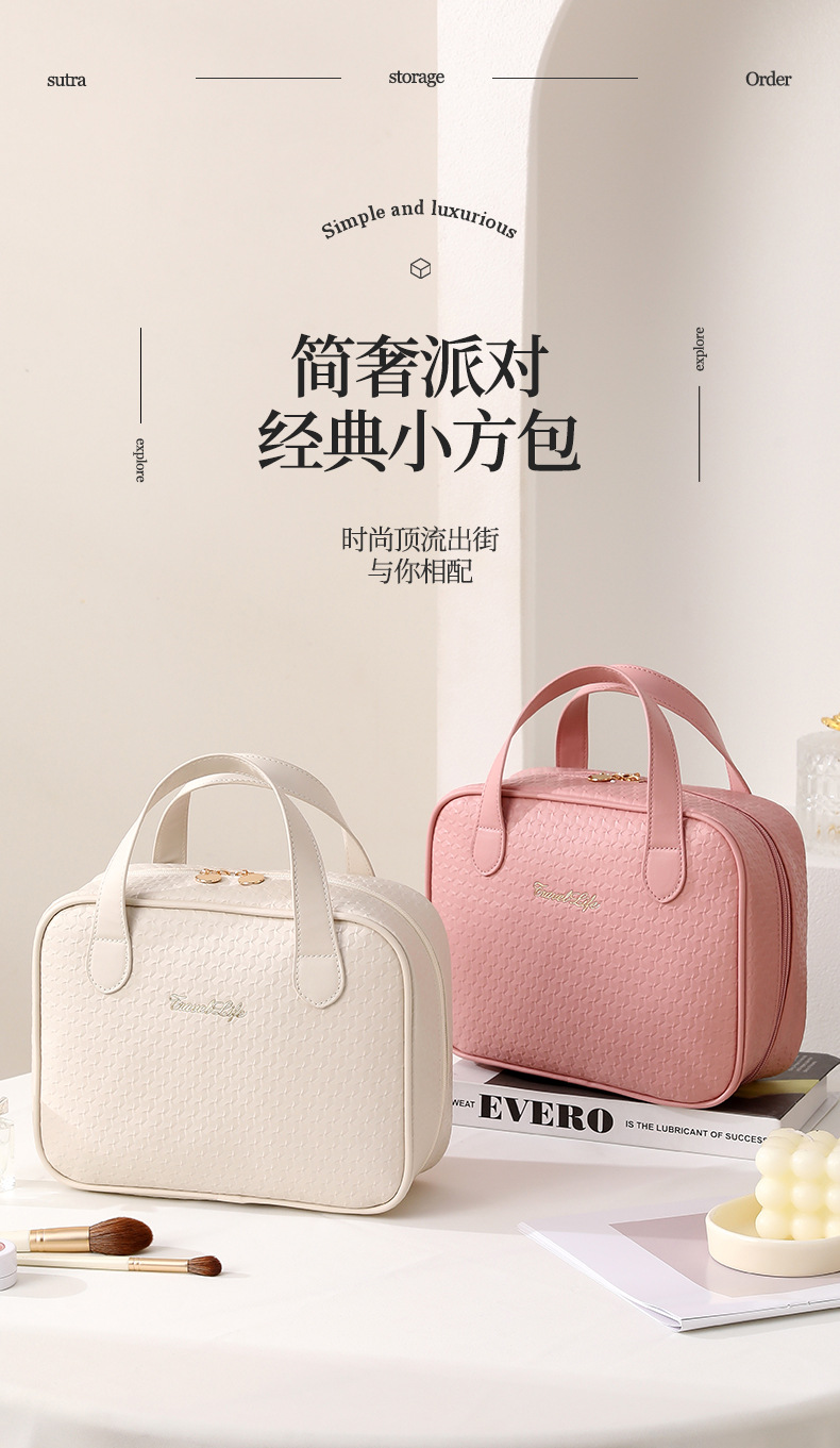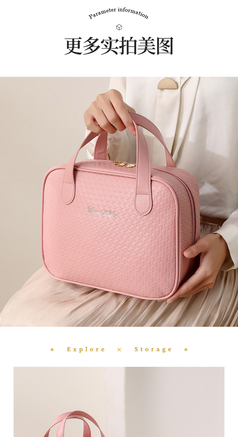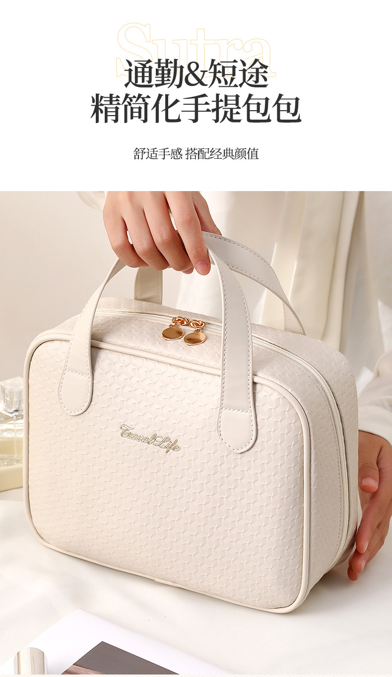 Bolso cosmético portátil doble PU grueso, bolsa de almacenamiento impermeable de gran capacidad y alto valor, conveniente para viajar, bolsa de lavado de gran apertura