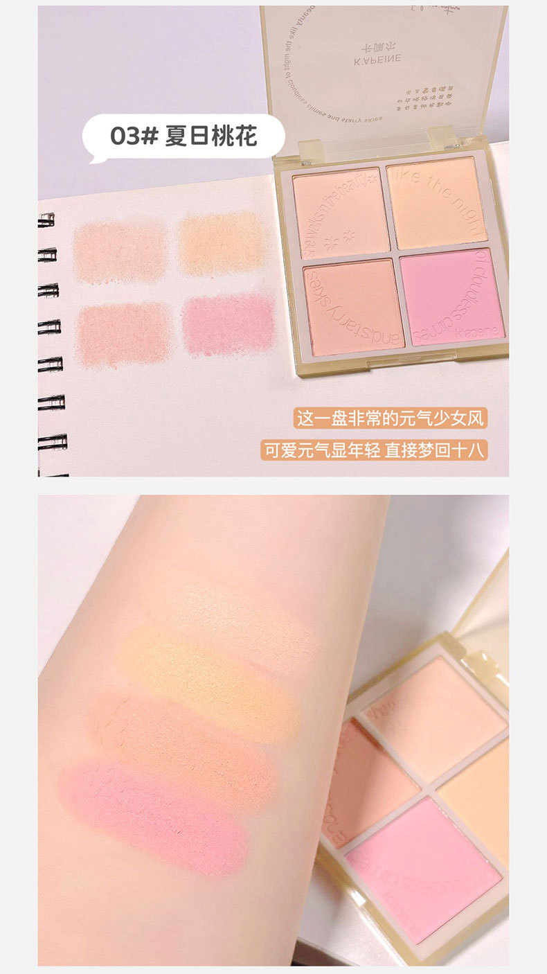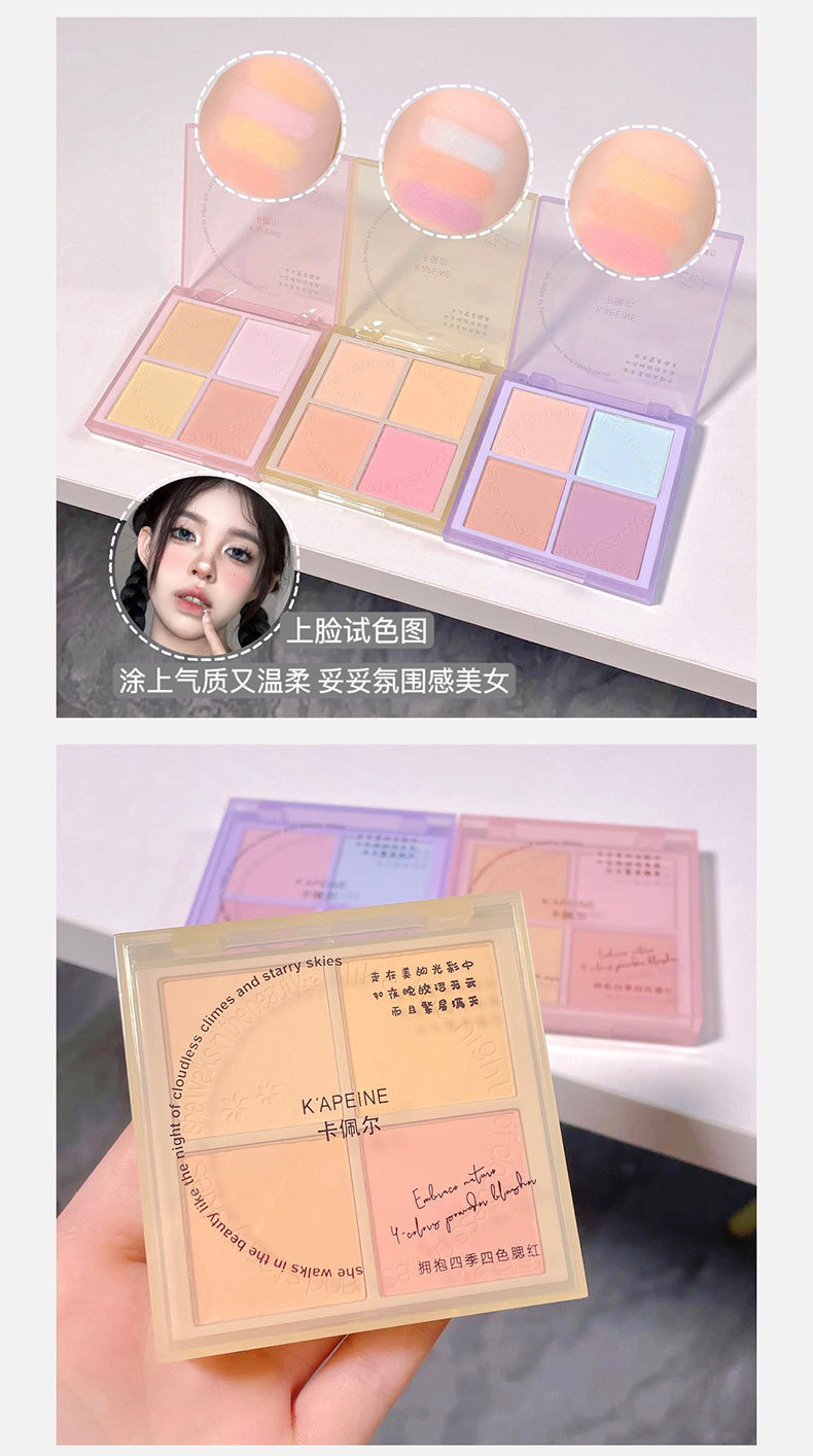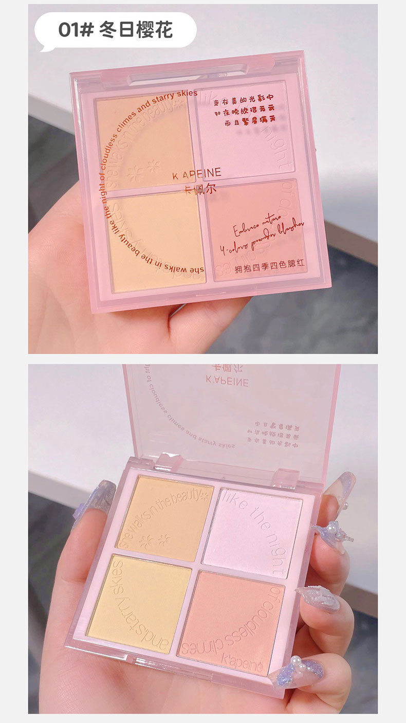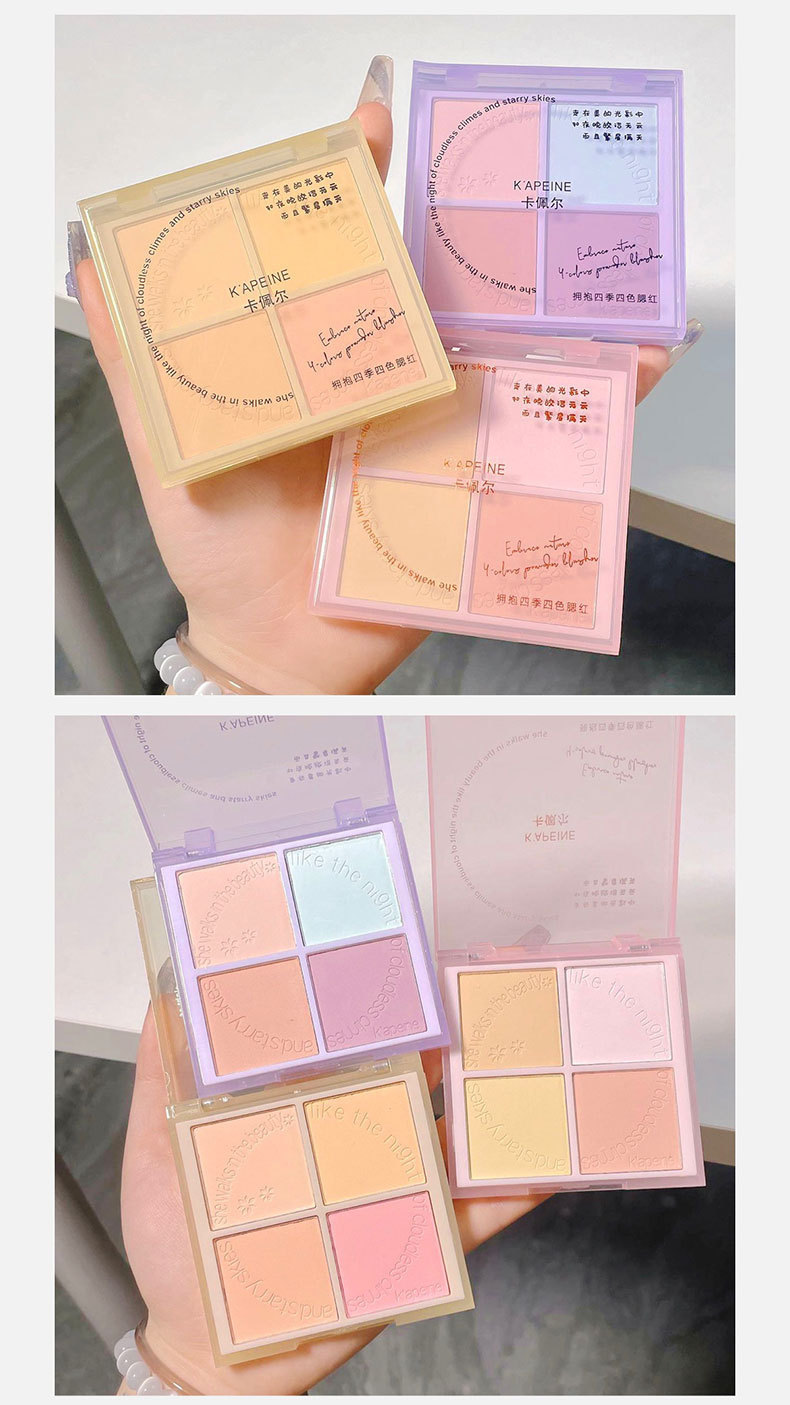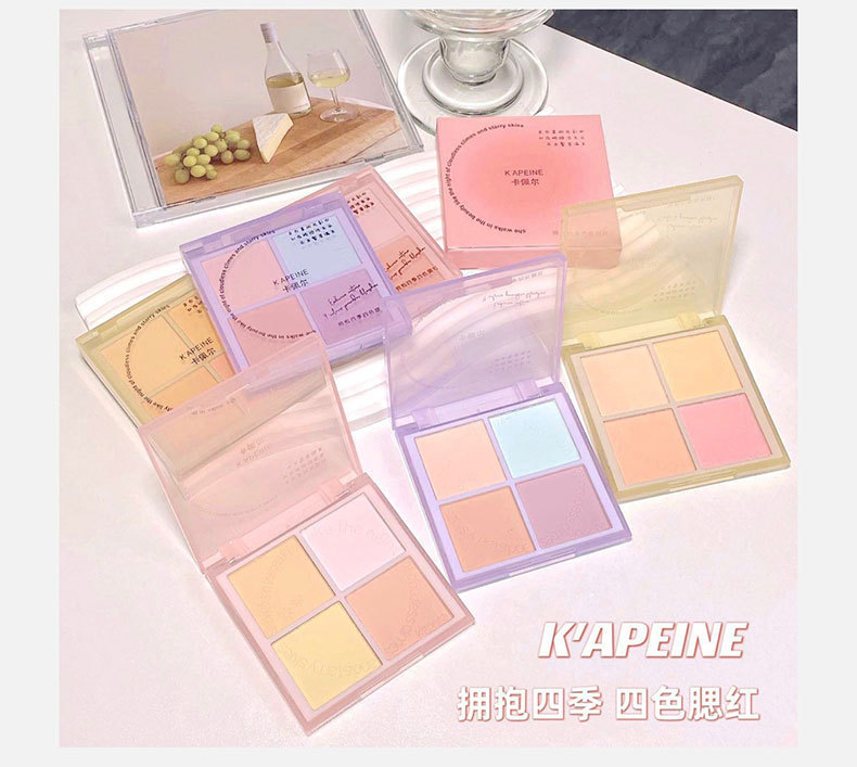Abraza las cuatro estaciones, rubor de cuatro colores, polvo azul, maquillaje delicado, maquillaje, tez blanca, rubor de expansión, venta al por mayor transfronteriza