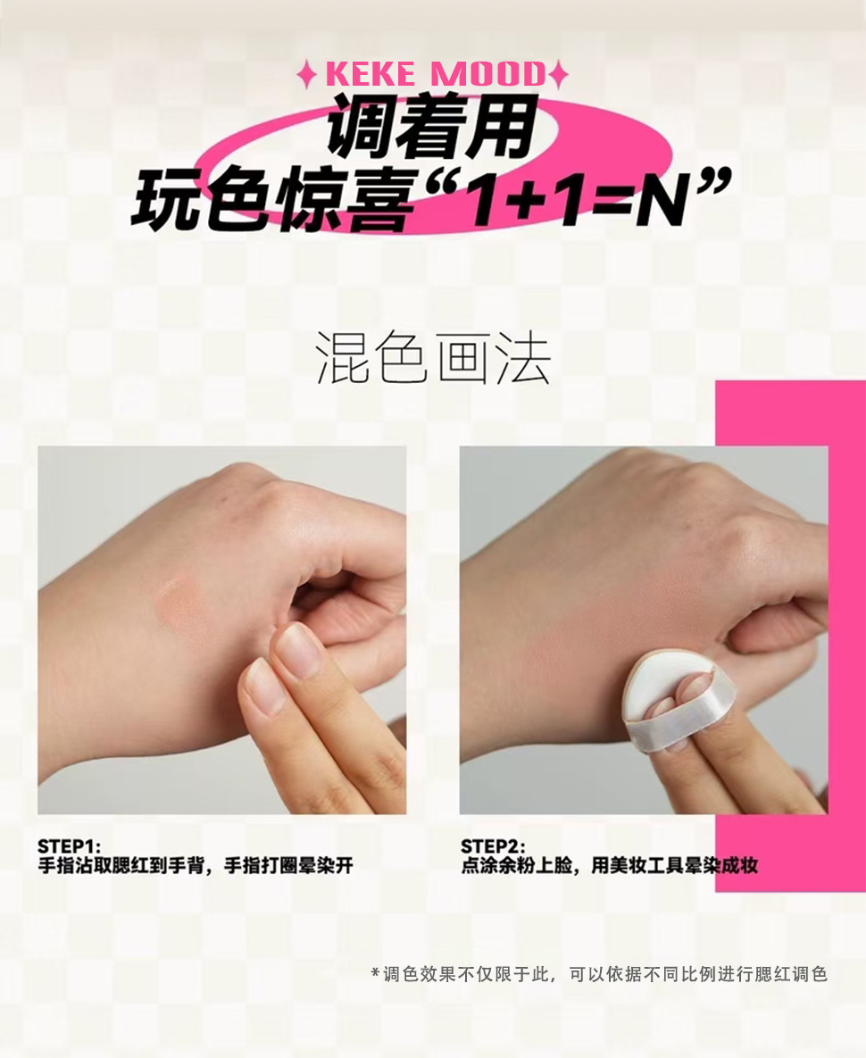 Kekemood Crema de rubor en gouache Vitalidad Melocotón Mate Placa de rubor multiusos monocromática natural y duradera