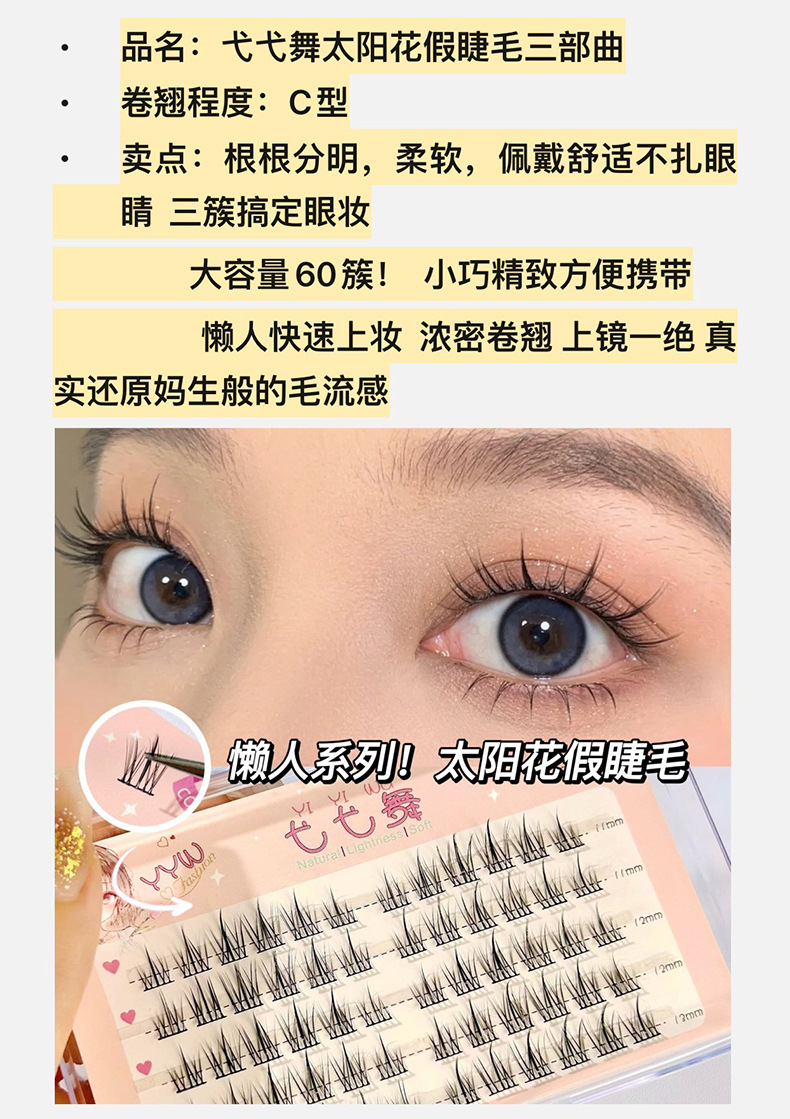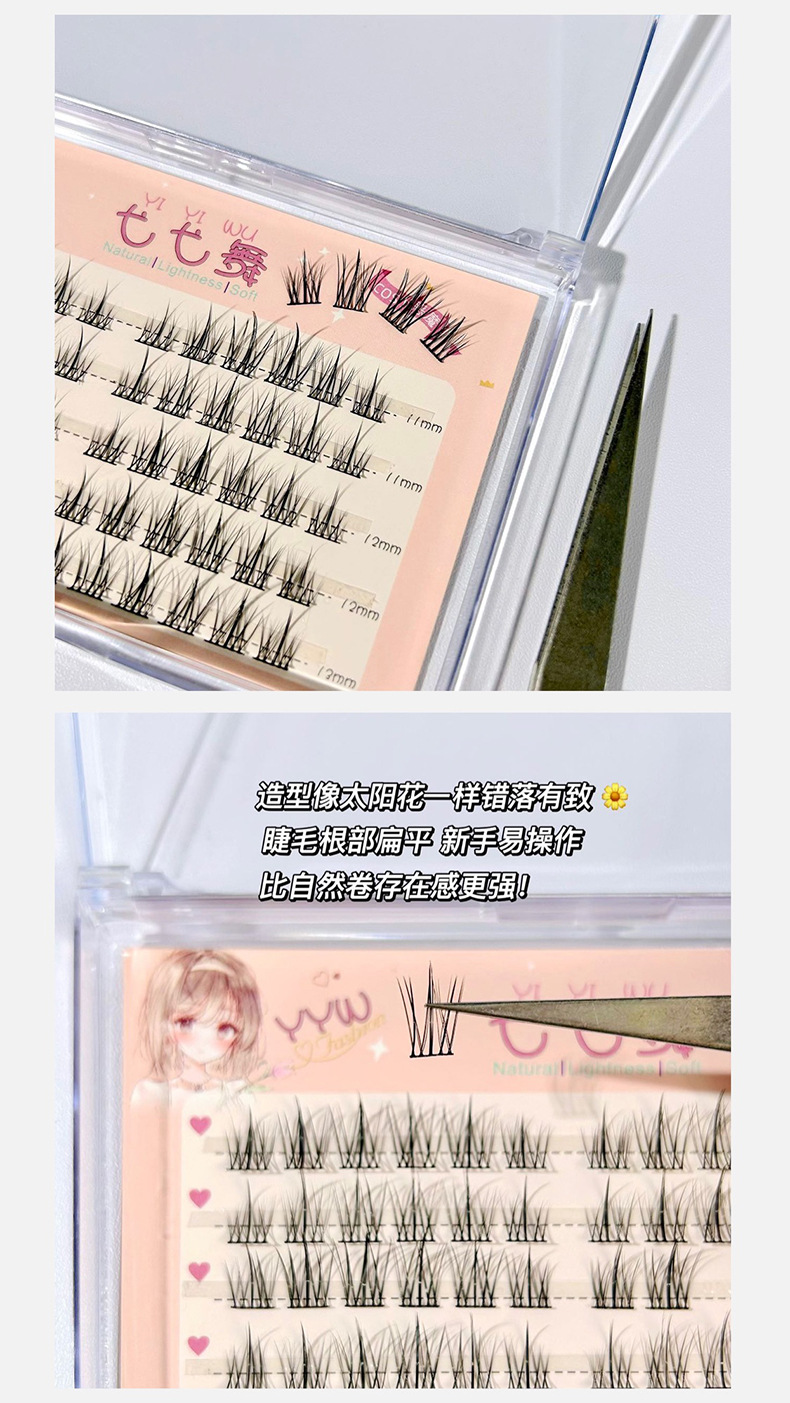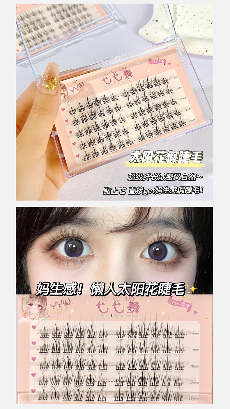 Yiyi Dance Lazy Sunflower Pestañas postizas Libro de pestañas de gran capacidad Tallo superfino Fairy cómico autoinjerto segmentado