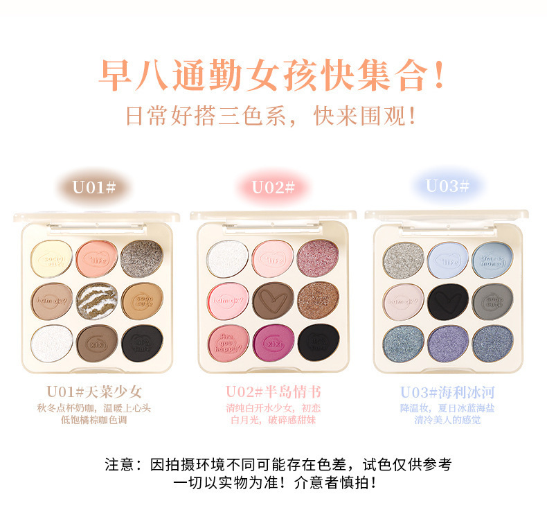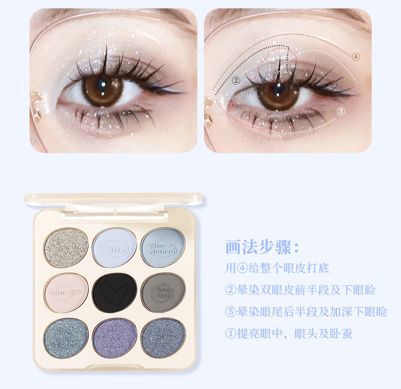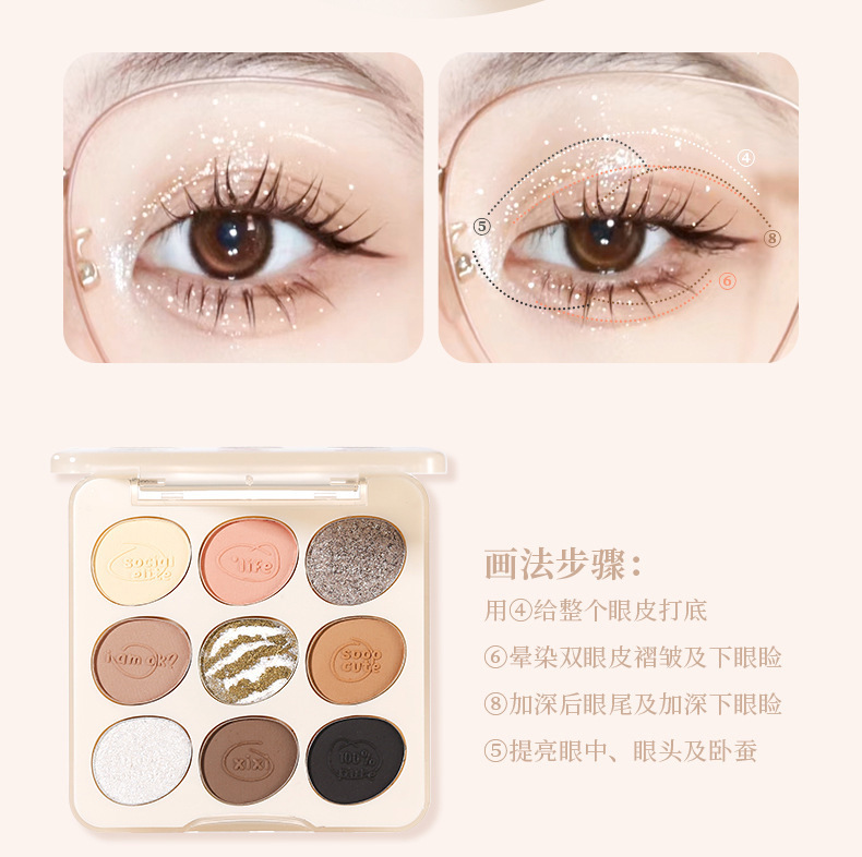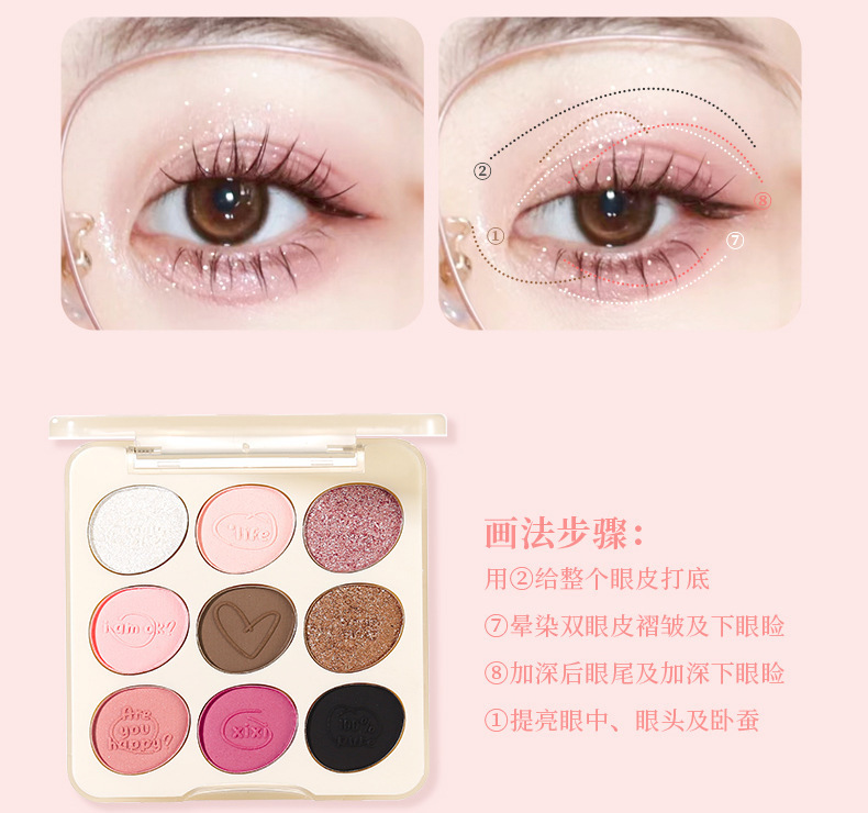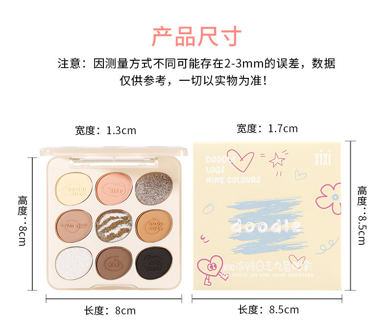 Maquillaje xixi graffiti log sombra de ojos de nueve colores brillo mate perlado todos los días agua hervida de baja saturación primer maquillaje de amor