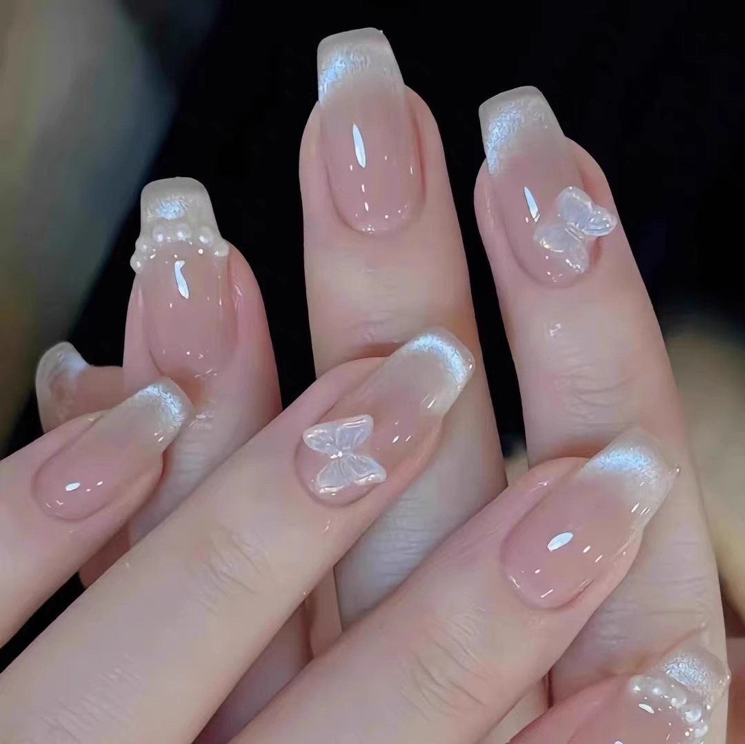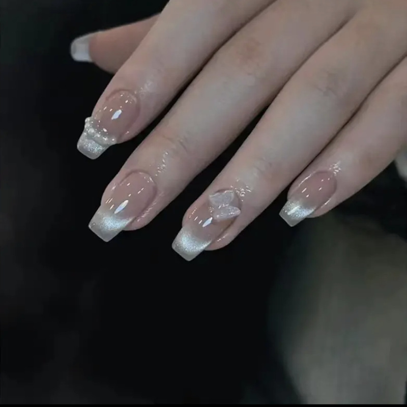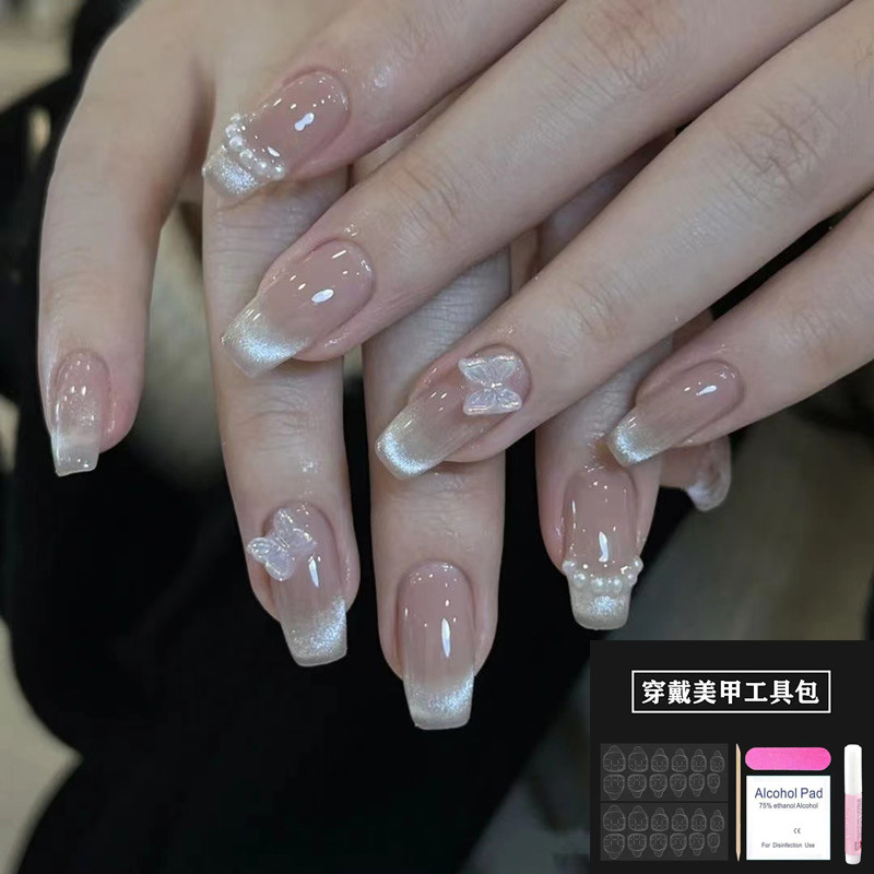 Yi danza Zhuang Zhou Mengdie desgaste manicura pieza de uñas terminado ojo de gato desnudo fototerapia parche de uñas mariposa Blanco