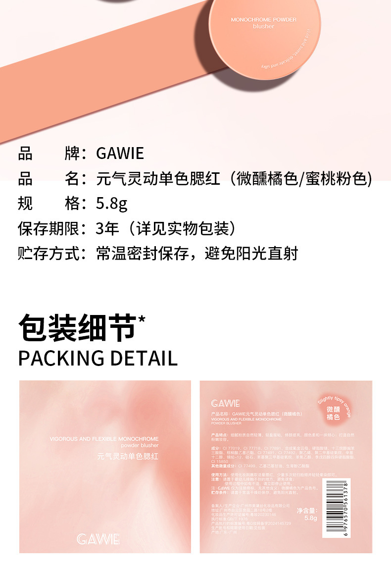 Vitality Smart monocromo colorete blanco mate ilumina el maquillaje nude natural delicado vitalidad chica ligeramente naranja al por mayor