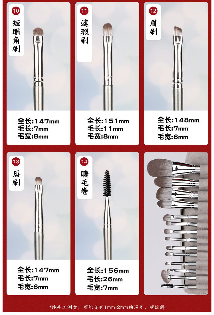 Cangzhou vio por primera vez 14 juegos de pinceles de maquillaje, juego completo suave de pinceles para sombra de nariz, sombra de ojos, rubor, herramientas de belleza de alto brillo