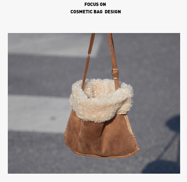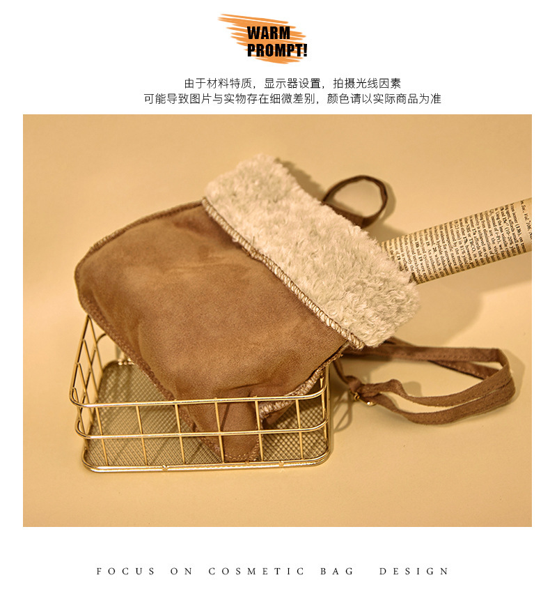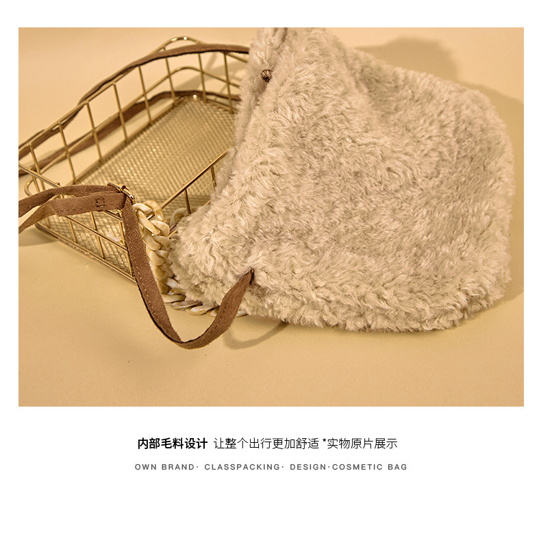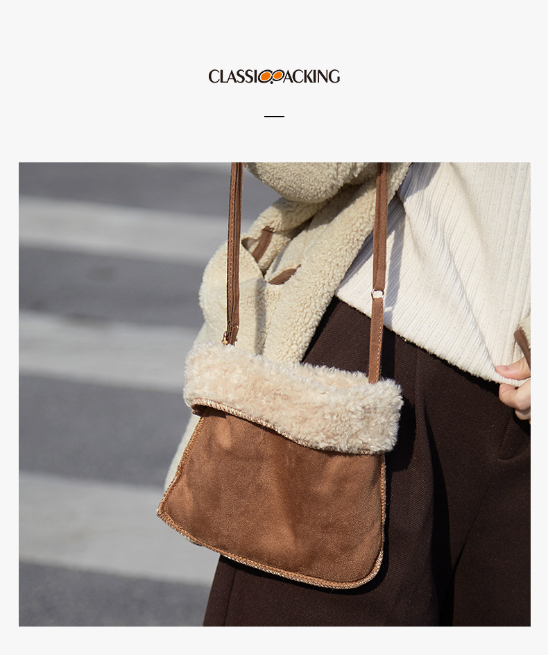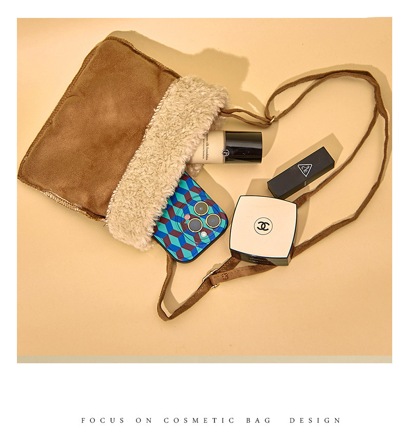 2025 versión coreana de la bolsa de teléfono móvil de color sólido simple empalme material de lana de cordero bolso de mensajero de un solo hombro bolso de lana de otoño e invierno