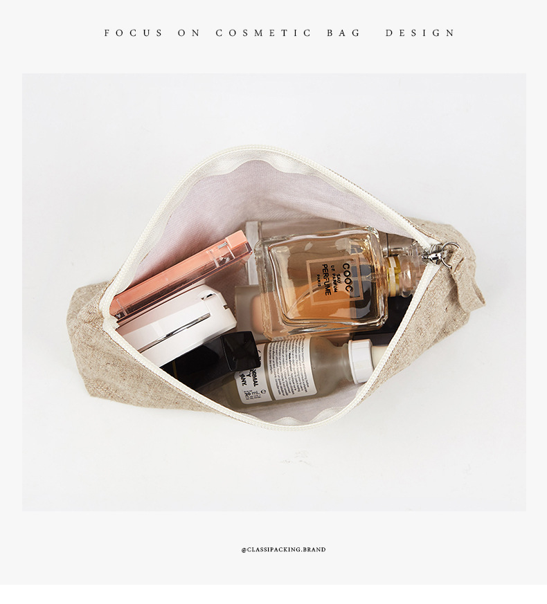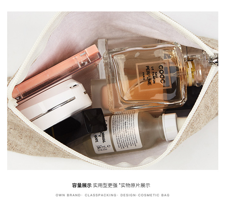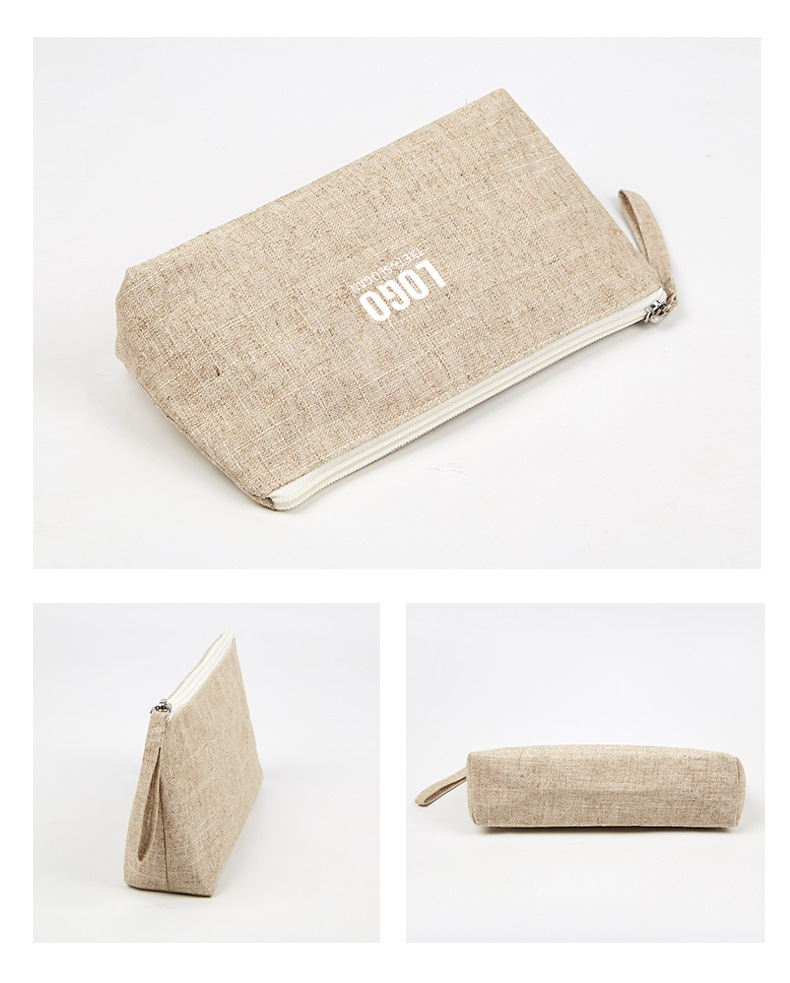 Bolsa de cosméticos de estilo japonés simple Bolsa de cosméticos de material de lino Bolsa con cremallera Bolsa de almacenamiento de herramientas de belleza portátil multifuncional