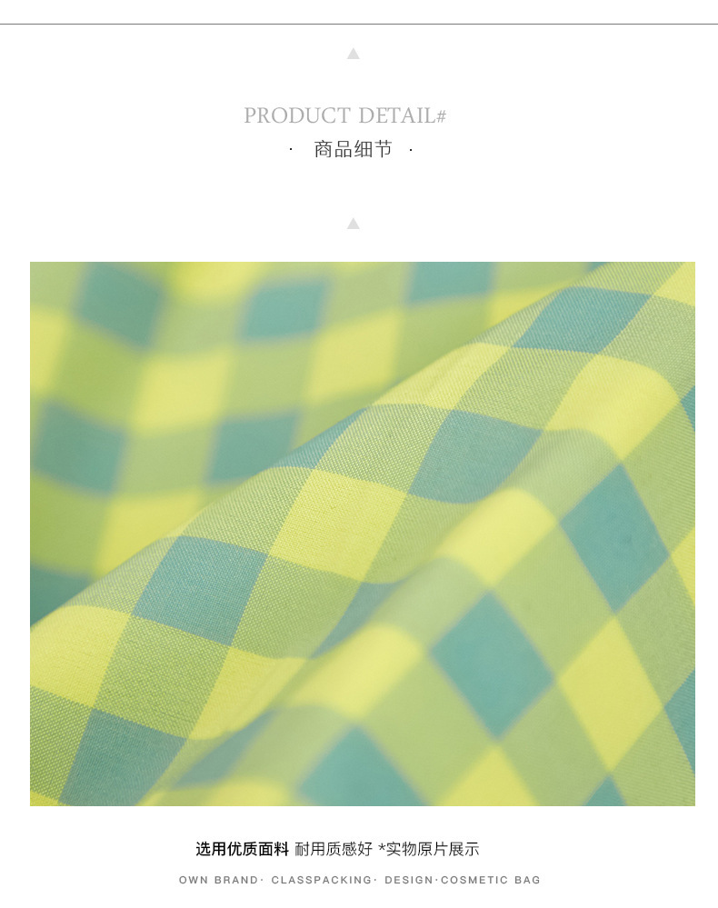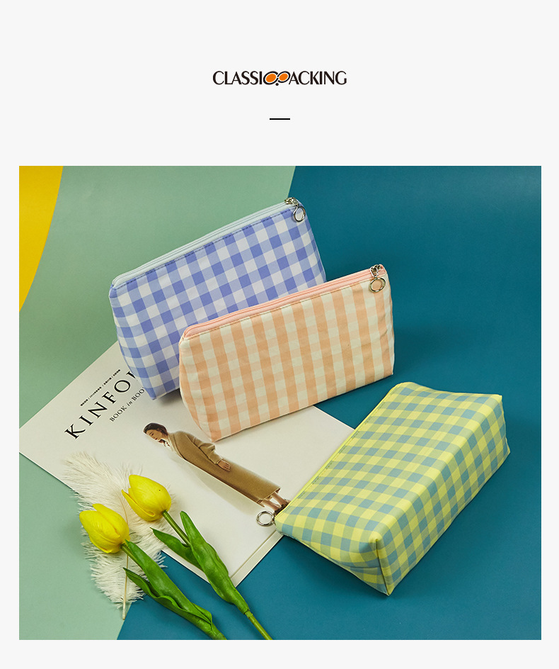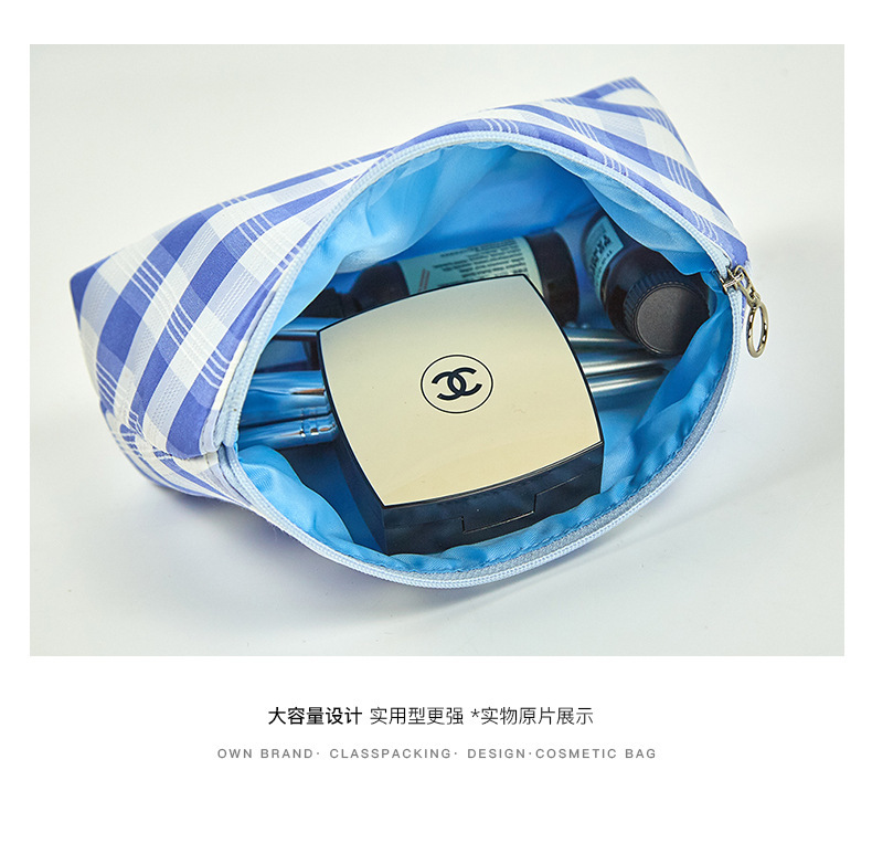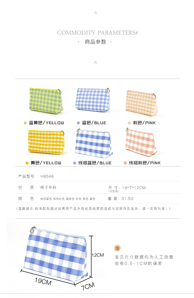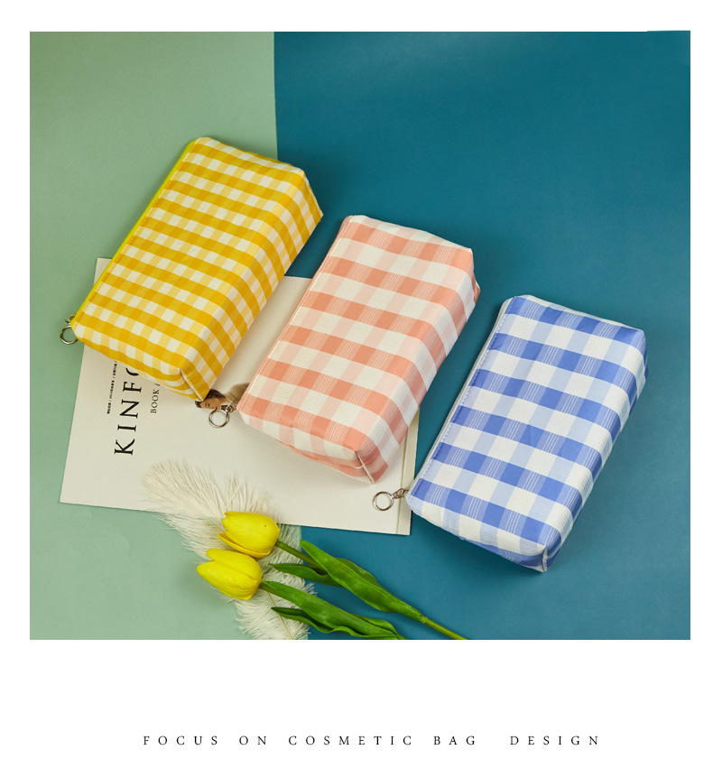 Versión coreana del bolso de mano simple, bolso de almacenamiento portátil con cremallera de gran capacidad, bolso de maquillaje de tela a cuadros multifuncional portátil para mujer
