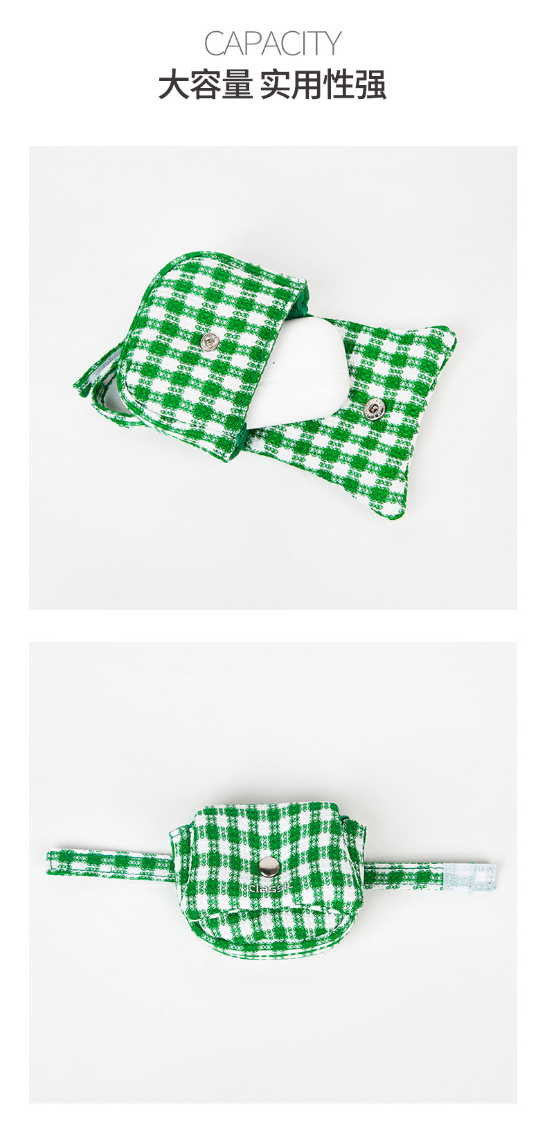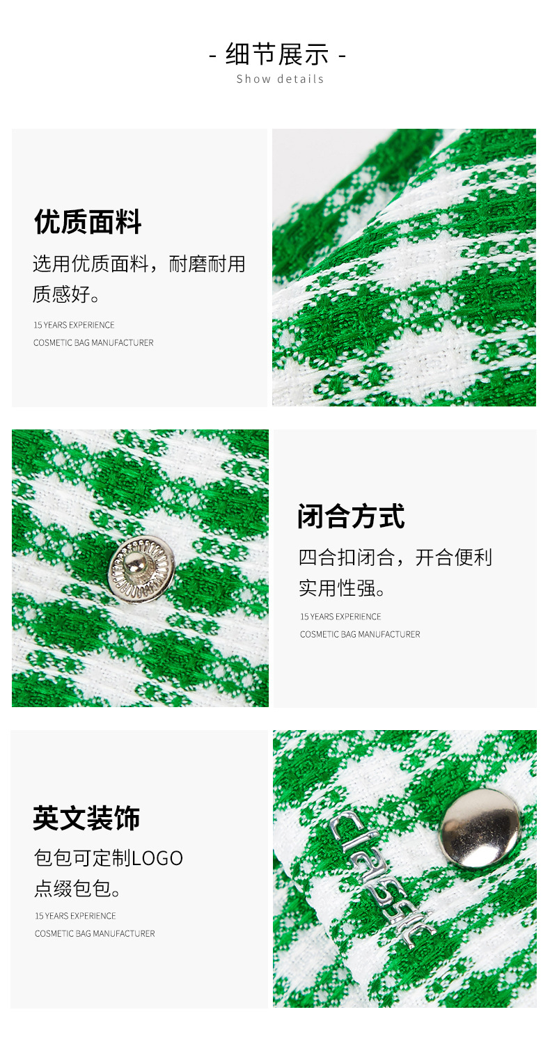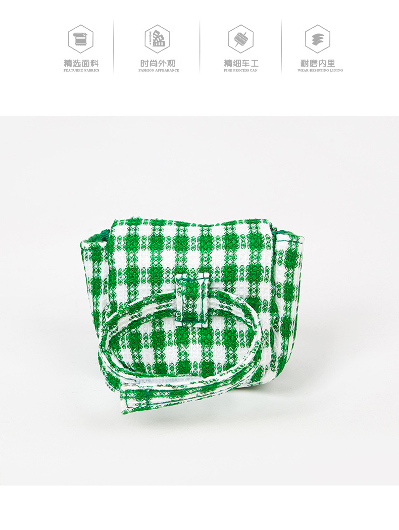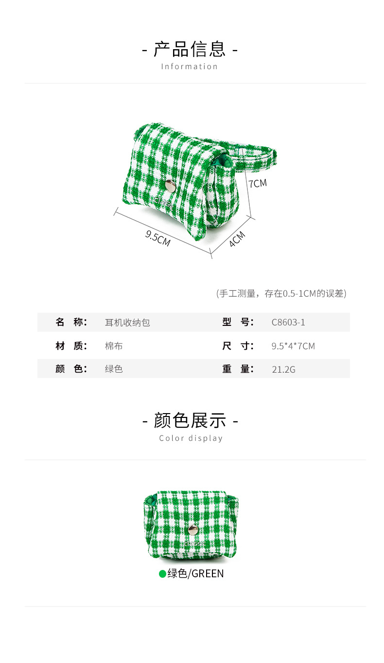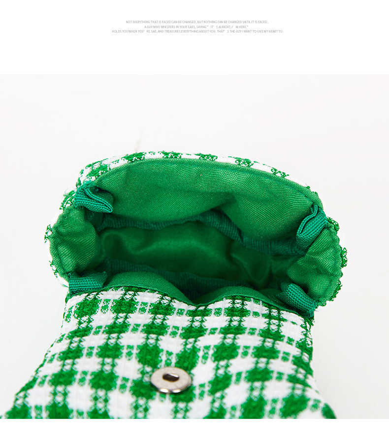 Mini bolsa de almacenamiento al por mayor de fábrica, bolsa de auriculares simple y dulce, bolsa de almacenamiento a cuadros verde fresca pequeña, logotipo impreso