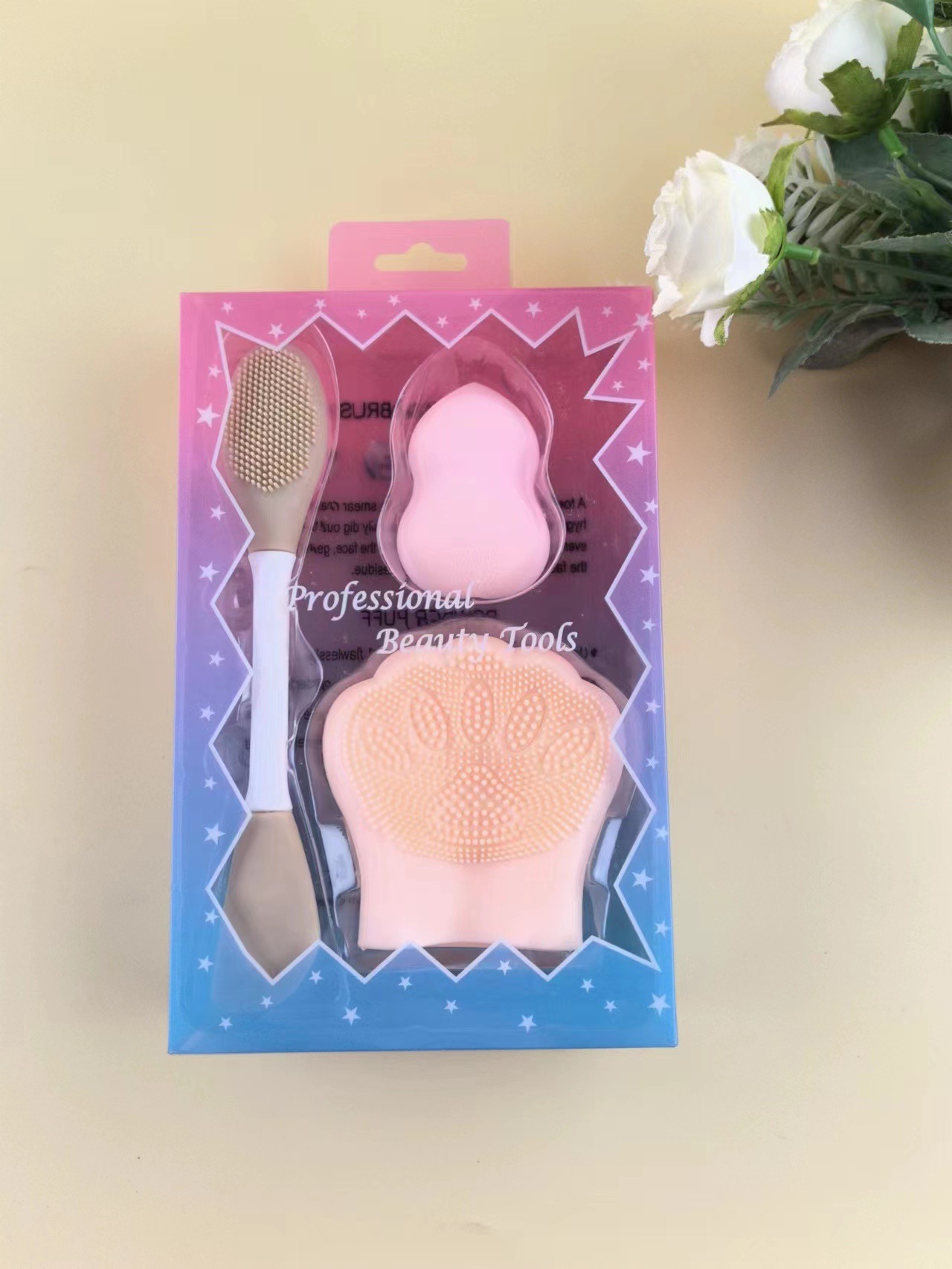 Spot transfronterizo al por mayor juego de cepillos de mascarilla de silicona cepillo de lavado de cara de garra de gato juego de maquillaje suave y agradable para la piel sin polvo