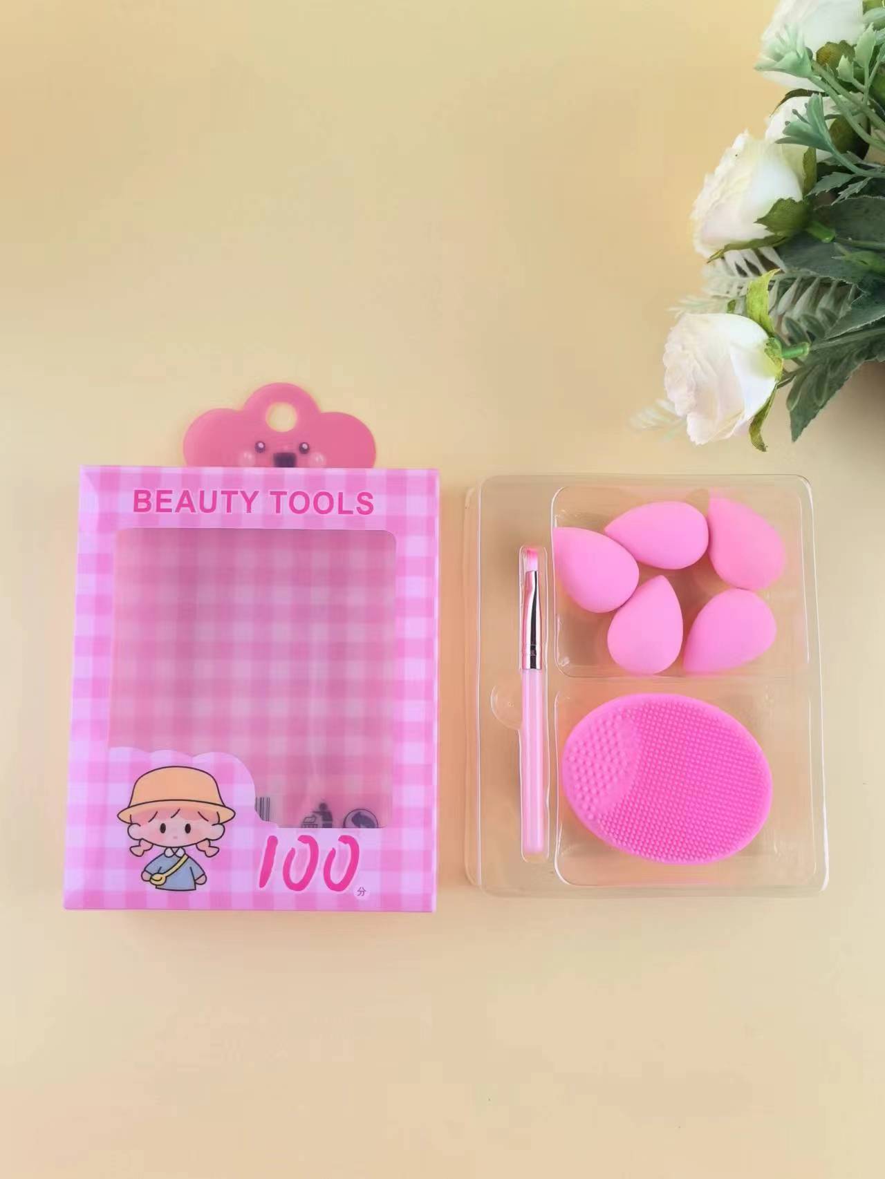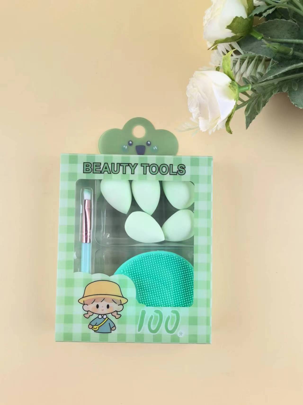 Spot transfronterizo mini juego de huevos de belleza serie de cepillo de lavado de cara de silicona conjunto de soplo de polvo herramientas de maquillaje al por mayor