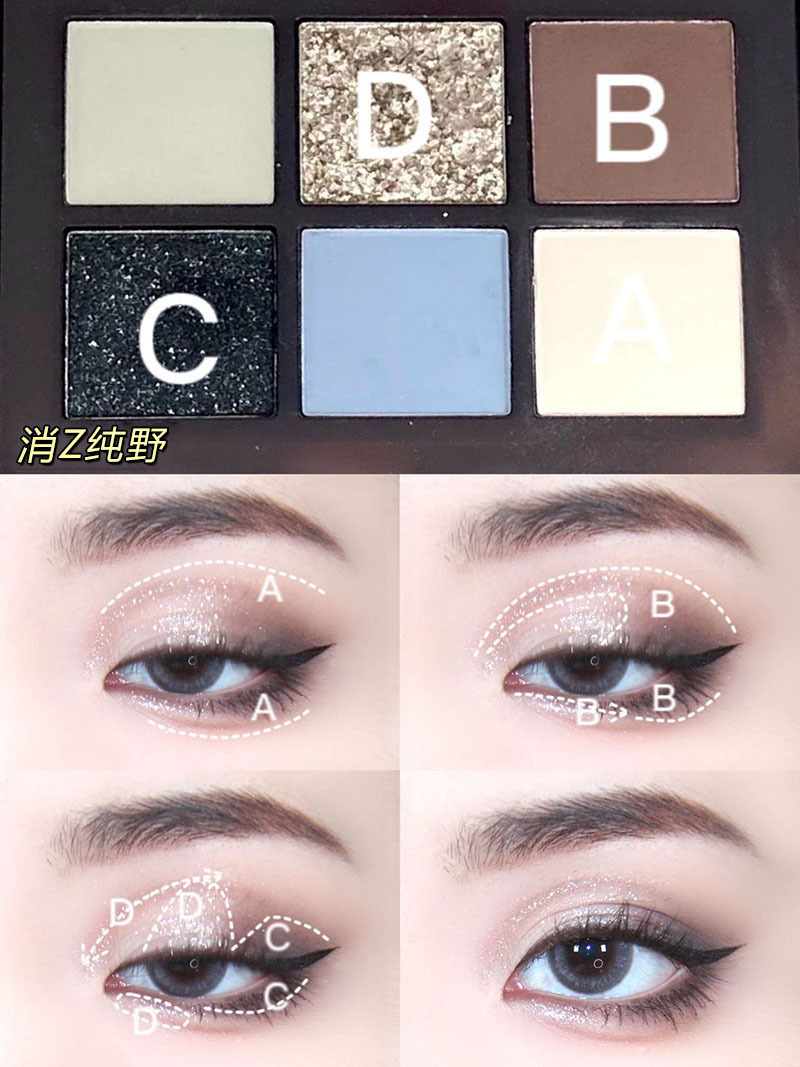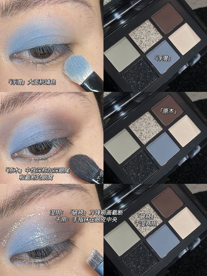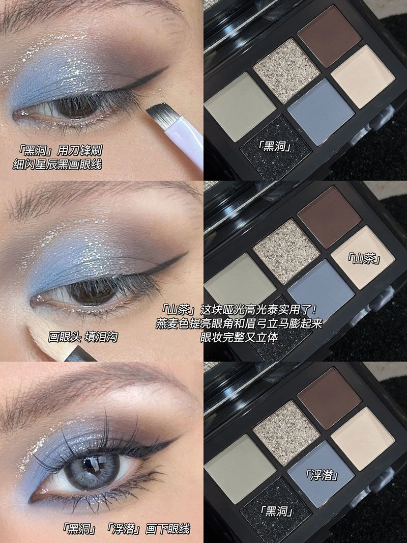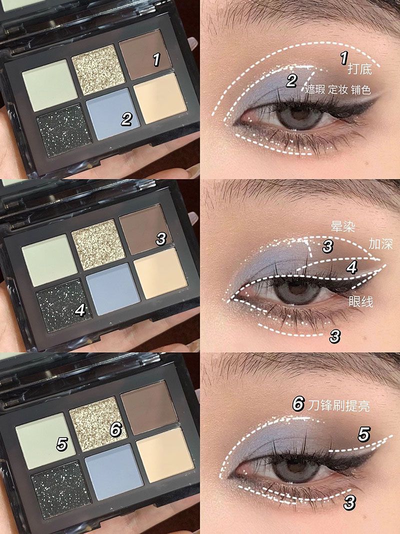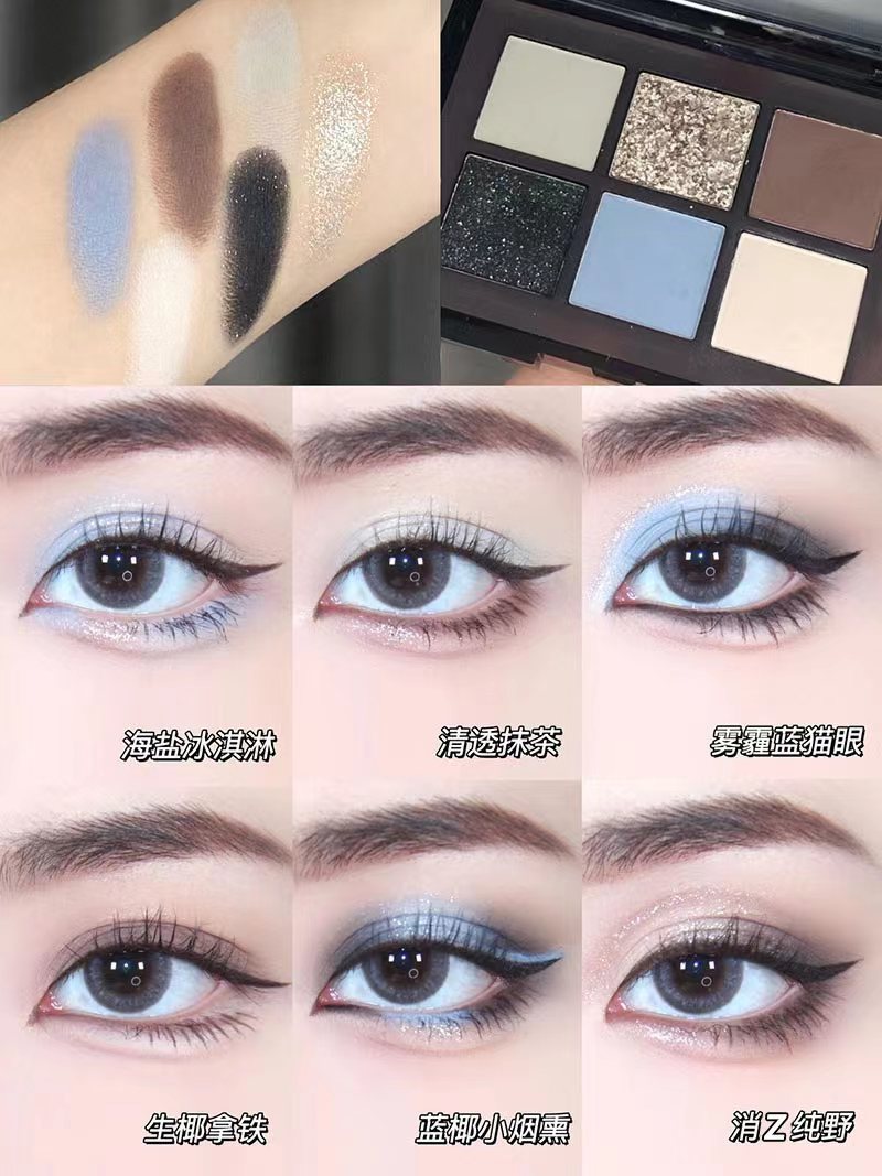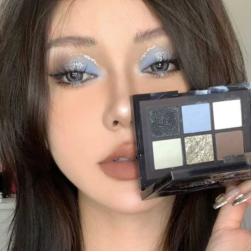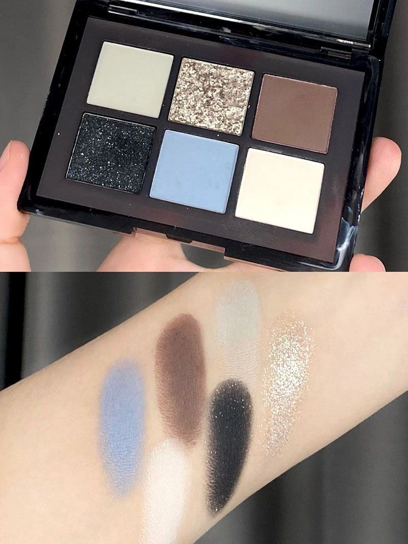 ¡Hermana fría y cansada del mundo! Black Sea Sombra de ojos de seis colores con cuentas mate, negro y azul truncado pequeño plato integral ahumado