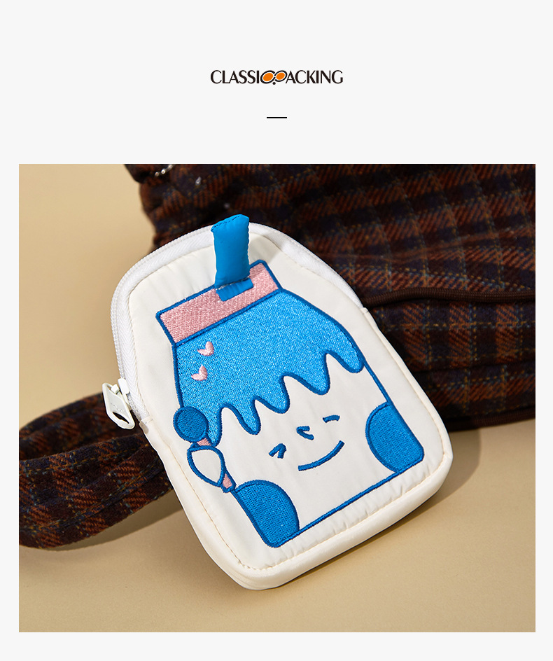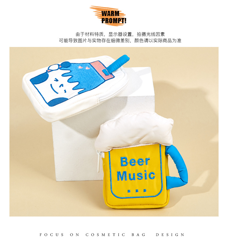 Fábrica al por mayor bolsa de almacenamiento cerveza taza leche Caja forma multifuncional moneda monedero lápiz labial bolsa de almacenamiento con logo