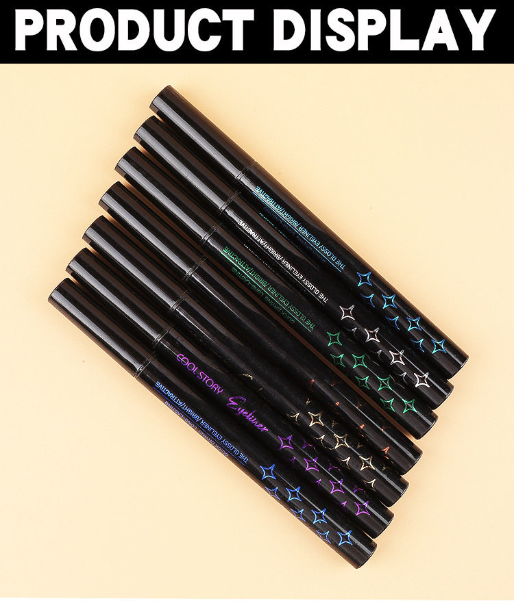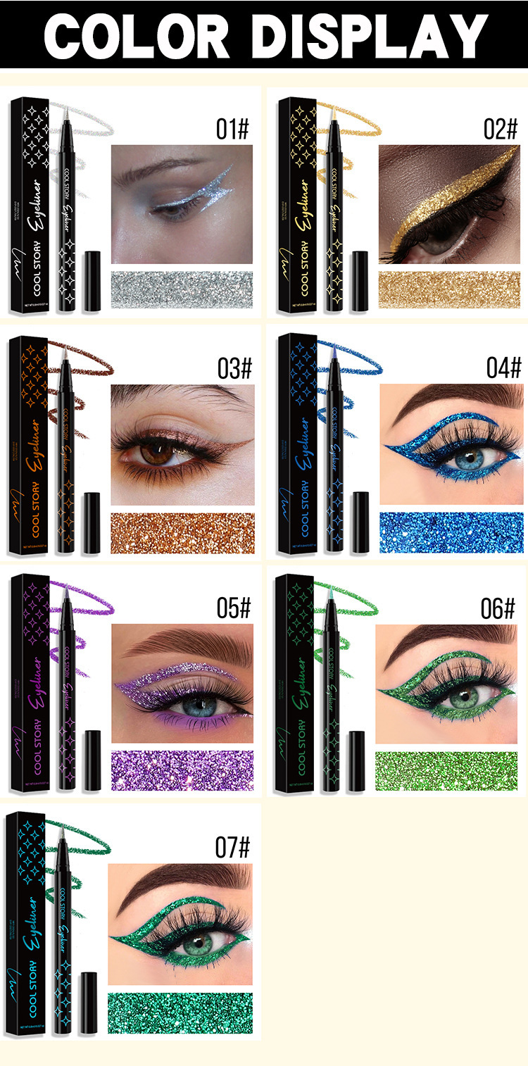 Cool story delineador de ojos líquido de alto brillo nacarado fino destello brillante bolígrafo de gusano de seda horizontal de metal de secado rápido y sudor impermeable duradero