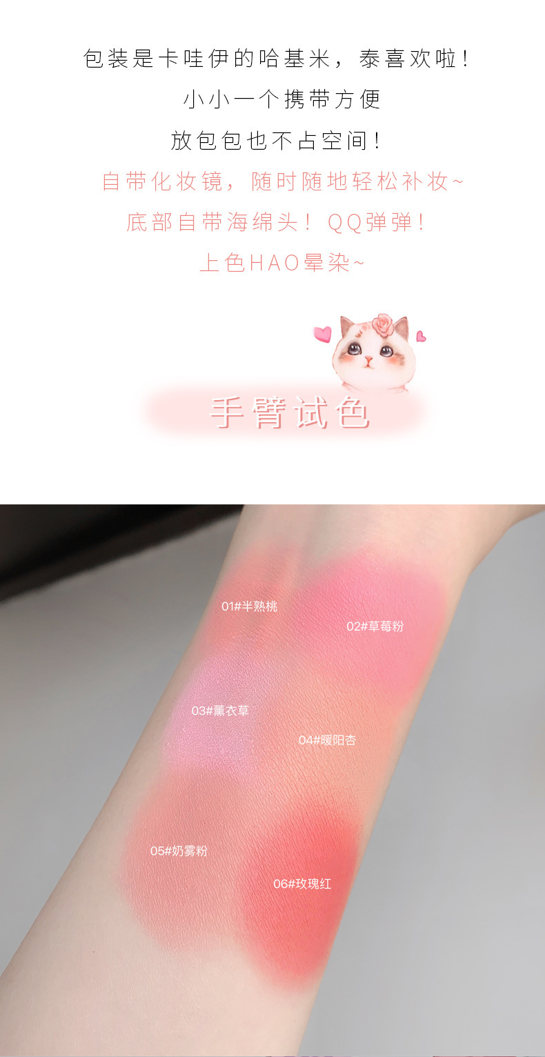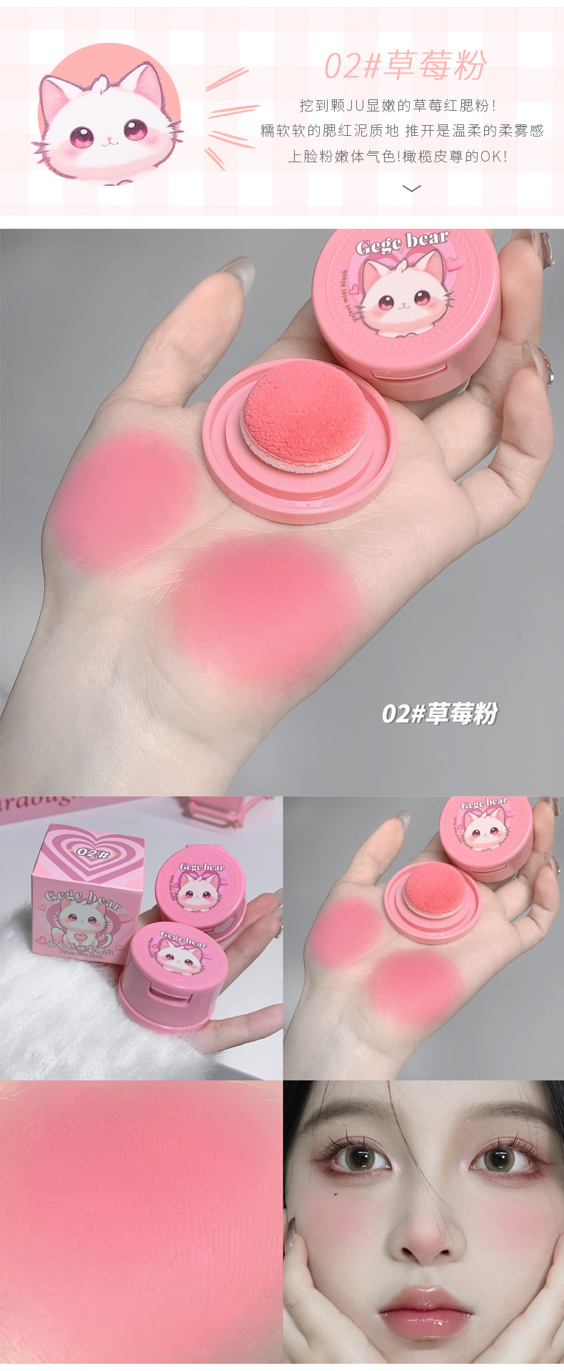 Gege bear bang, rubor de niebla suave, mejora natural, color mate mate, color hinchado, maquillaje tierno, colorete