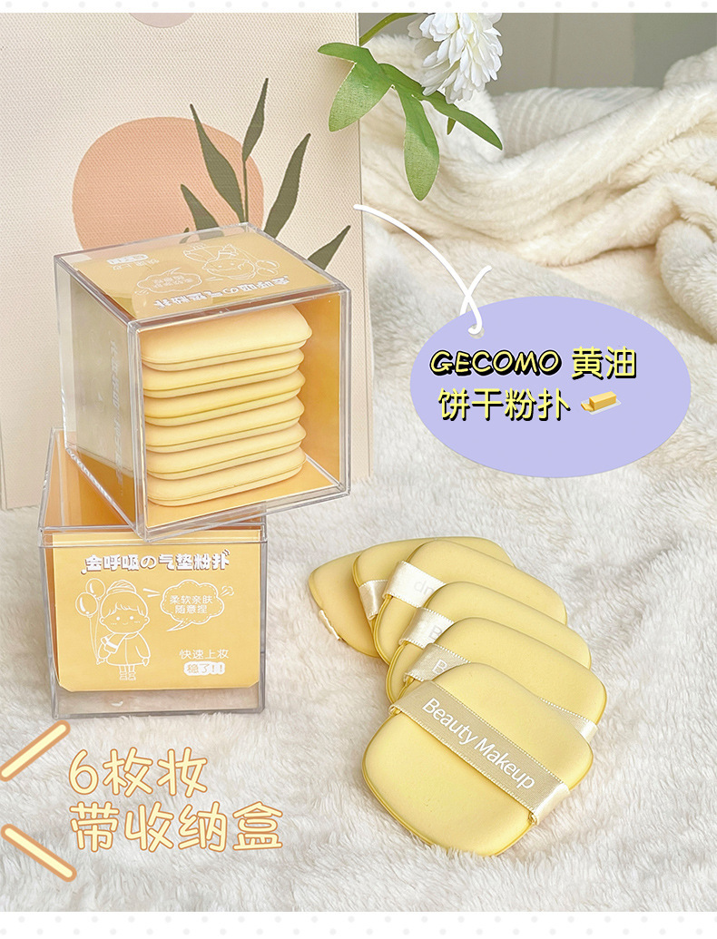 GECOMO mantequilla galleta cojín soplo de aire no come polvo esponja de maquillaje seco y húmedo huevo de belleza doble cara disponible