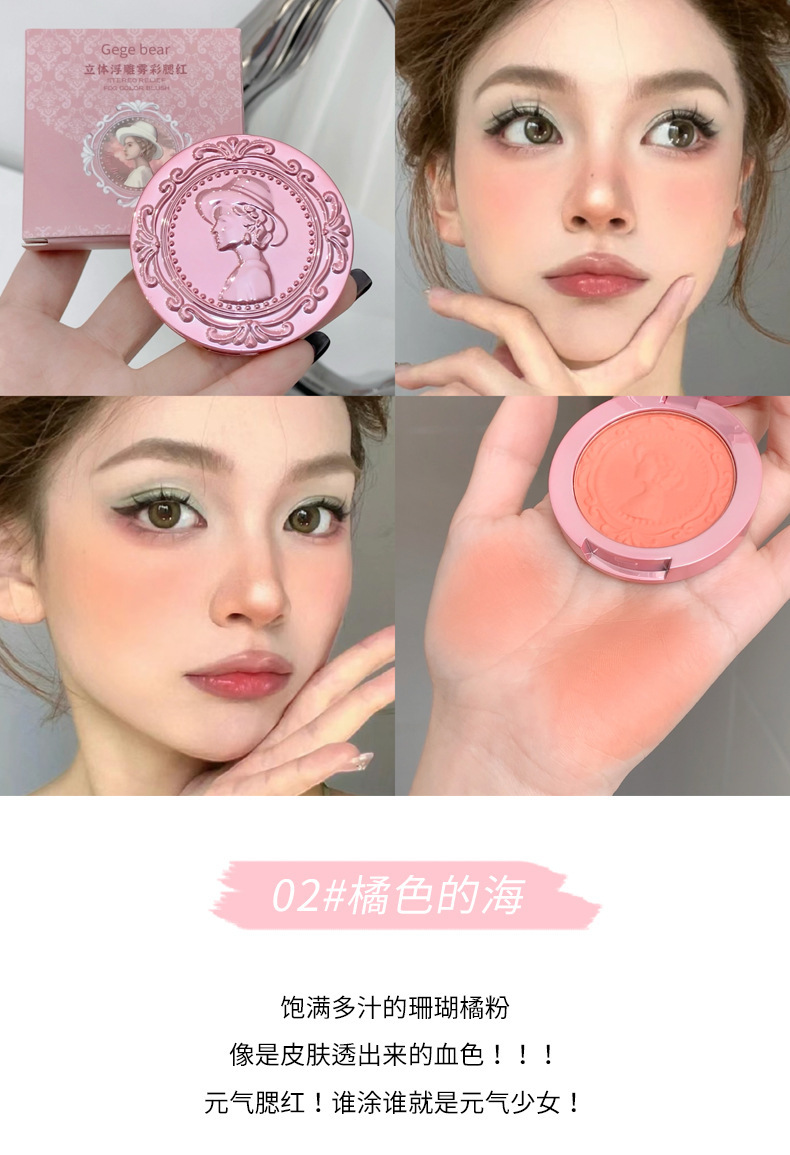 Goge osito en relieve tridimensional, rubor de color de niebla, maquillaje nude, mate natural, duradero y no fácil de volar, rubor de reparación de polvo al por mayor
