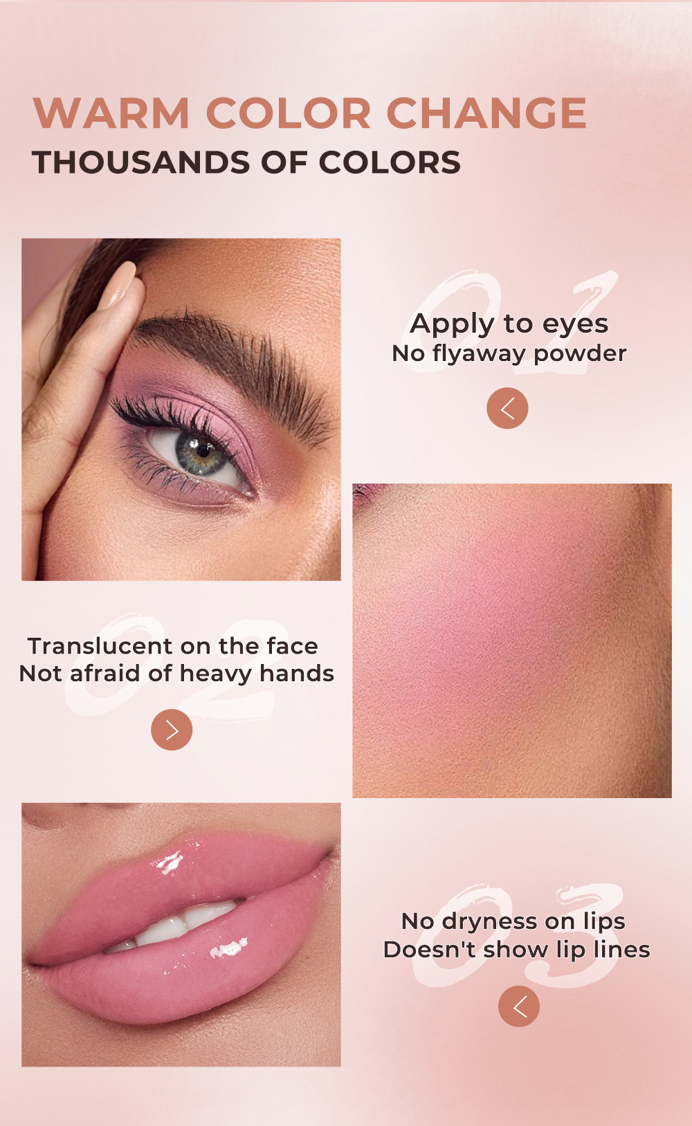 Transfronterizo Miduo cálido rubor cristal transparente que cambia de color crema de rubor de alto brillo maquillaje nude natural colorete rubor