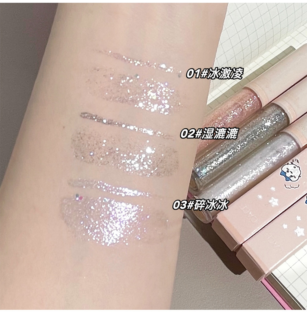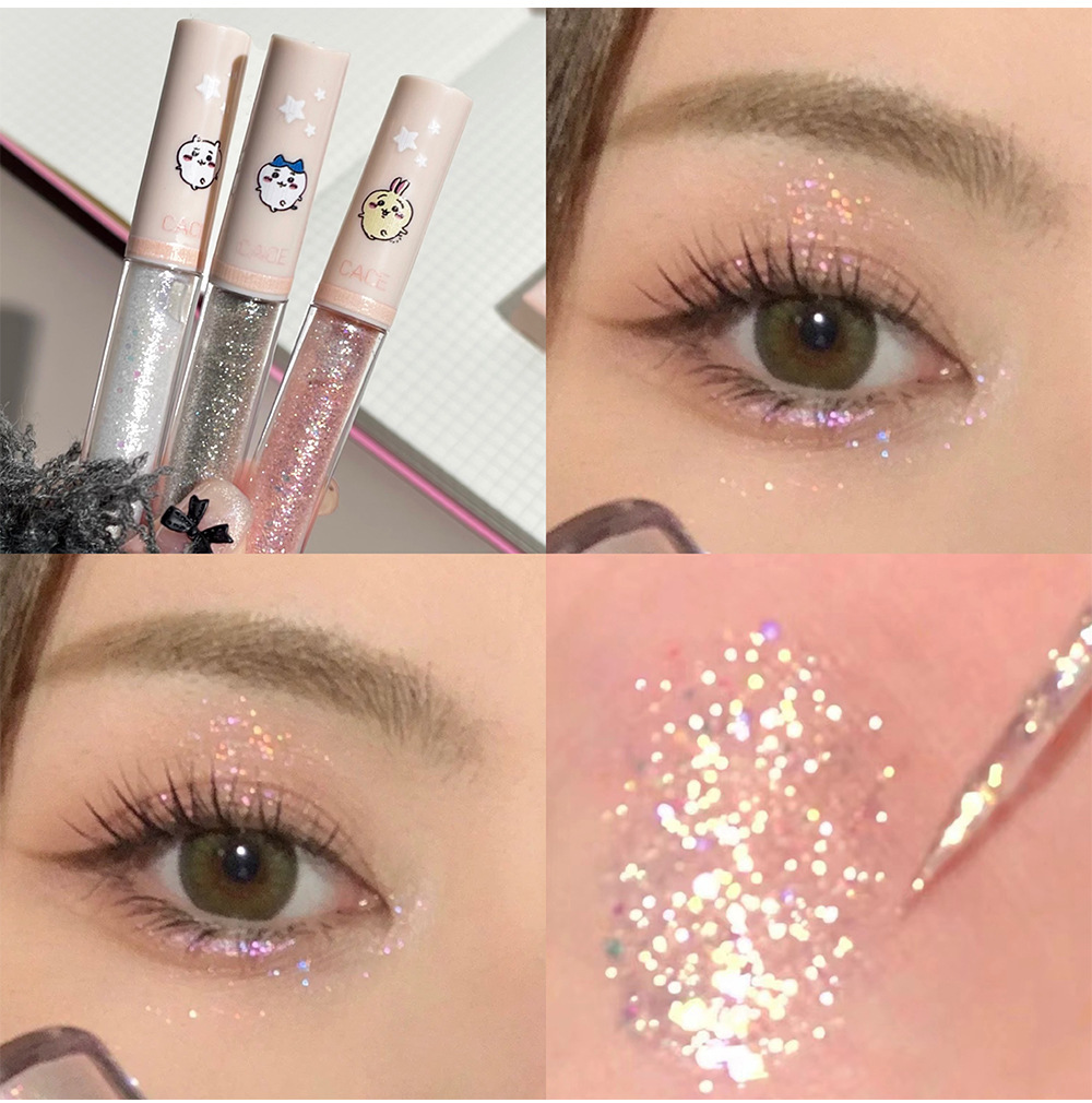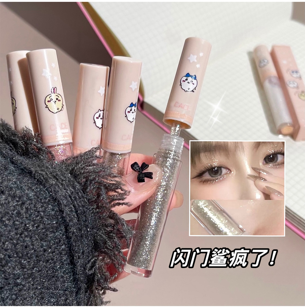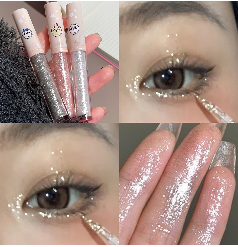 CACE Kawaii Sombra de ojos líquida fina brillante perlado diamante fino brillante brillante brillante Gusano de seda acostado líquido de sombra de ojos de alto brillo