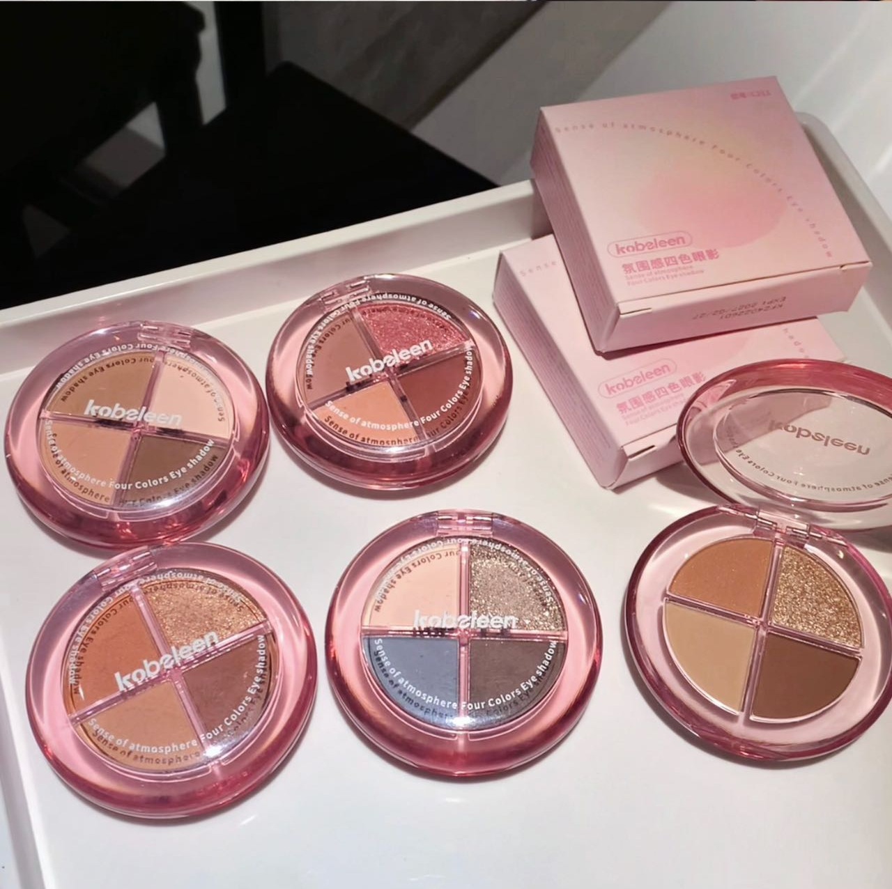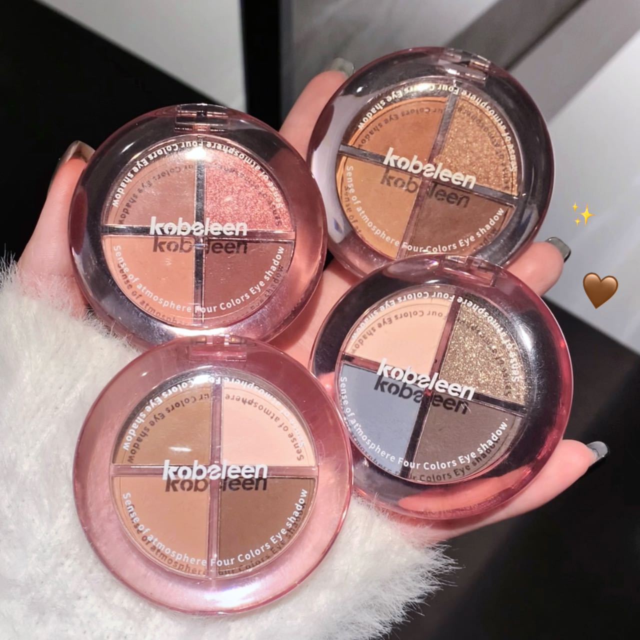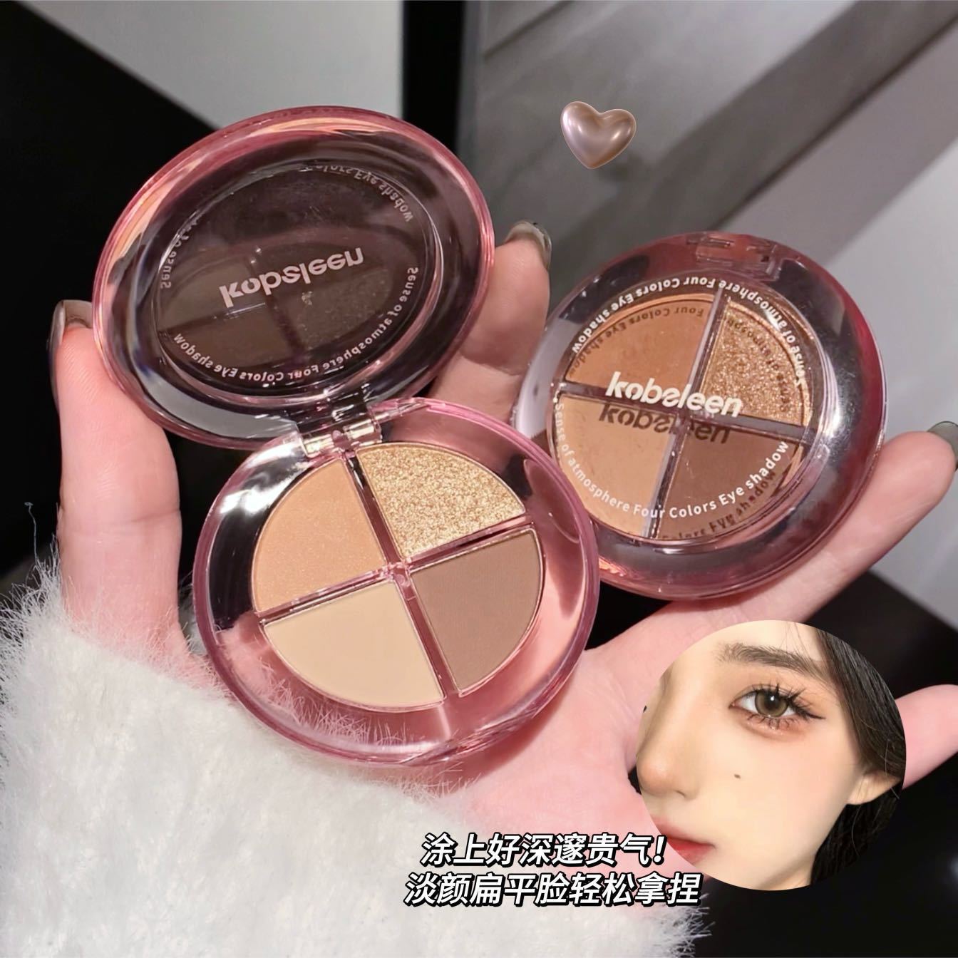 Kobeleen sentido de la atmósfera, sombra de ojos de cuatro colores, desarrollo de color delicado, baja saturación, color de la tierra, brillo, sombra de ojos sin manchas