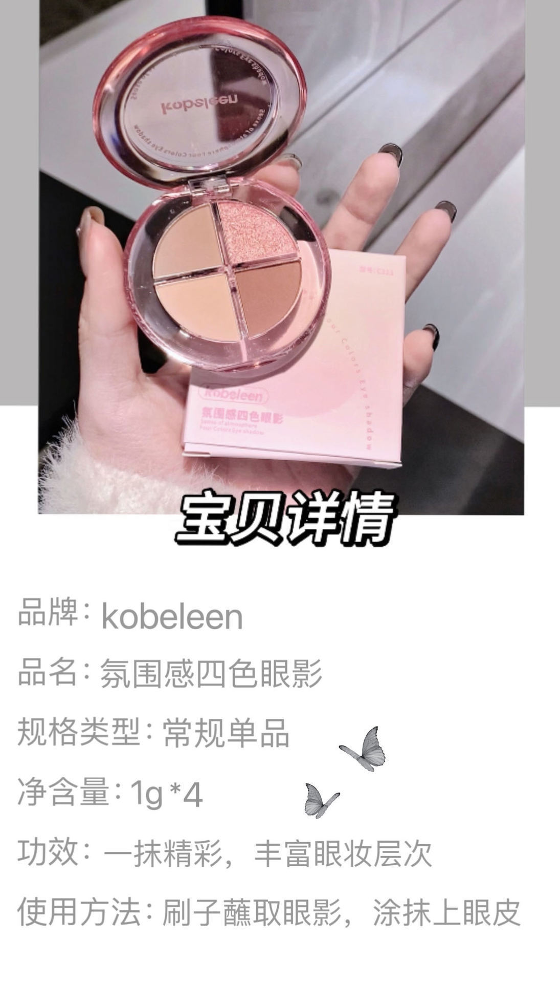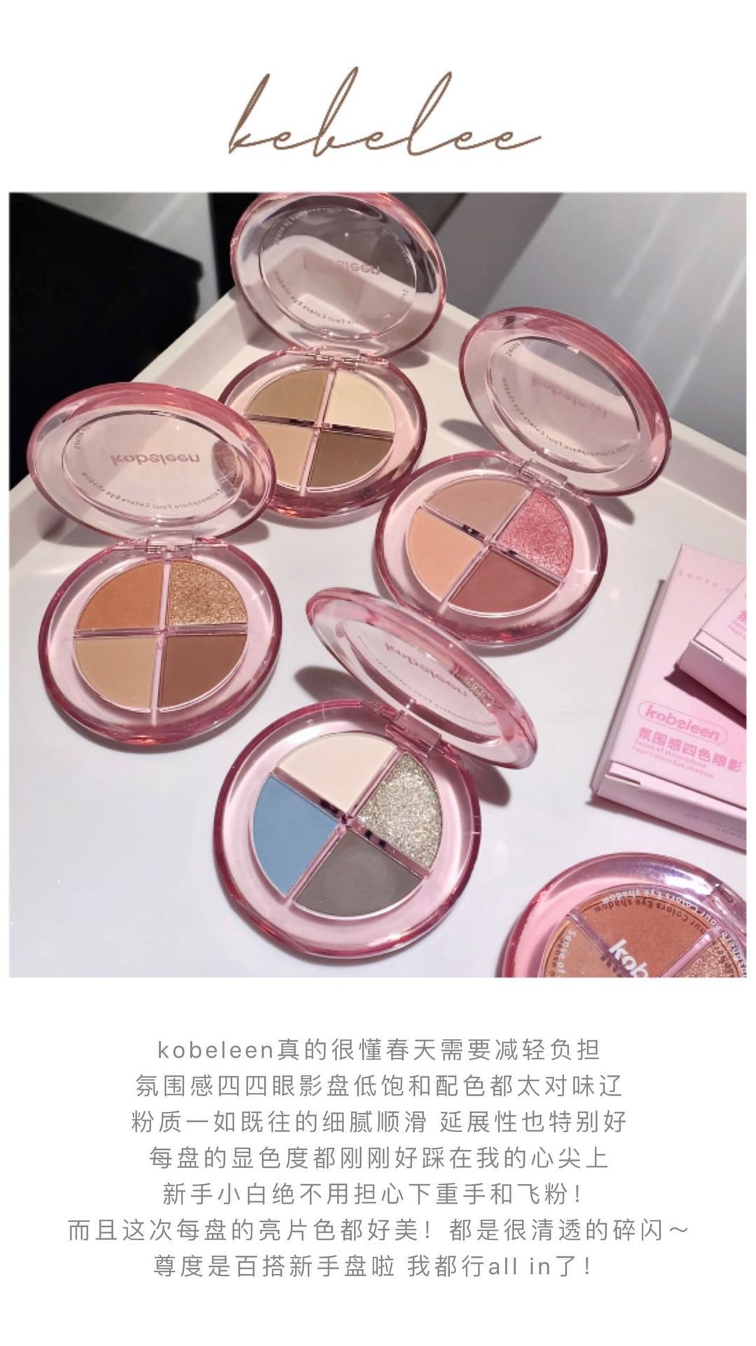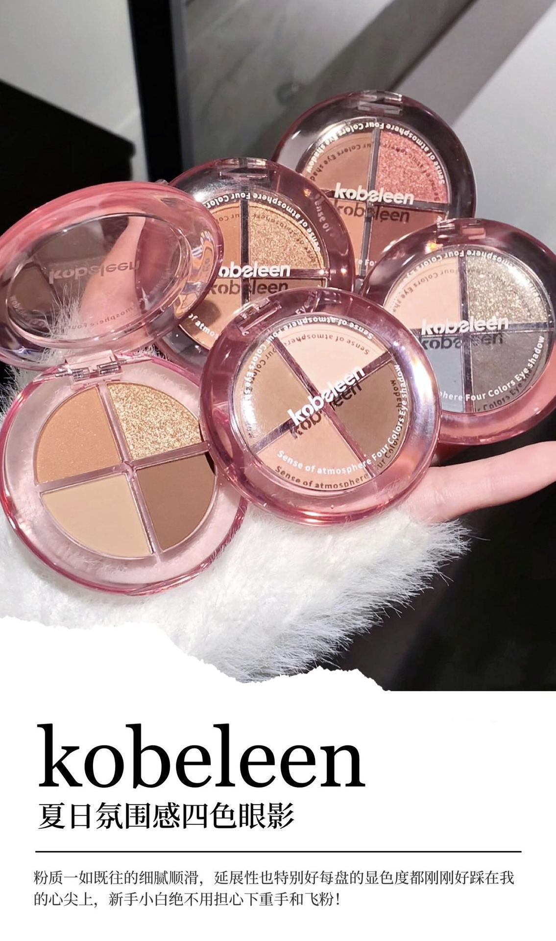 Kobeleen sentido de la atmósfera, sombra de ojos de cuatro colores, desarrollo de color delicado, baja saturación, color de la tierra, brillo, sombra de ojos sin manchas