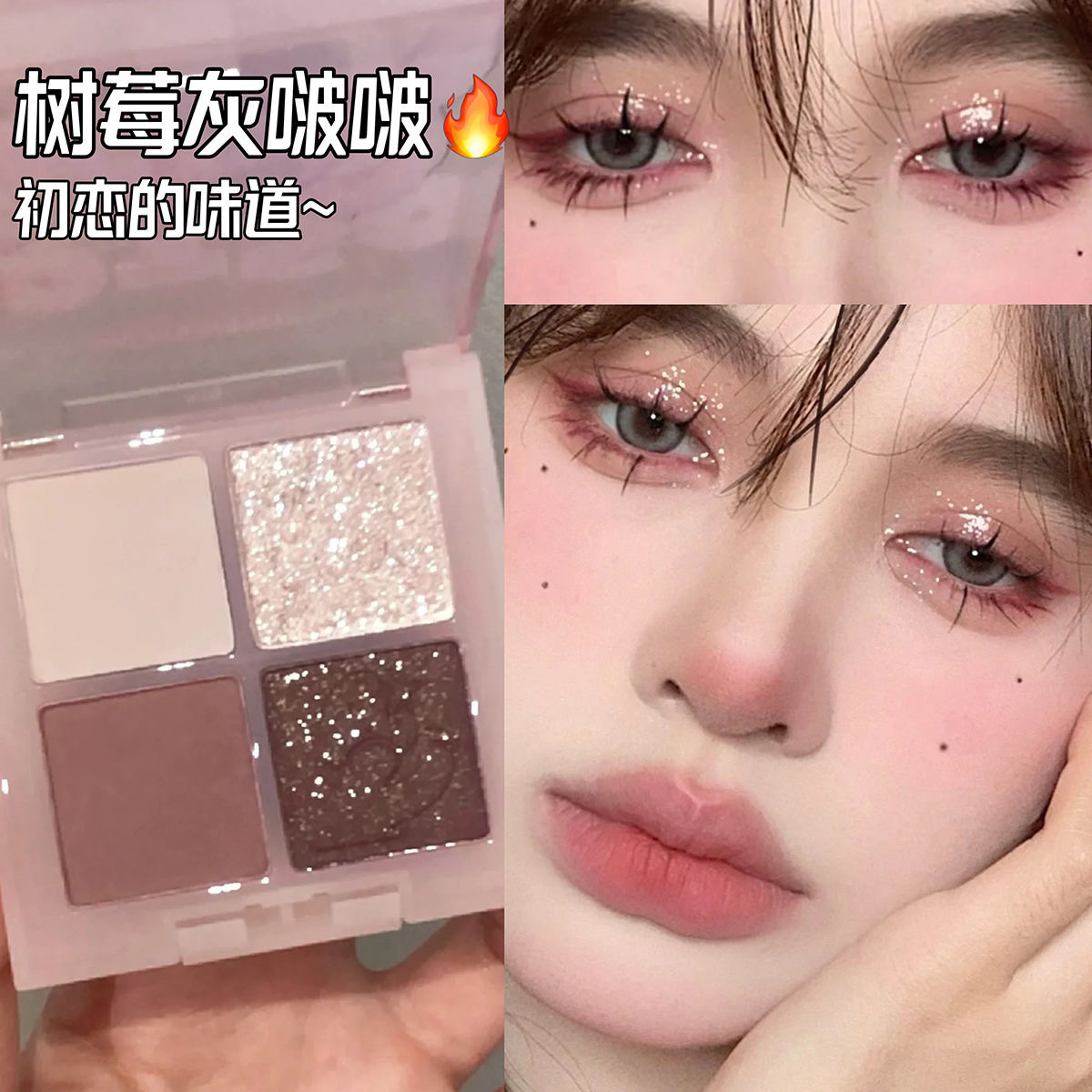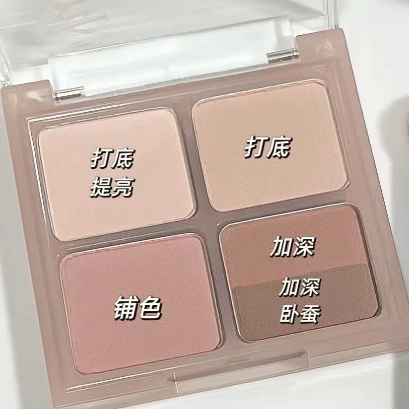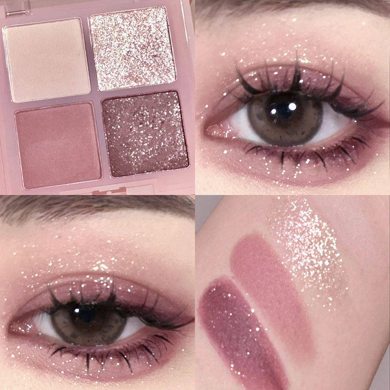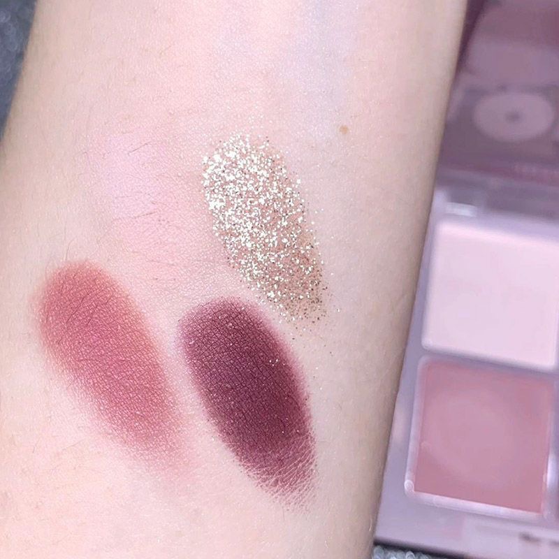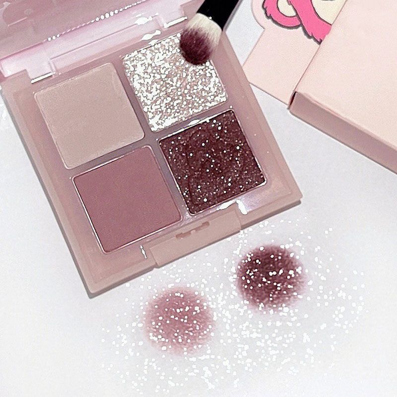 Frambuesa dulce de baja saturación ~ Paleta de sombra de ojos de cuatro colores Strawberry Bear Viajando diario Brownie gris té marrón púrpura