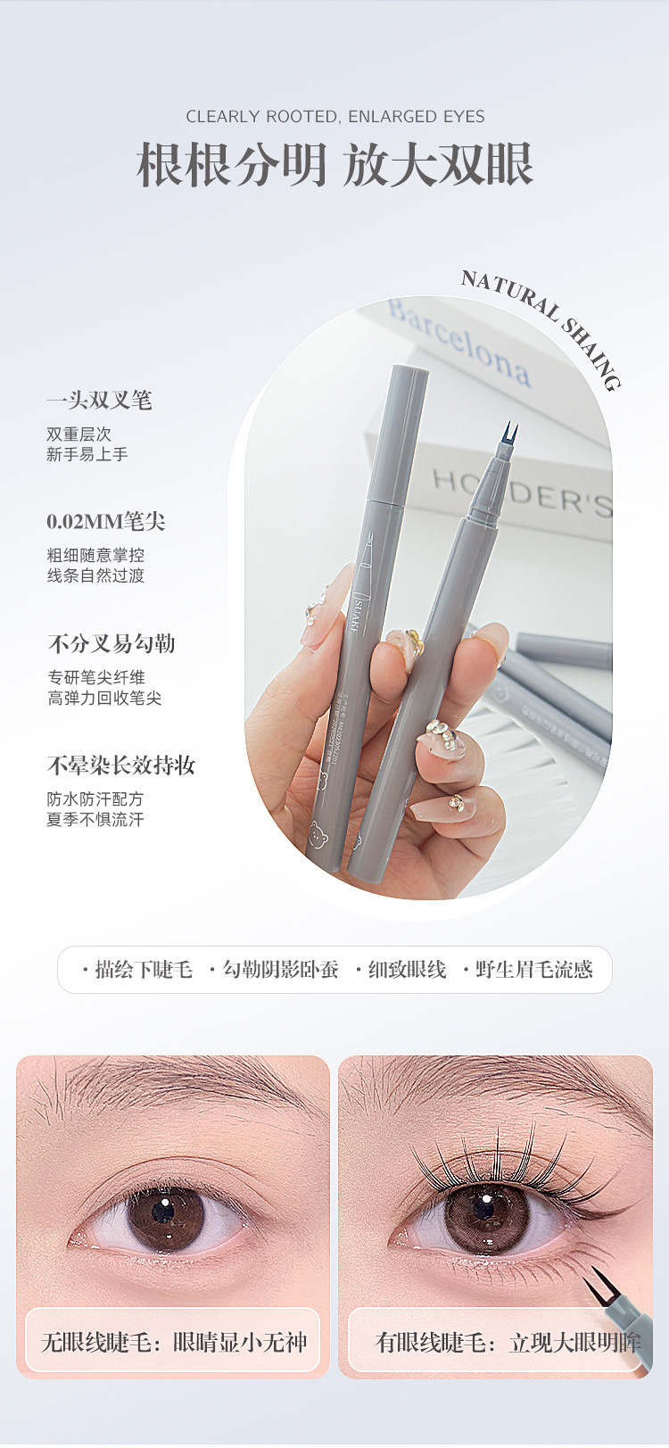 SUAKE lápiz de pestañas delineador de Ojos de dos garras lápiz de cejas delineador de Ojos de dos garras pluma de 2 garras tenedor pluma de pestañas inferior delineador de ojos transfronterizo