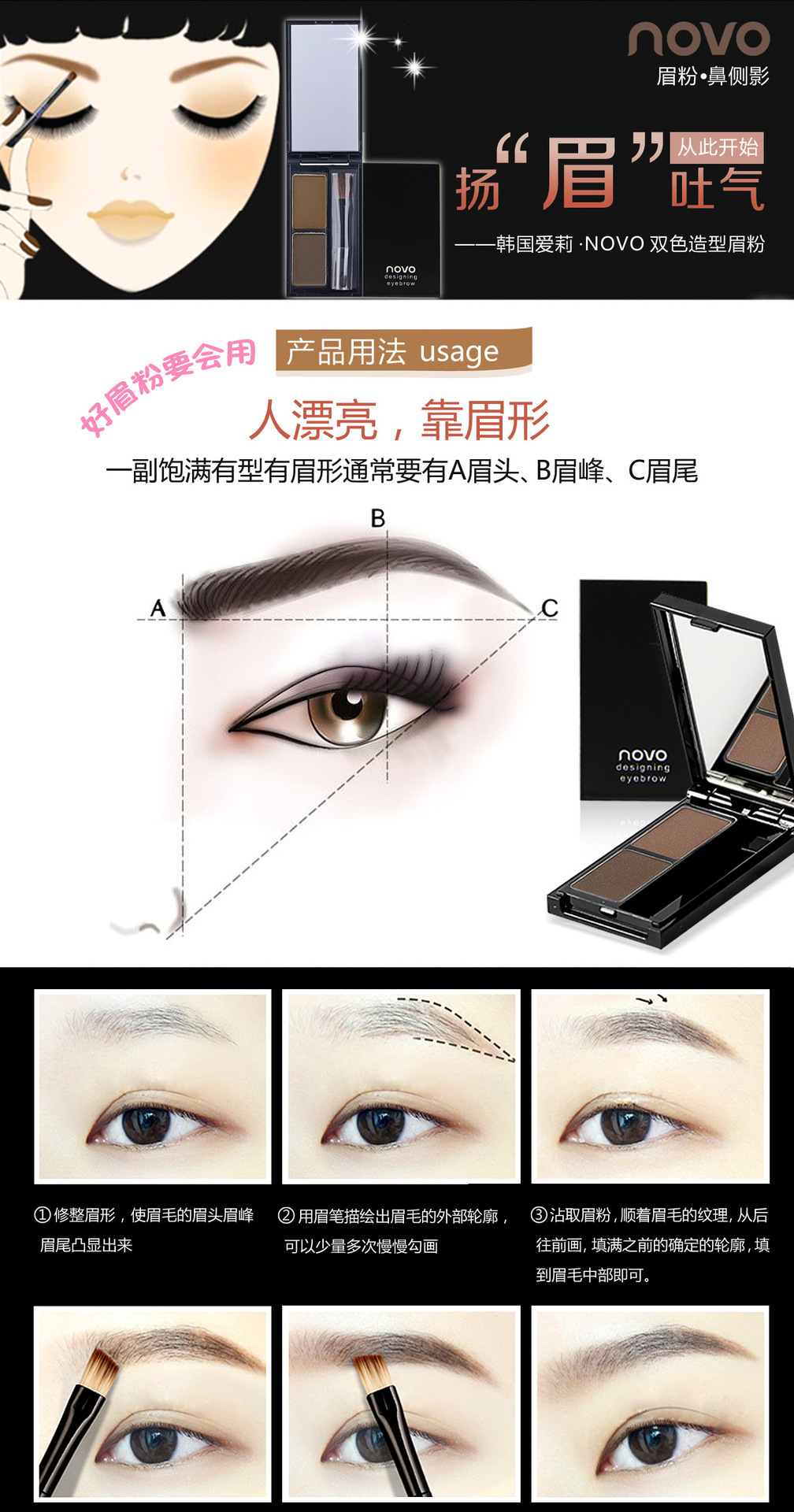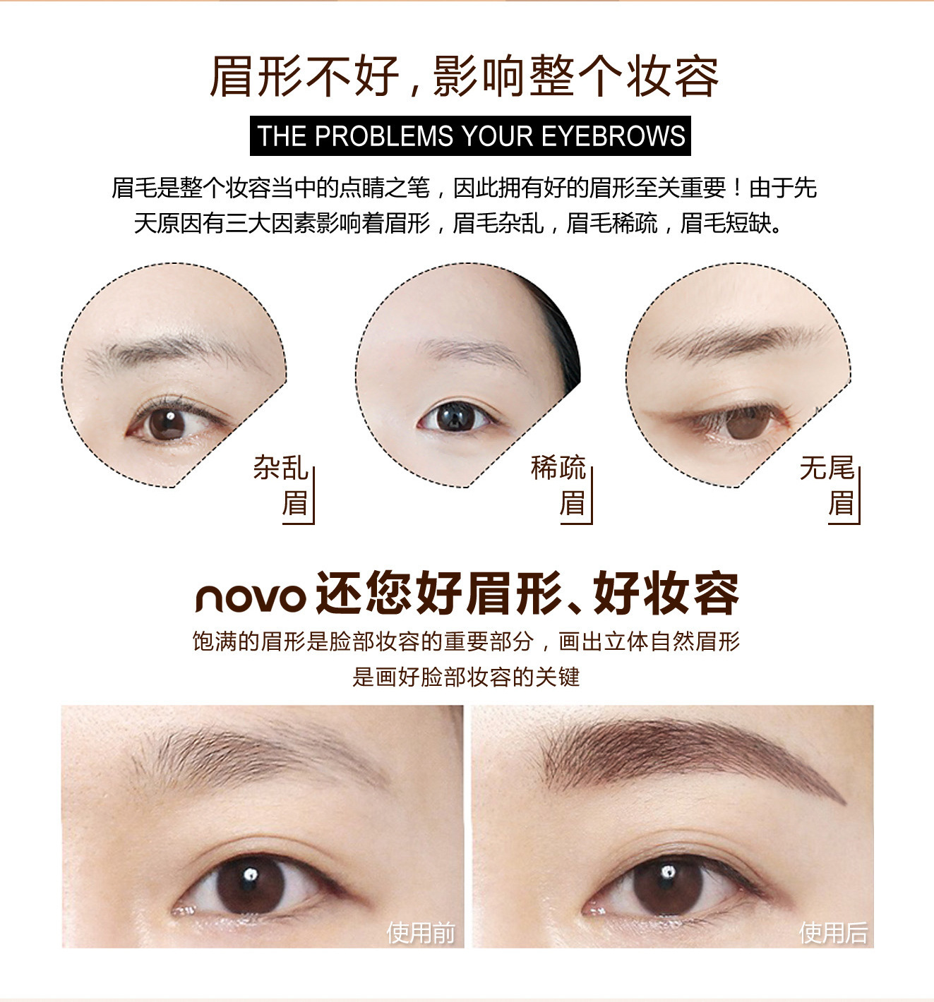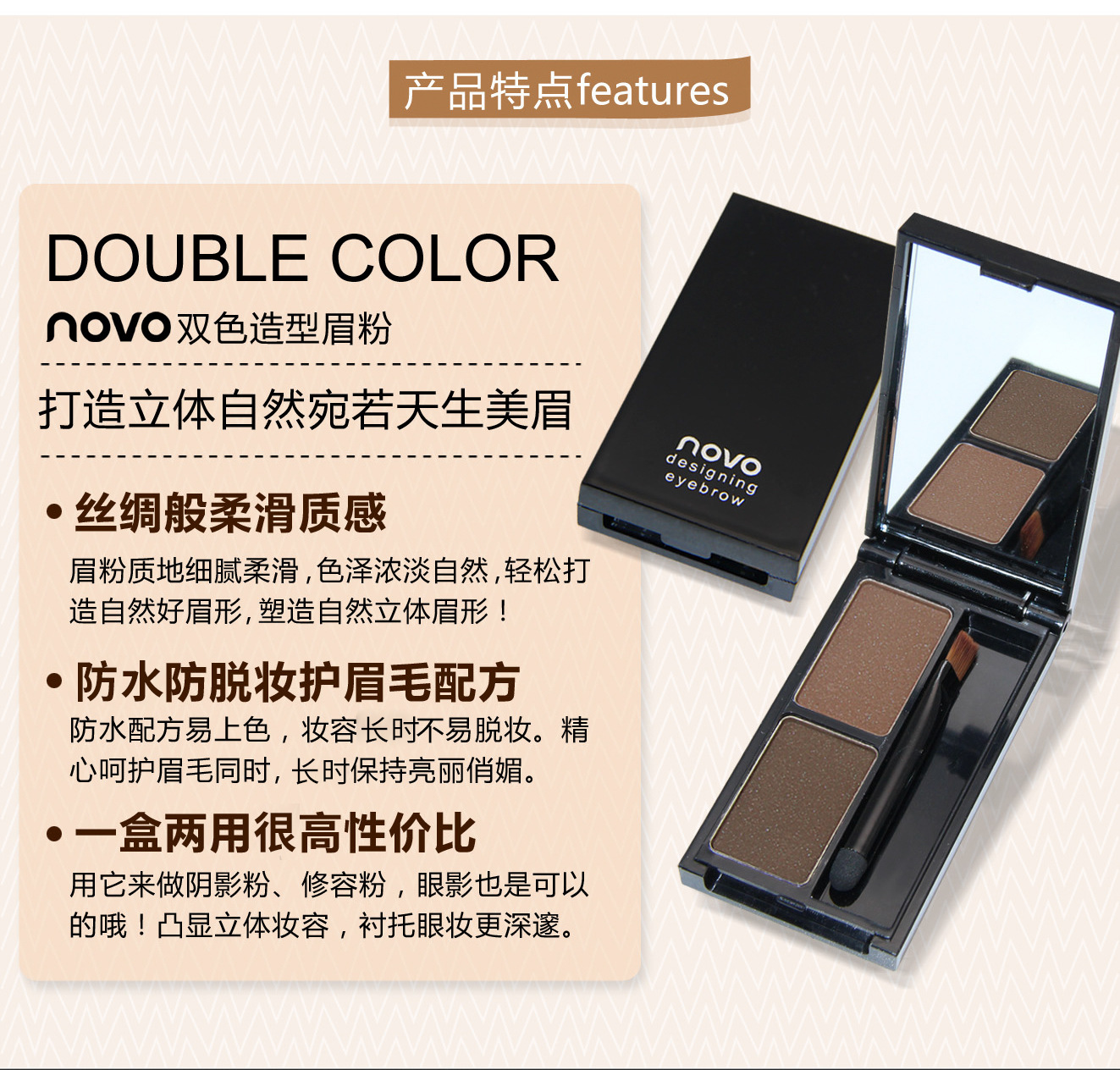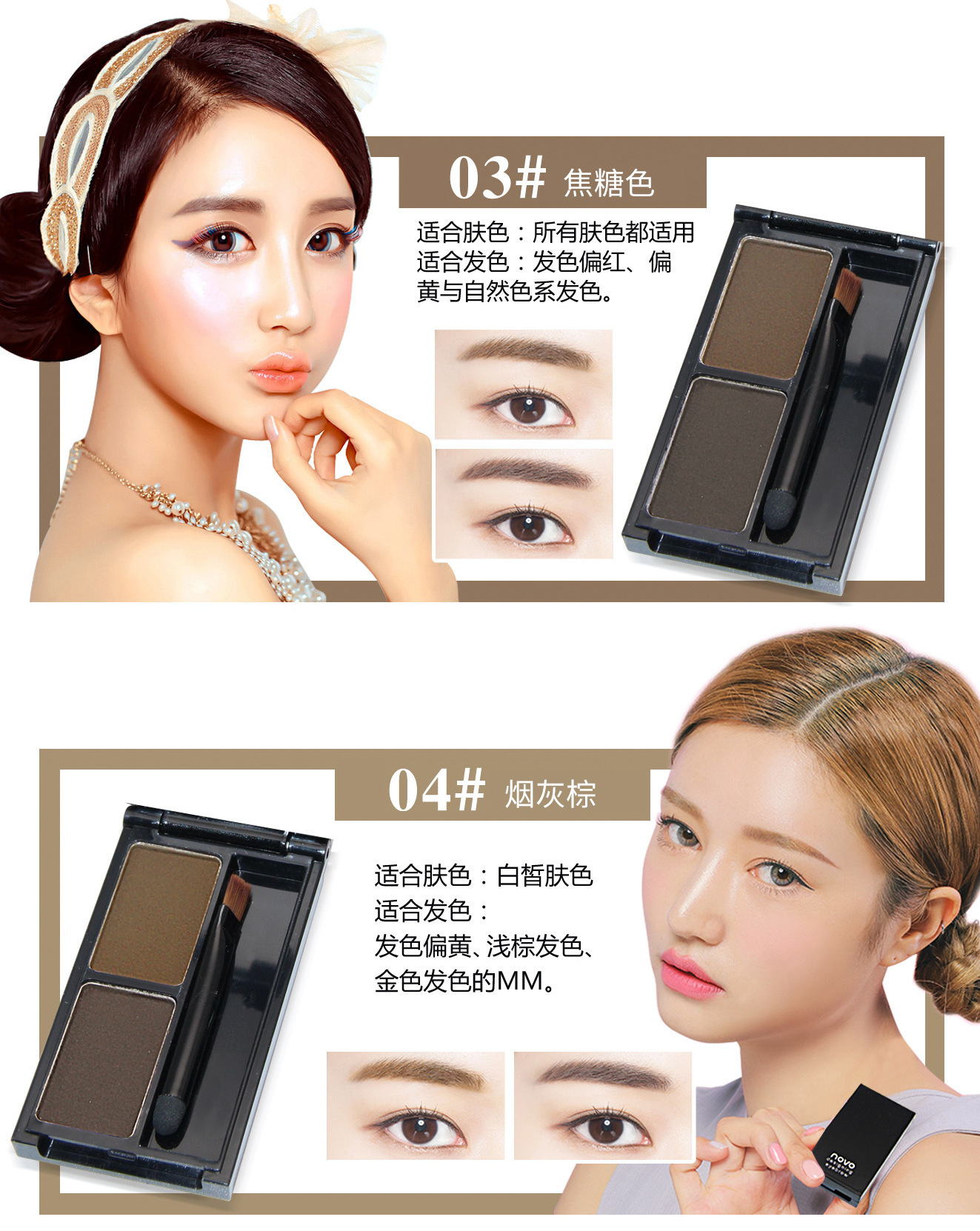 Maquillaje NOVO natural de dos colores Placa de polvo de cejas Placa de reparación tridimensional natural polvo de sombra de nariz impermeable a prueba de sudor de larga duración no floreciente