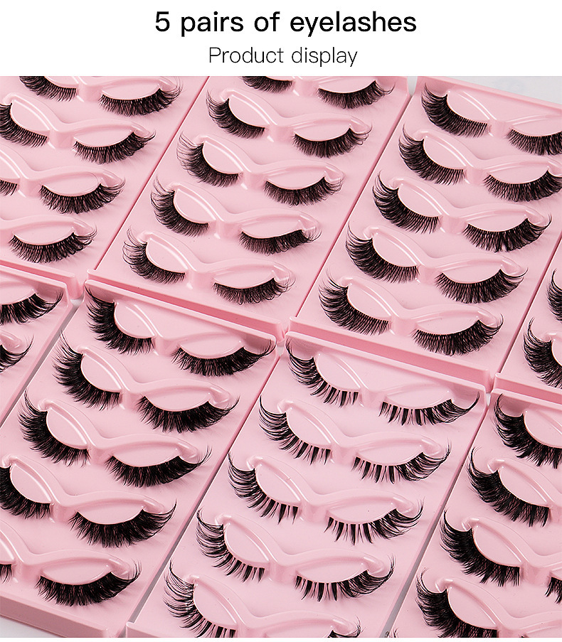 Cruzar la frontera caliente 5 pares de ojo de gato pestañas postizas naturales gruesas pestañas rizadas simulación Fox pestañas al por mayor