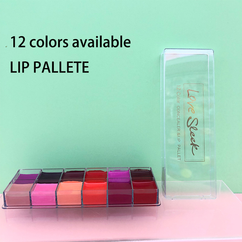 Paleta de lápiz labial de 12 colores, base, bálsamo labial hidratante, paleta de brillo labial, base, corrector, paleta de lápiz labial