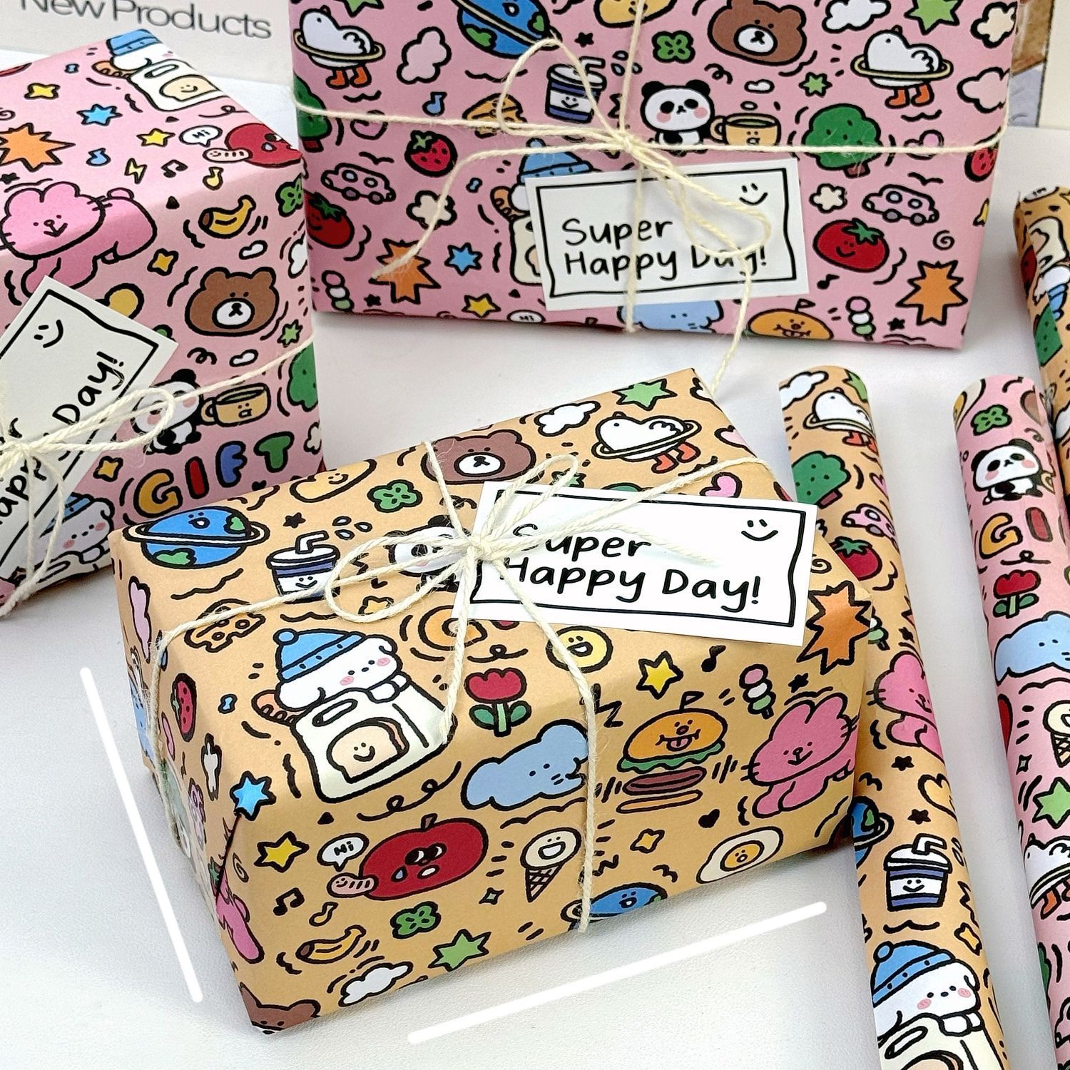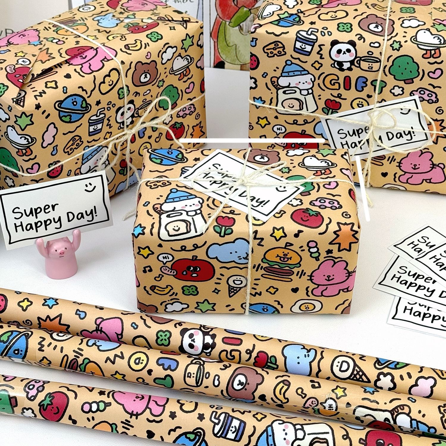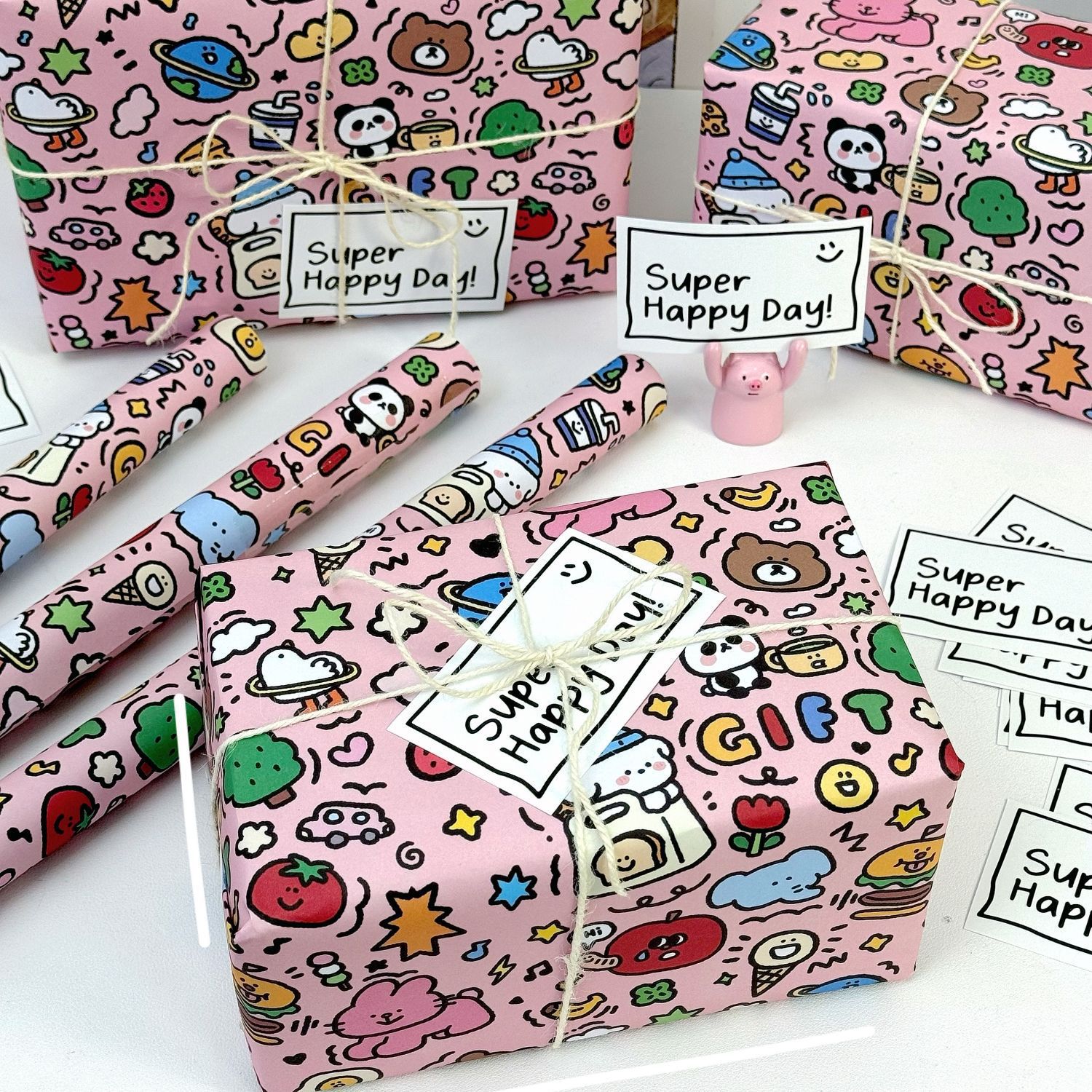 Lindo papel de regalo de graffiti Navidad hoja grande ins dibujos animados regalo de cumpleaños embalaje caja de regalo bolsa de regalo papel de libro