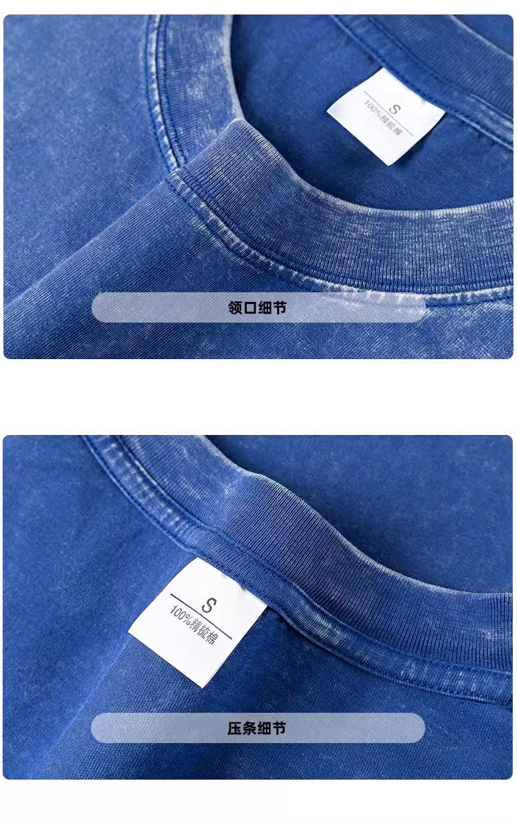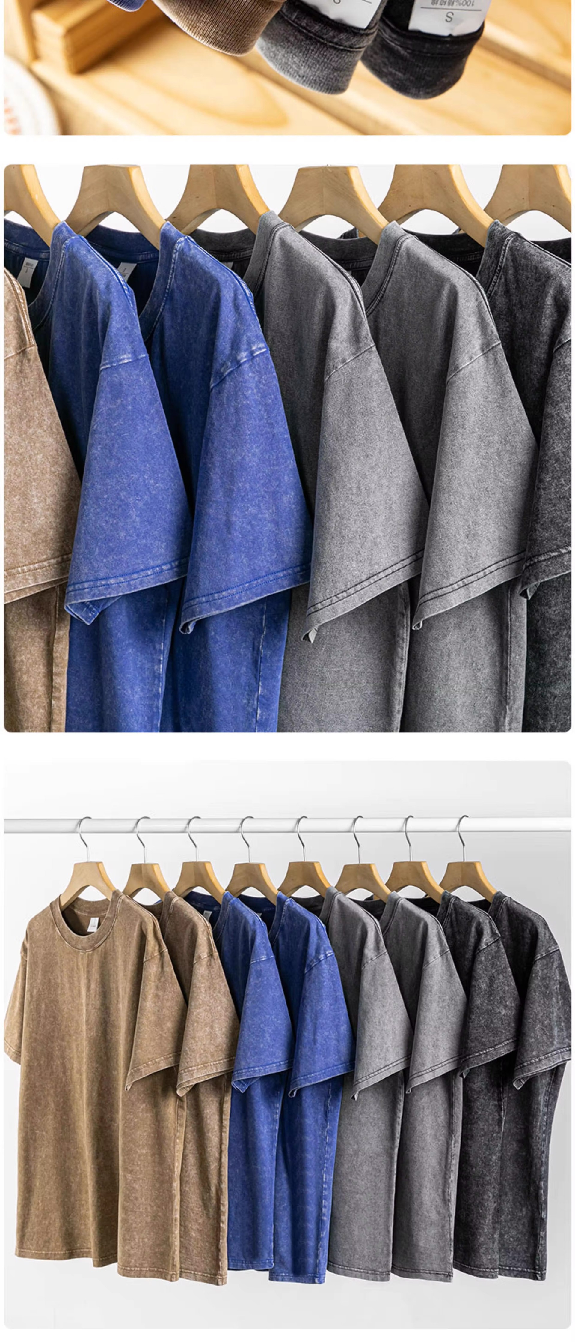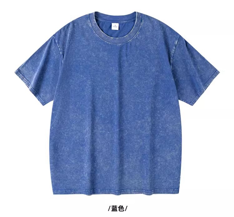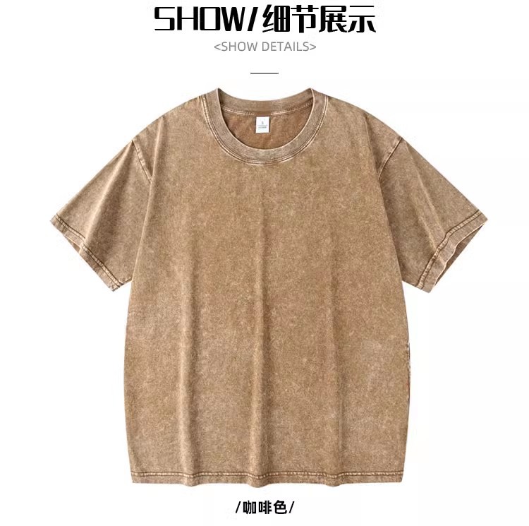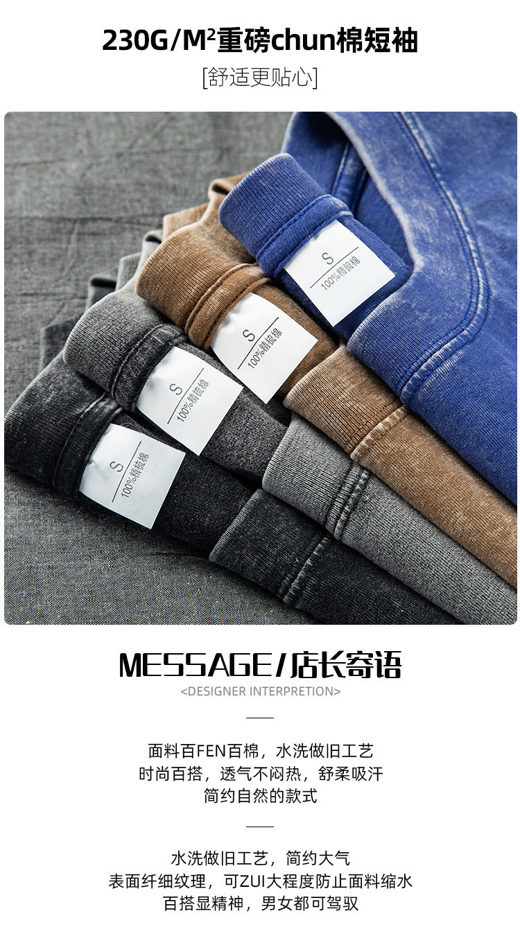 ¡Lavado y desgastado! 230g de algodón pesado de manga corta Camiseta de hombres y mujeres de todo fósforo de verano de color sólido simple camiseta suelta