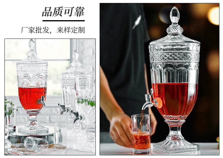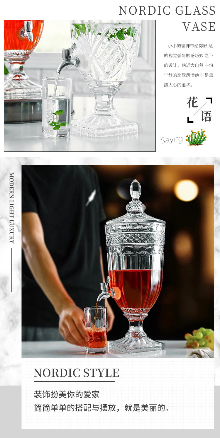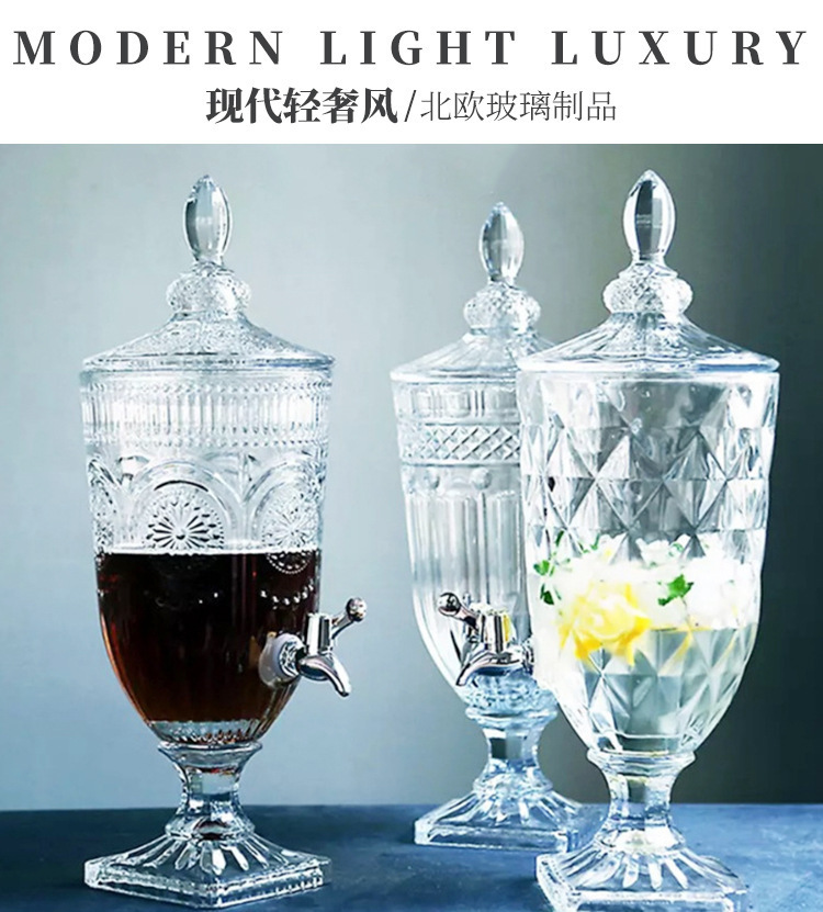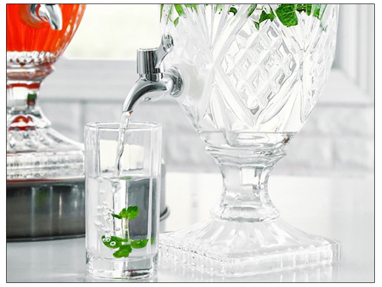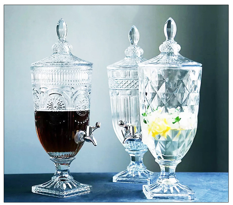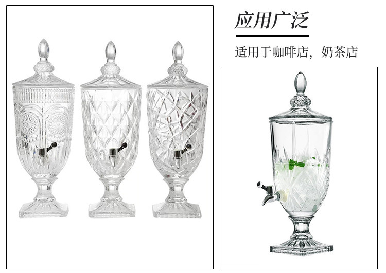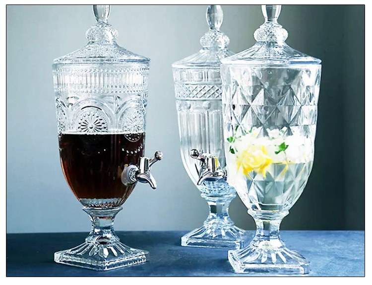 Jarra de jugo con relieve de estilo europeo, con boquilla y tapa, cristal grueso, gran capacidad, jarra de agua fría de alta gama