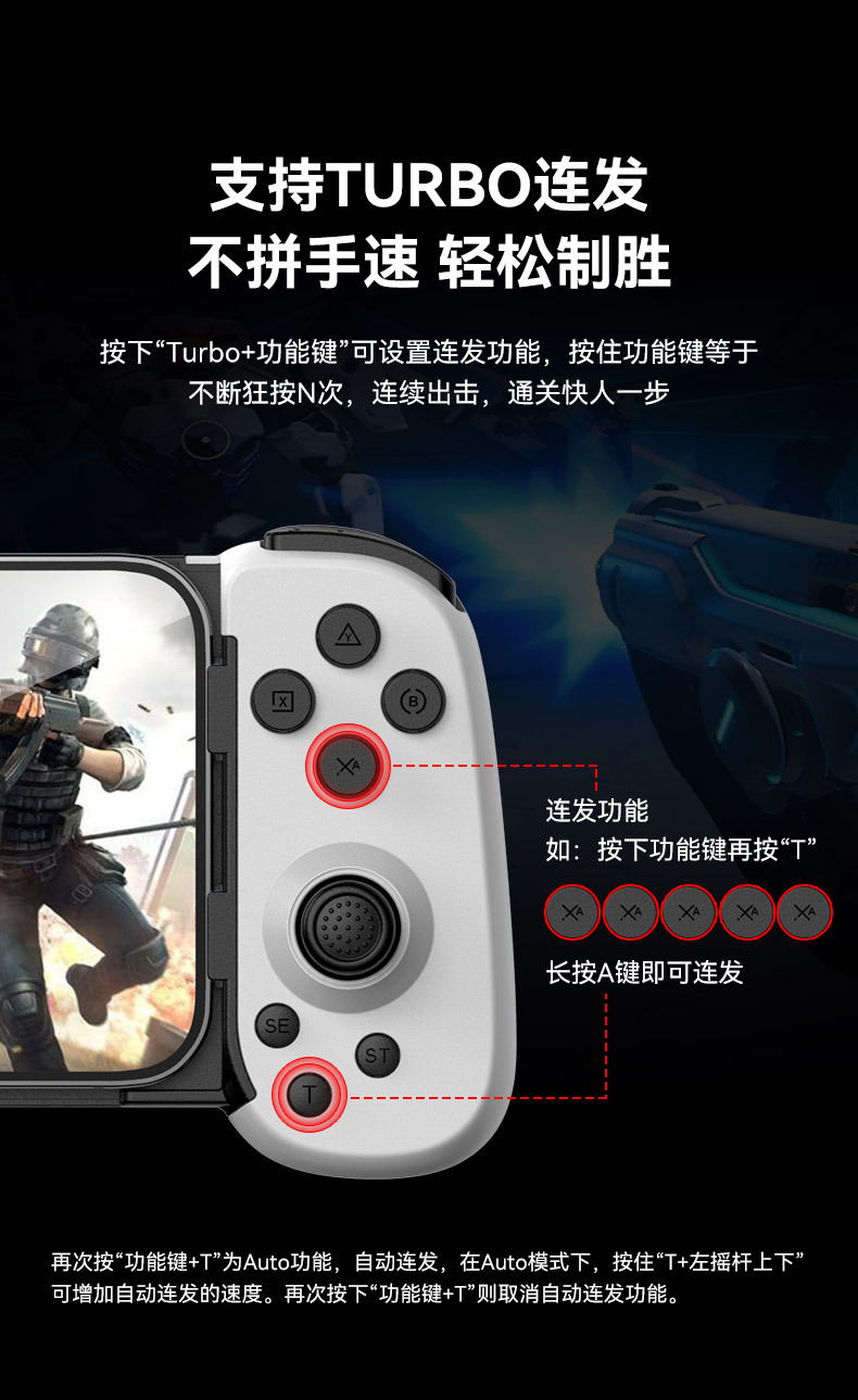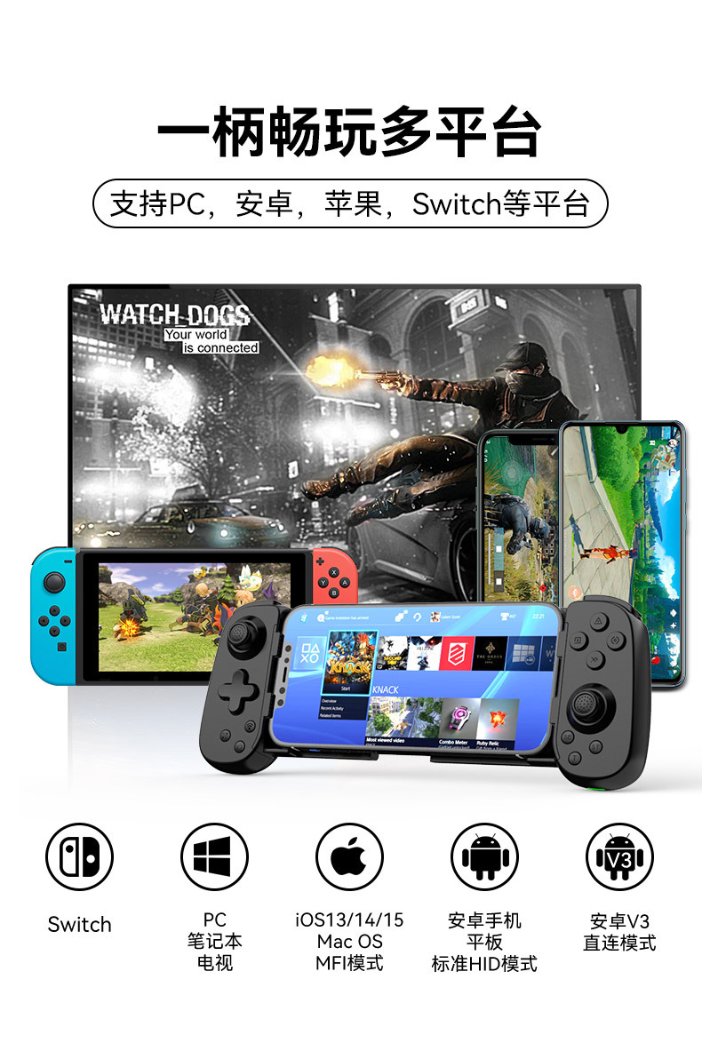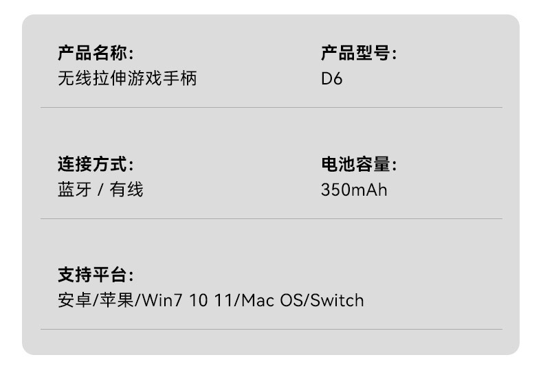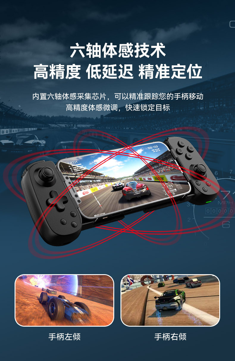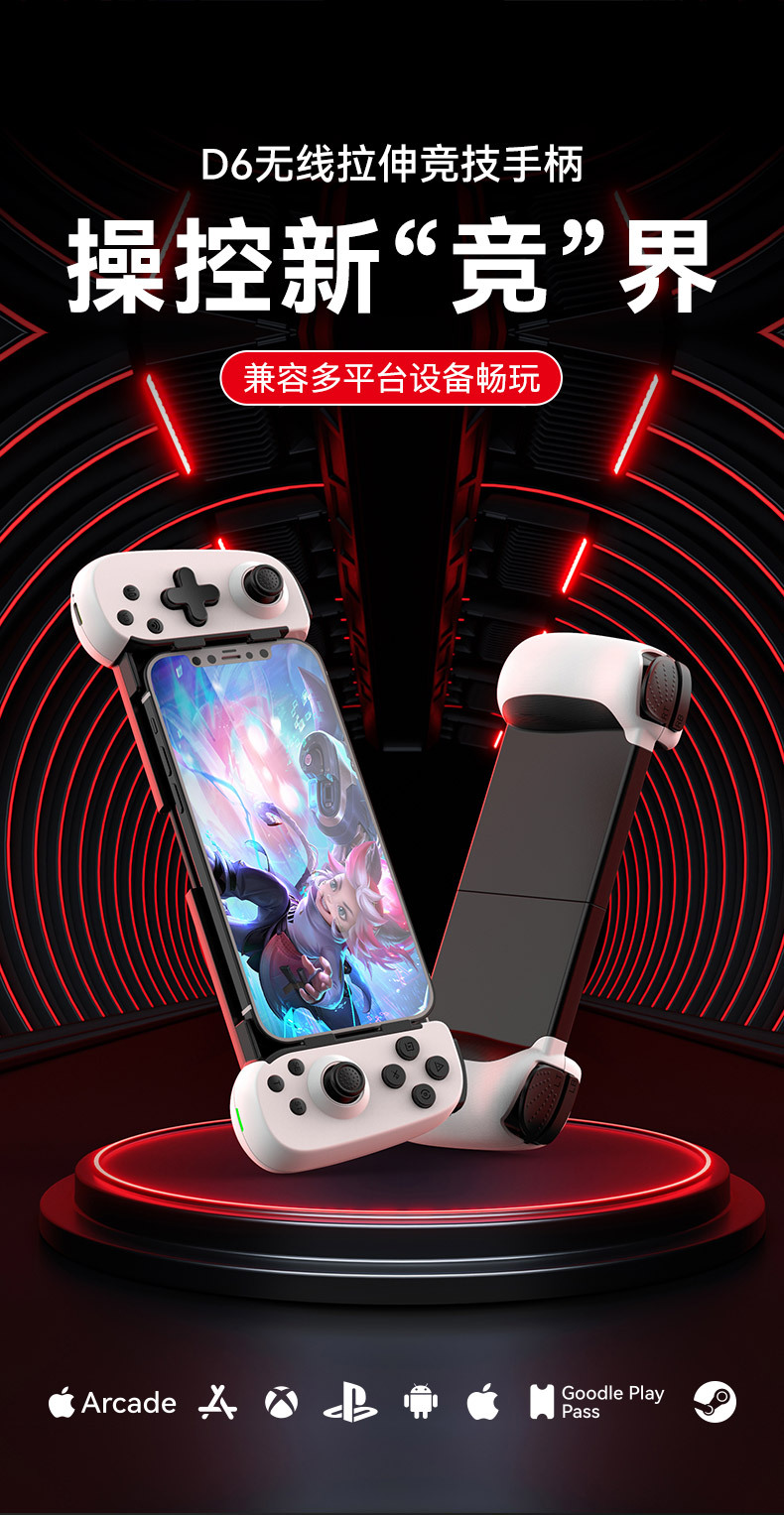 Nuevo teléfono móvil D6 mango de juego estirado doble Hall somatosensorial inalámbrico Bluetooth Switch NS Android ios computadora