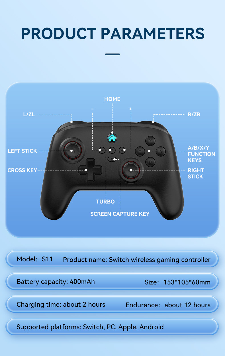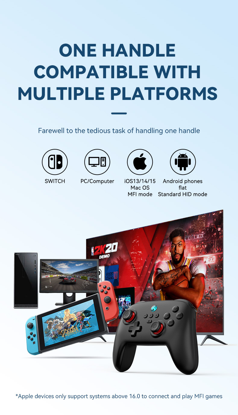 Interruptor nuevo mango de juego Bluetooth inalámbrico con vibración de despertador de seis ejes sentido del cuerpo pelo continuo manija del teléfono móvil de la computadora