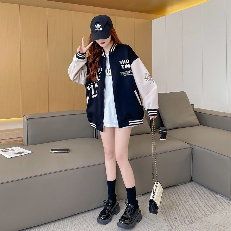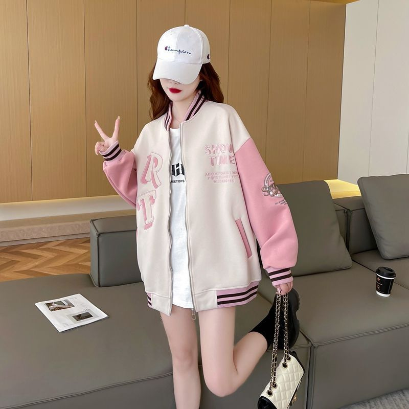 Abrigo de otoño para niñas 2024 nuevos niños de mediana edad, primavera, otoño e invierno, uniforme de béisbol, versión para estudiantes, chaqueta de punto con cremallera, marea