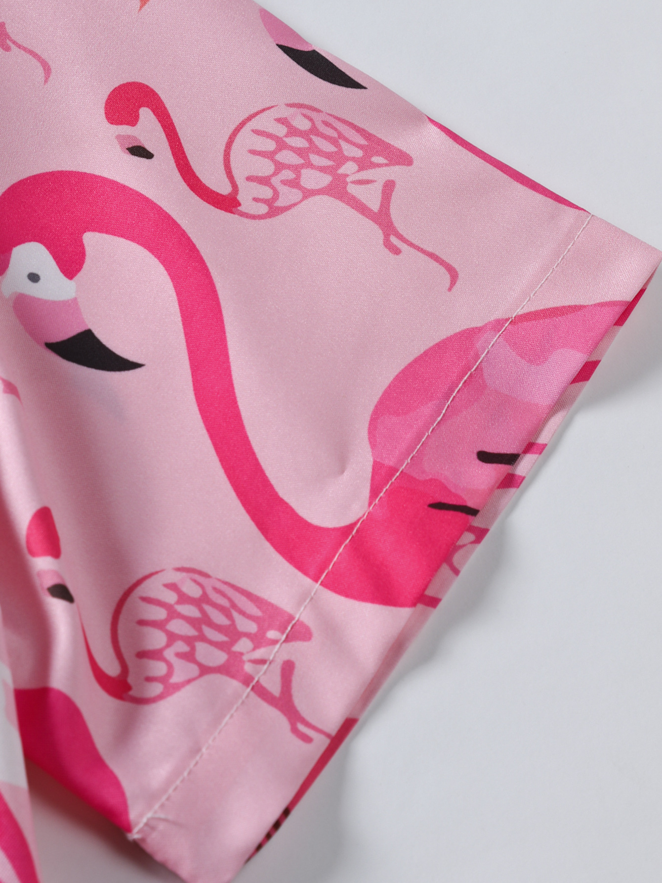 Camisa de venta caliente de nuevo estilo para hombres transfronterizos Camisa de manga corta casual de temperamento de gama alta con estampado digital 3D flamenco rosa