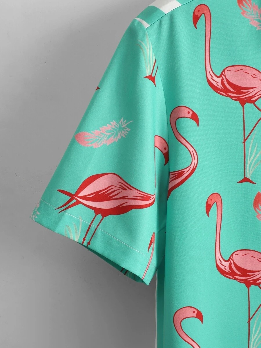 Grulla de corona roja contraste color rayas impresión digital 3D Xiyin venta caliente camisa de verano pantalones cortos conjunto vacaciones en la playa