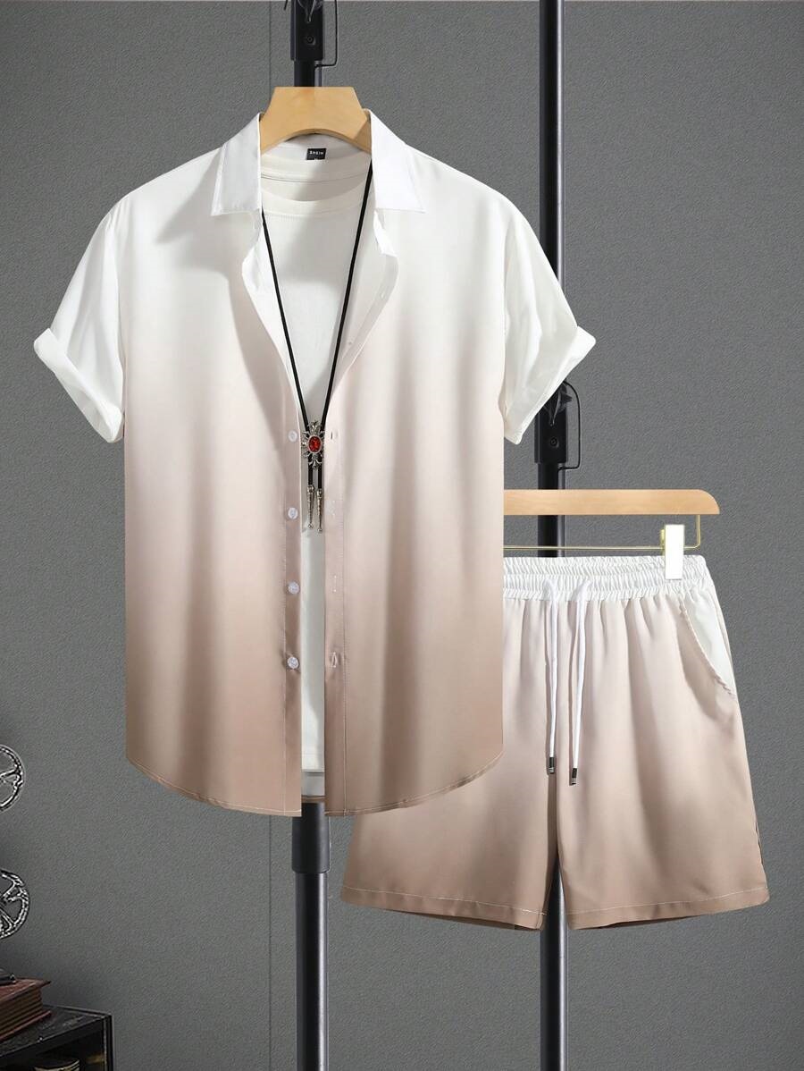 Venta caliente color degradado impresión 3D spot transfronterizo Xiyin verano hawaii vacaciones camisa pantalones cortos conjunto 2 piezas