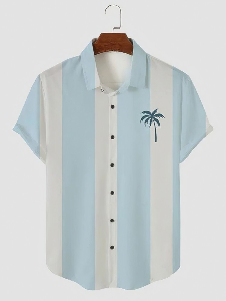 Estación independiente transfronteriza europea y americana nueva camisa para hombre impresión digital 3D Hawaii blusa casual de manga corta a rayas anchas