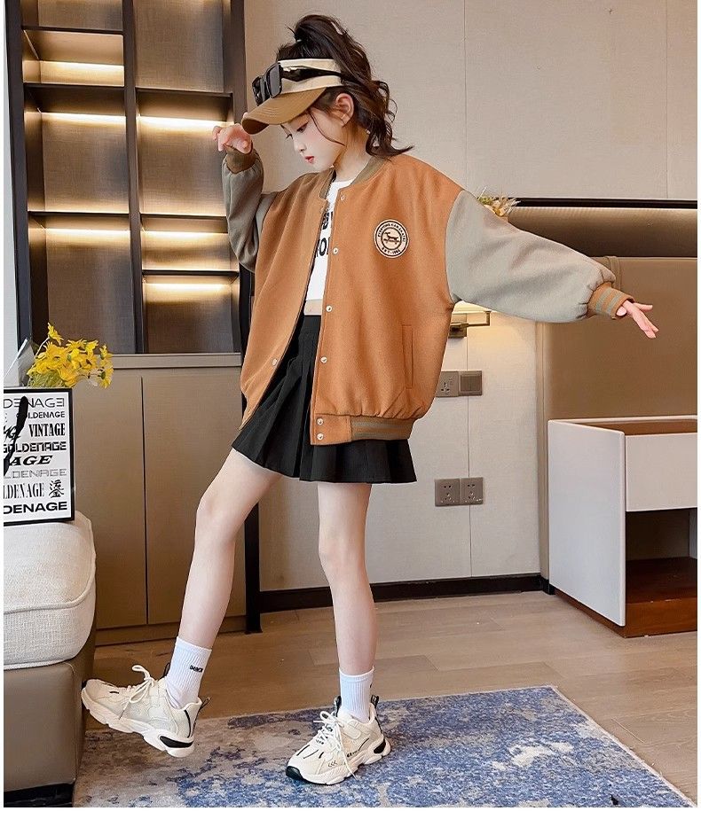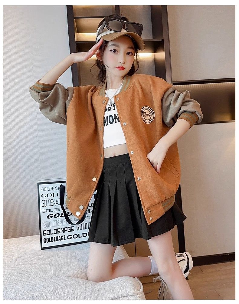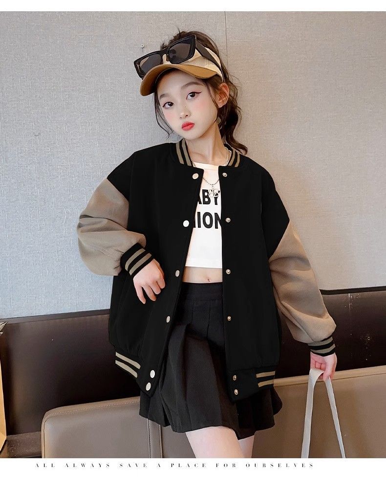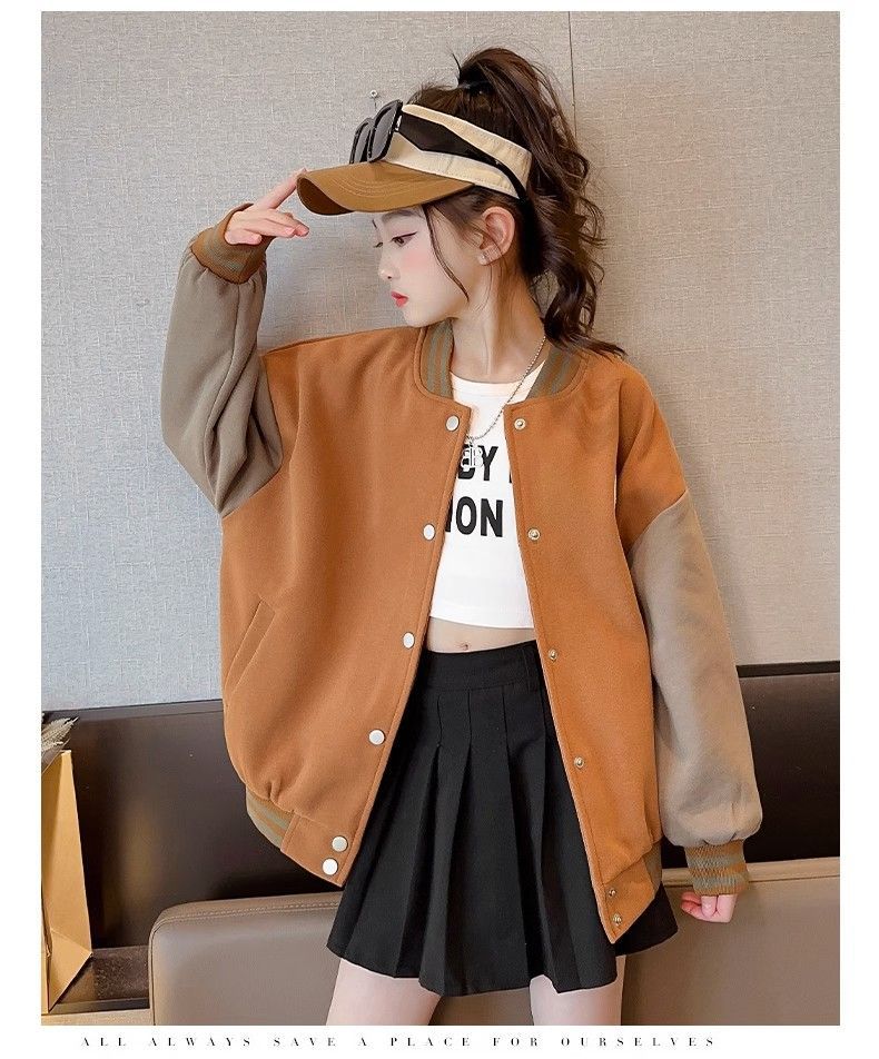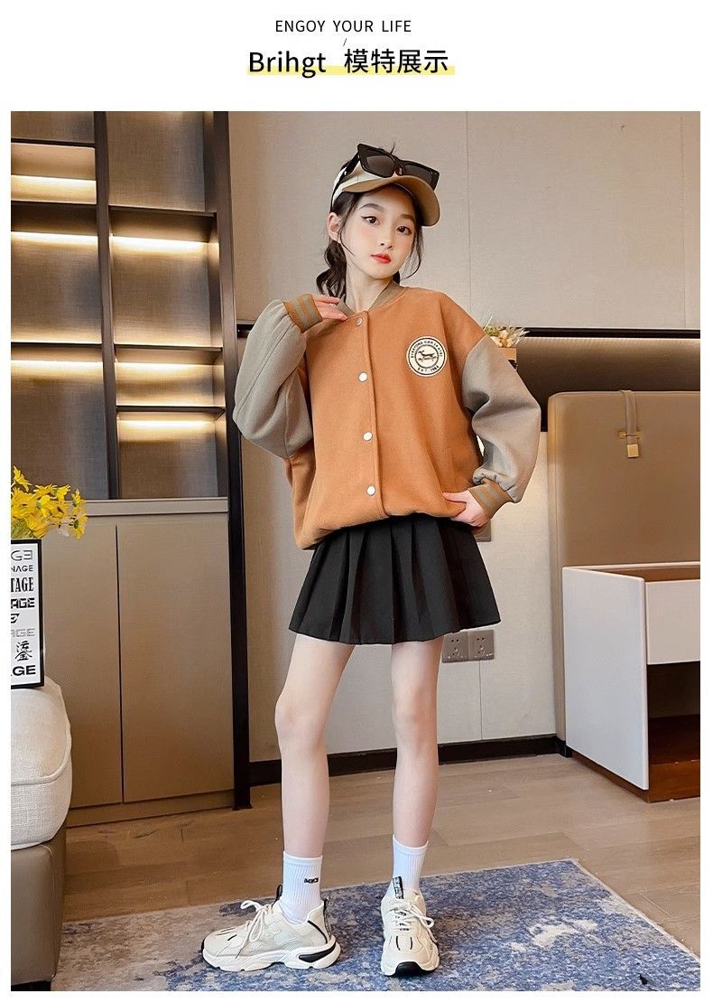 Chaqueta para niñas modelos de otoño e invierno 2024 nuevos uniformes de béisbol de invierno para niños, niñas grandes más chaqueta gruesa de terciopelo, de moda