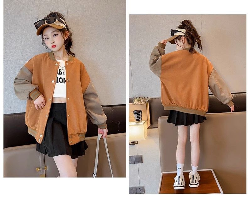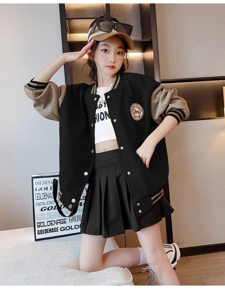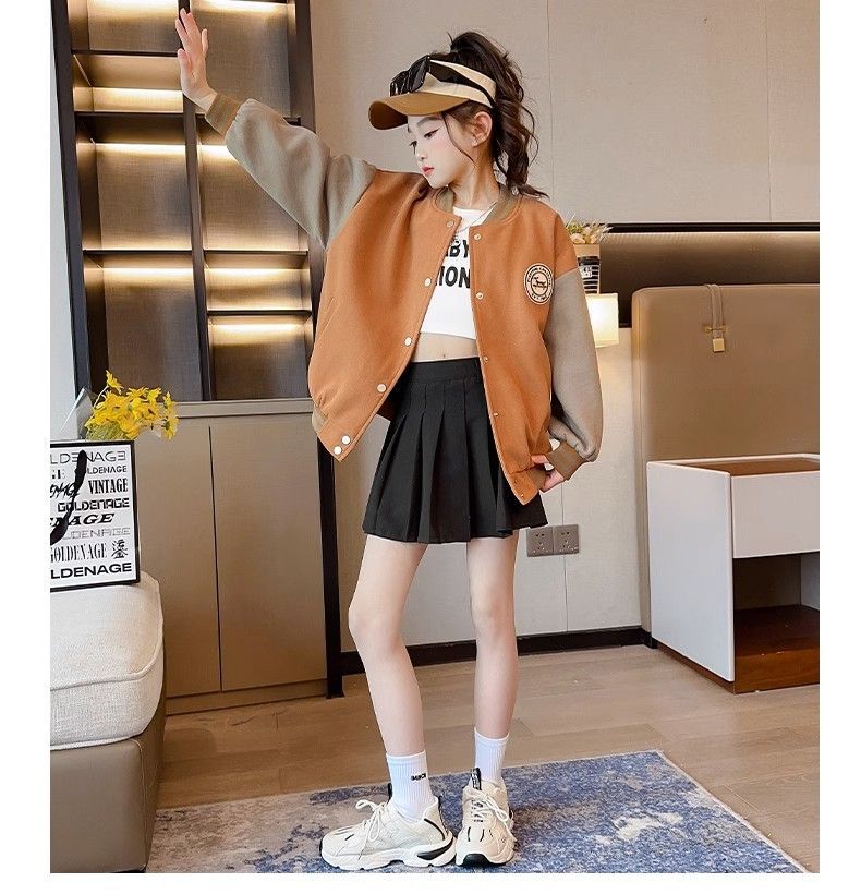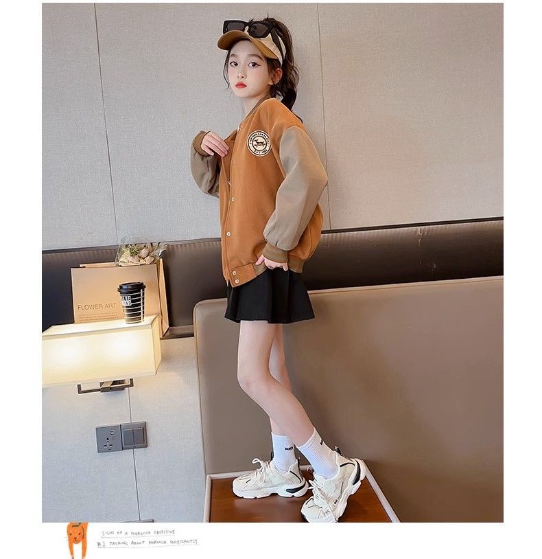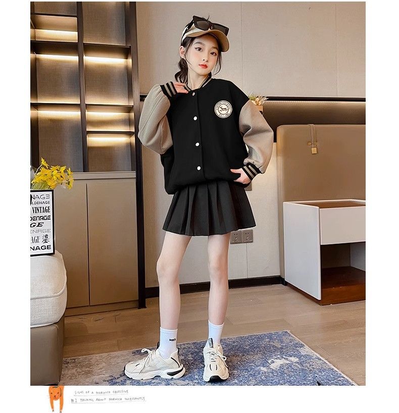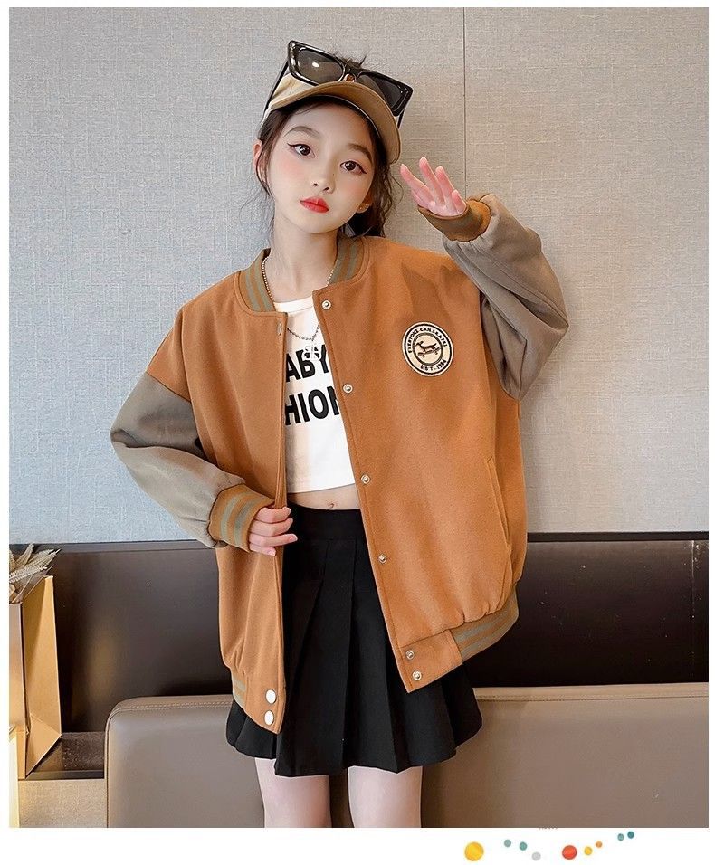 Chaqueta para niñas modelos de otoño e invierno 2024 nuevos uniformes de béisbol de invierno para niños, niñas grandes más chaqueta gruesa de terciopelo, de moda